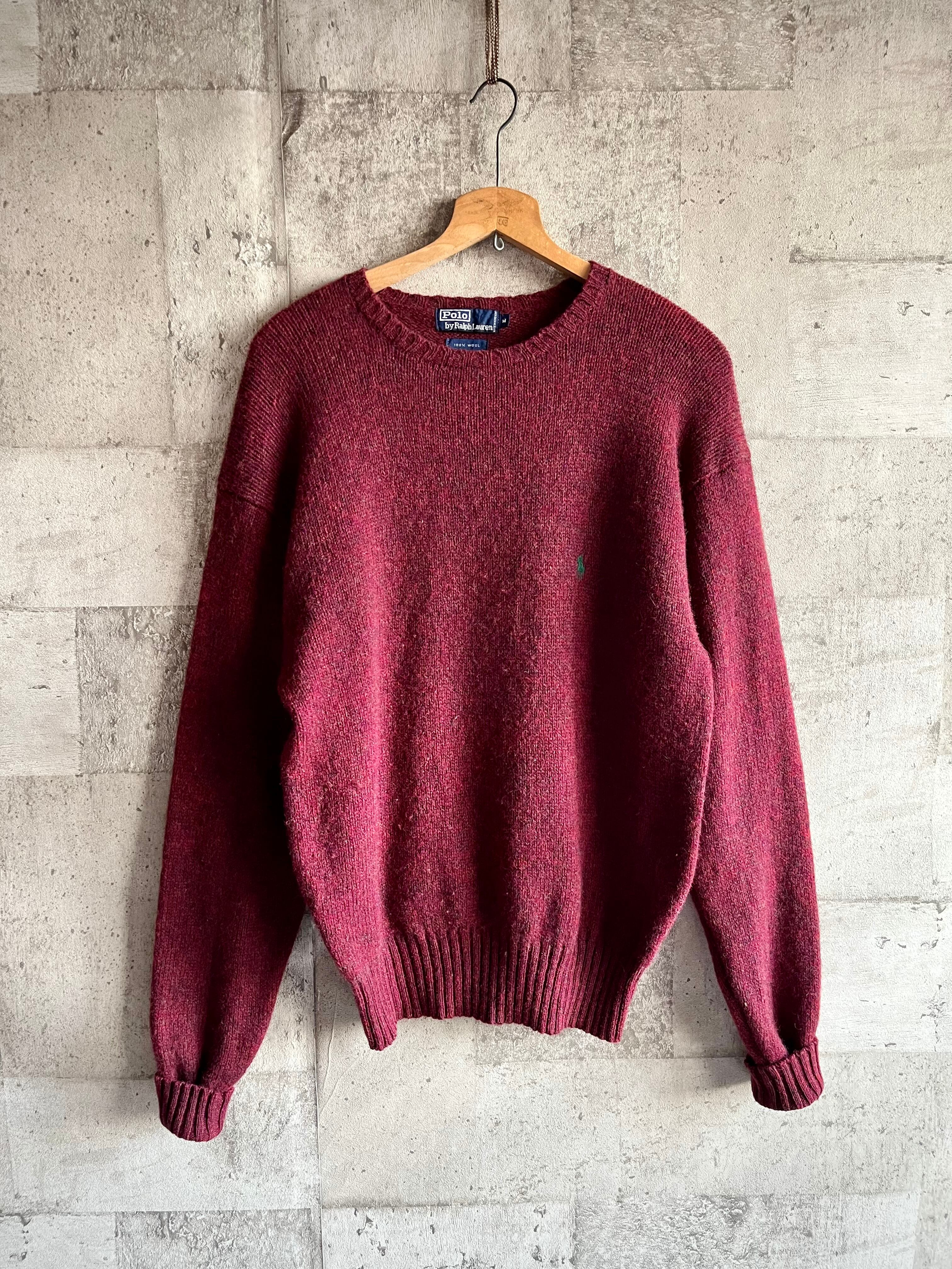 1990s〜 “RALPH LAUREN” C/N SHETLAND WOOL KNIT OLD VINTAGE 。