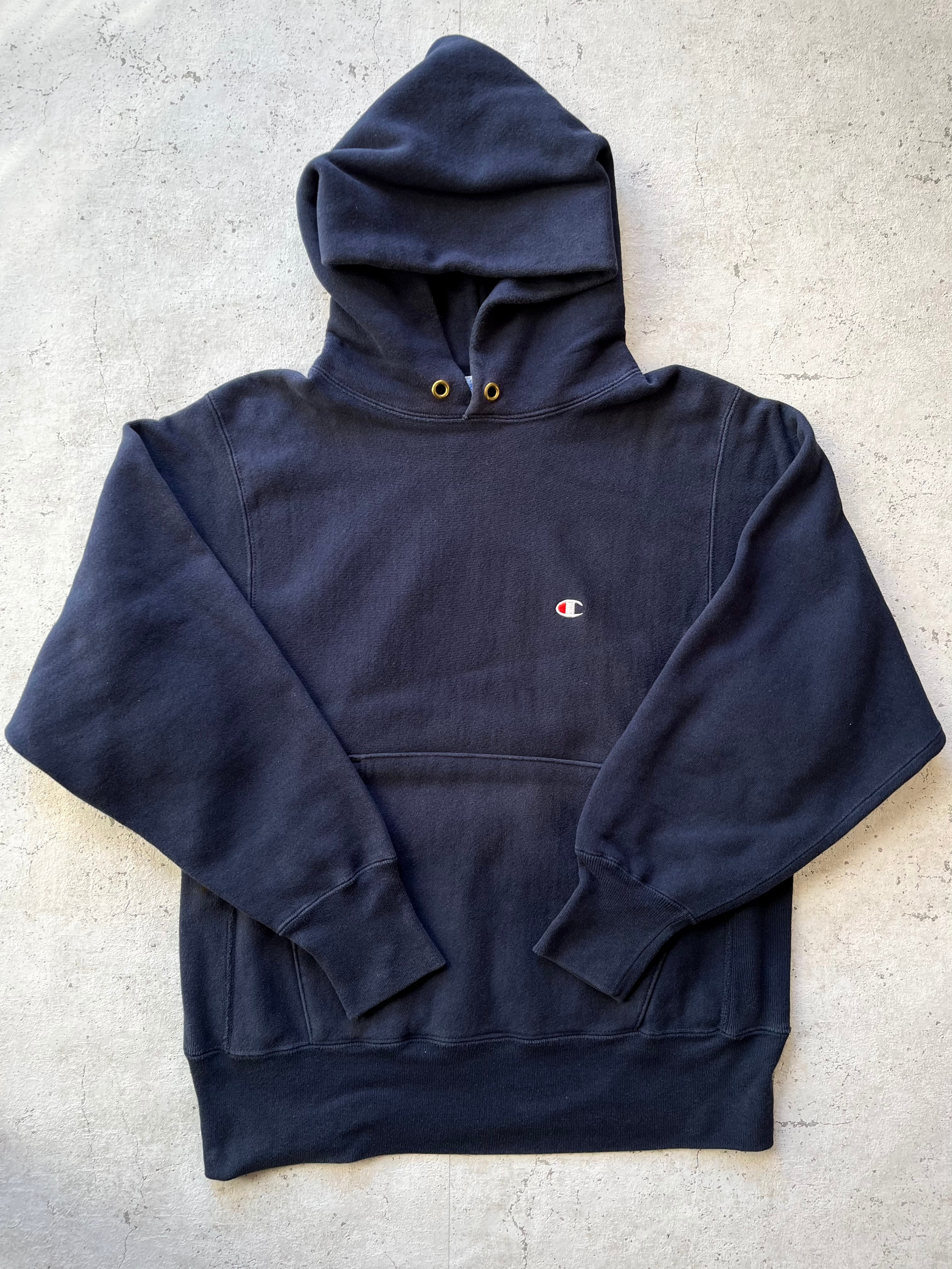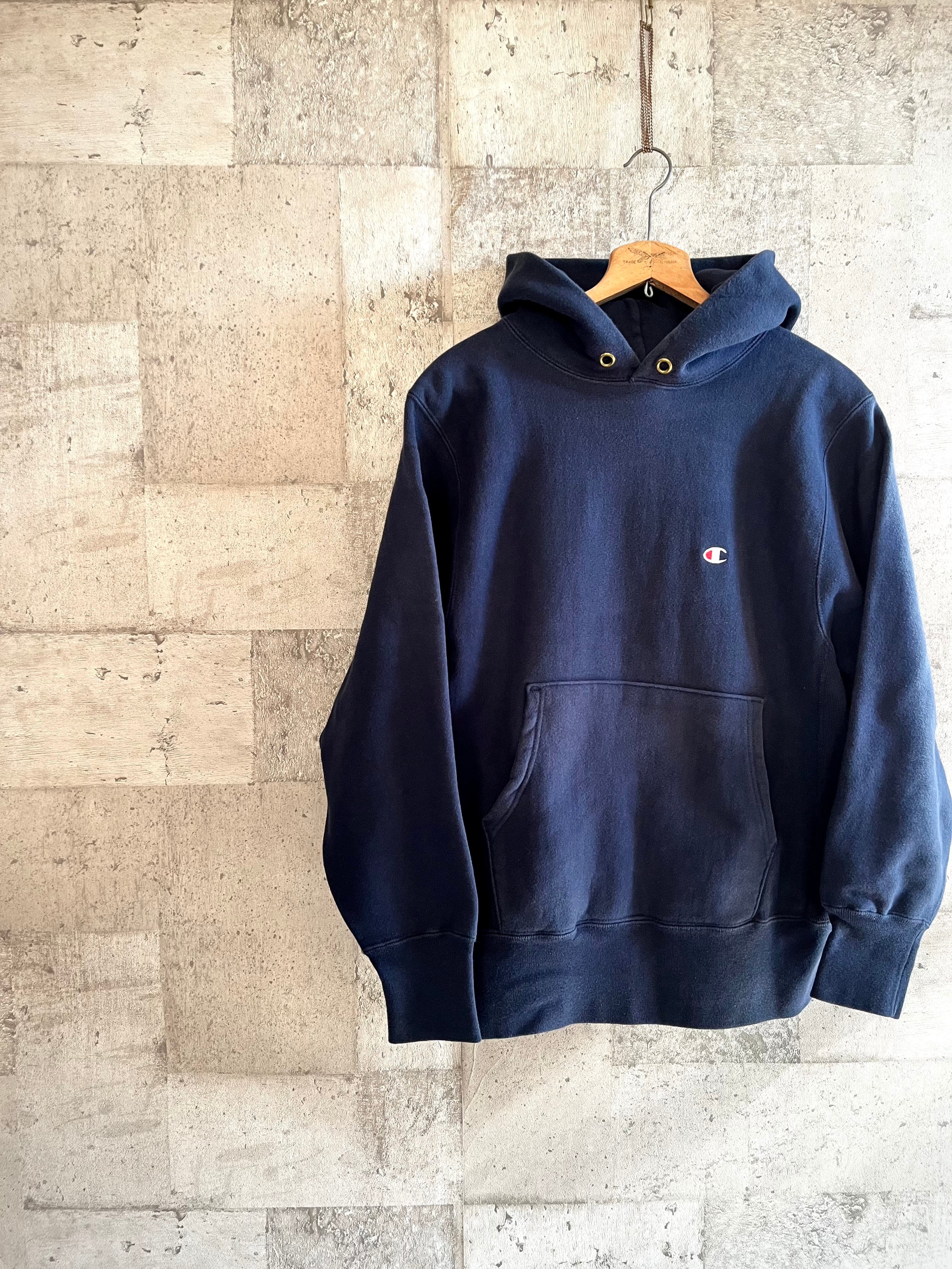 1990s〜 MADE IN USA “ CHAMPION ” REVERSE WEAVE P/O SWEAT PARKA NAVY OLD VINTAGE 。
