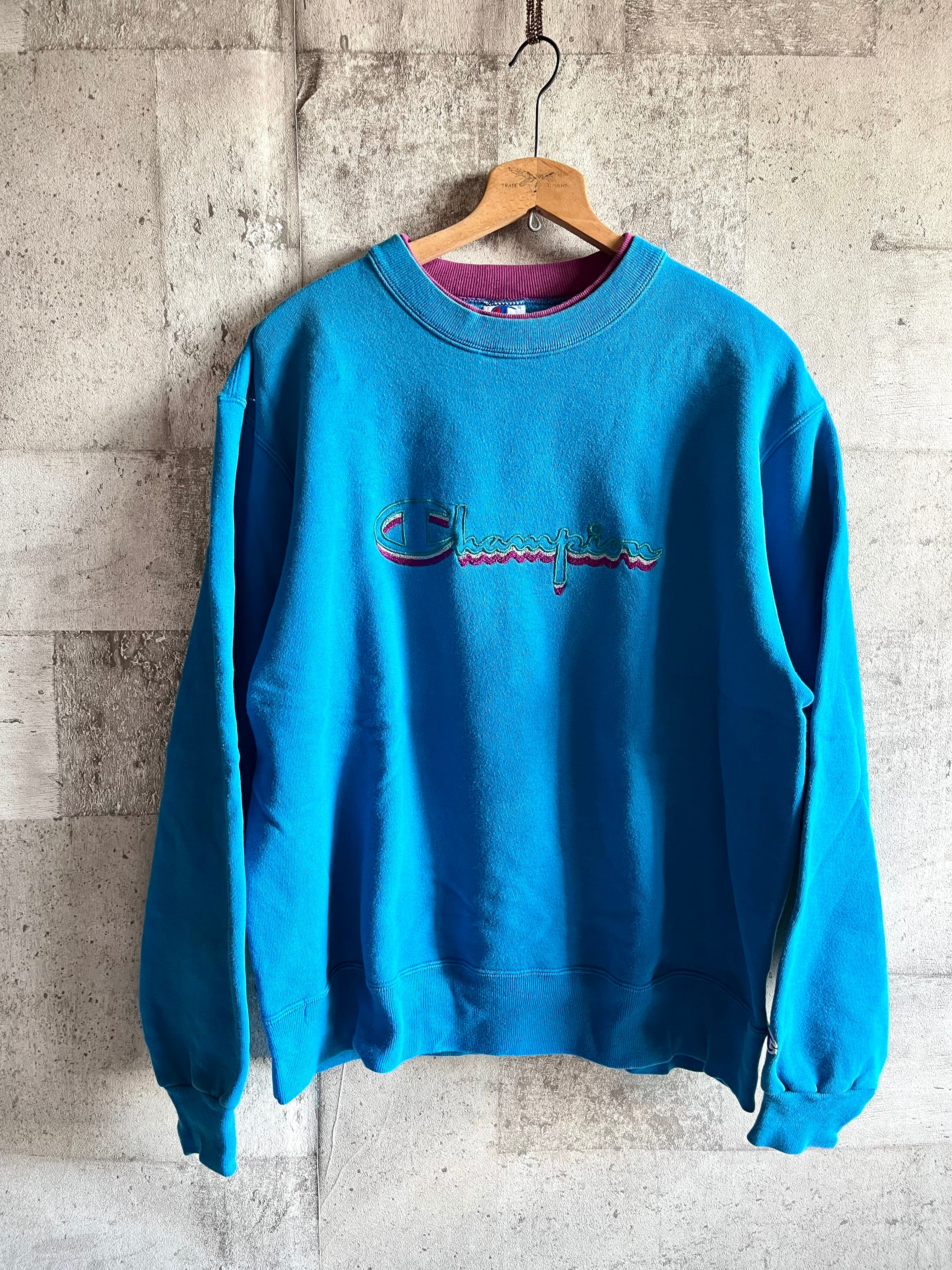 このシリーズならではの比較的スッキリとしたシルエット、目を惹くターコイズブルーをベースにレイヤードされたネックリブや立体感のあるビッグロゴにはパープルを組み合わせ、いかにも90年代らしいカラーリングとなったCHAMPIONならではの1枚です。