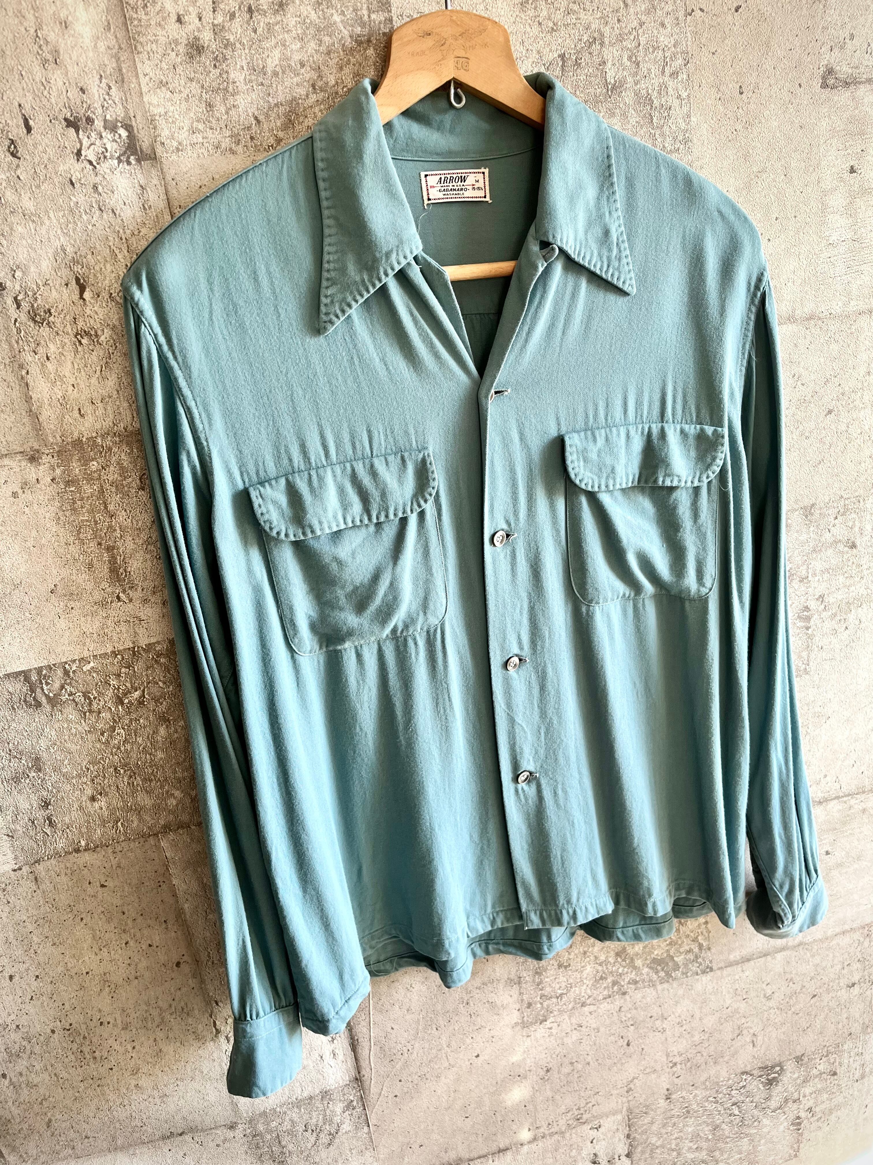 1950s〜 MADE IN USA “ ARROW ” GABANARO RAYON BOX SHIRT OLD VINTAGE 。