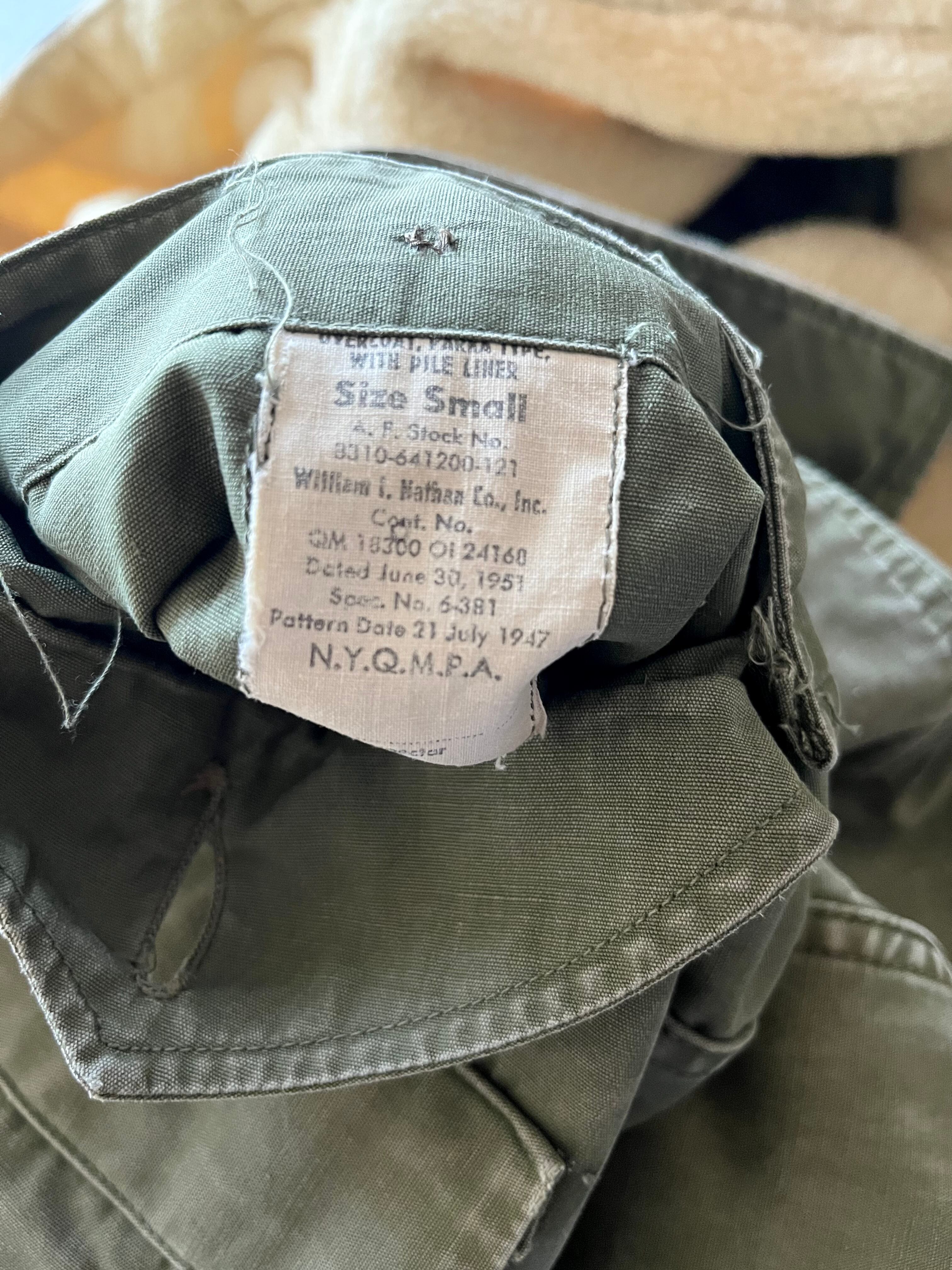 40s-50s M-47 US.ARMY / USAF OVER COAT PARKA TYPE / William I.Nathan MILITARY VINTAGE 米軍実物 M47 オーバーコート フルセット オールド ミリタリー ビンテージ