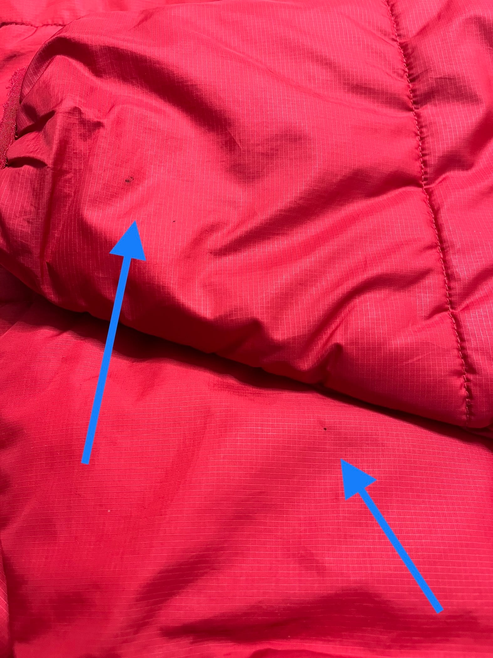 古着.USEDならではの使用感,細かいスレ,フード欠損,袖先に薄汚れ,ピンホール,パイピング部分に毛羽等と少し使用感は感じられますが、その他,着用に支障のある目立つような汚れや大きなダメージ等は見受けられません。