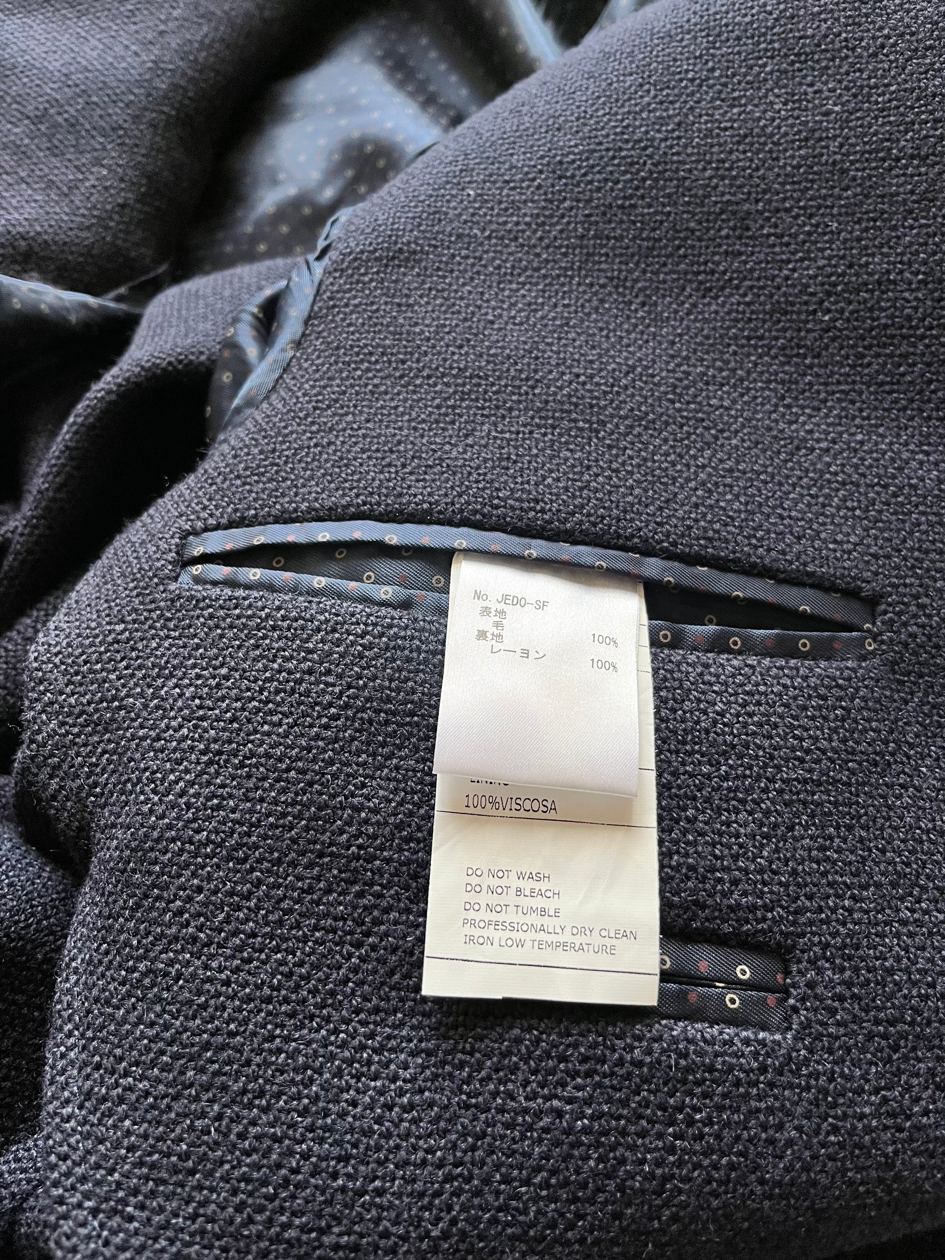 やはり大手メゾン専属のファクトリーとされているだけあって非常に上質な生地を用いて仕立てられており、柔らかくふんわりとした目の粗いウール生地に定番ネイビーカラーを纏いクラシコならではの美しいシルエットでシンプルながらも品格ある仕上がりとなっております。