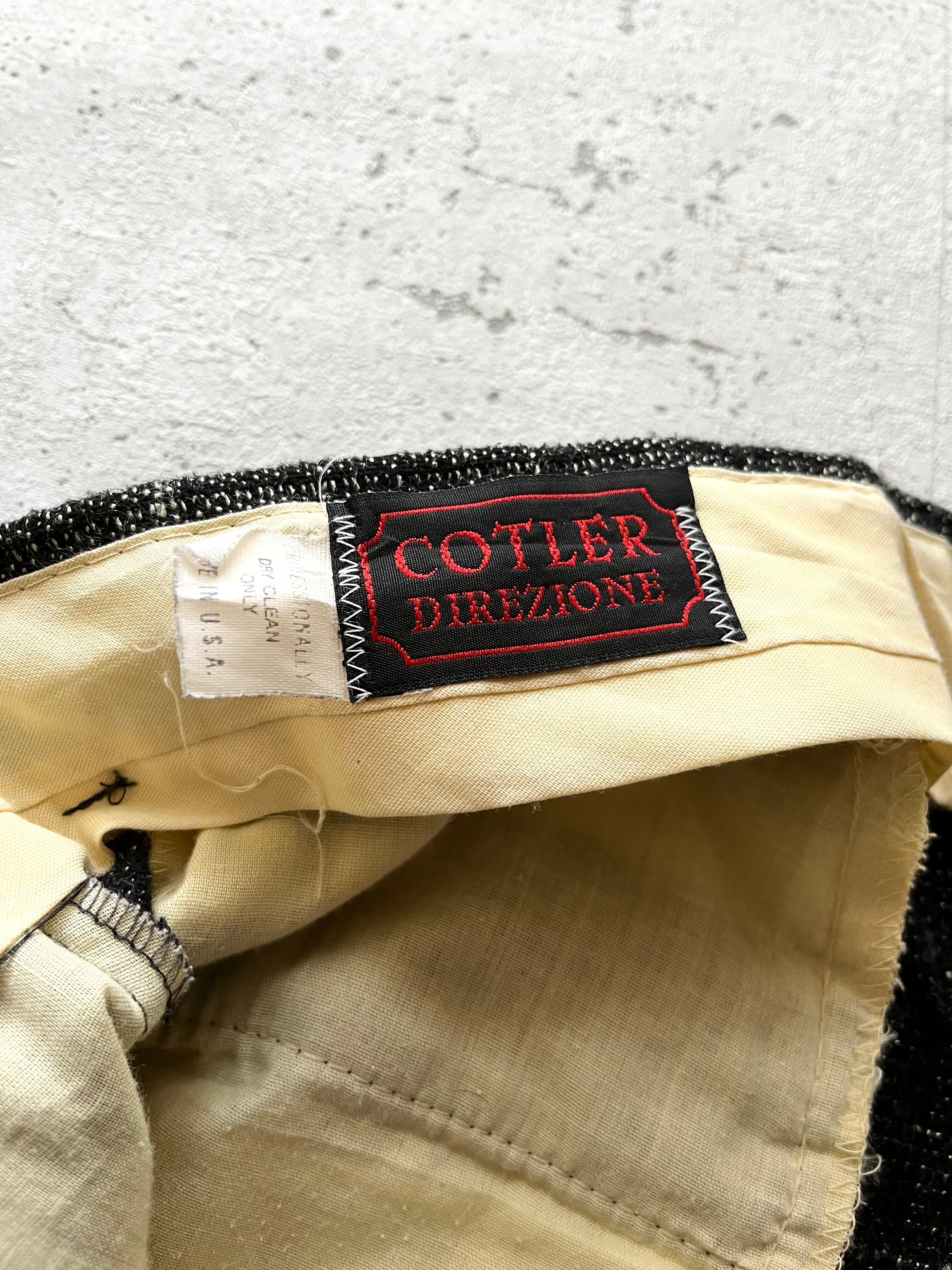 USA製TROUSERS-VINTAGEでは比較的見かける事のあるレトロなブランド《 COTLER 》、一風変わった風変わりな生地を用いて仕立てられている事が多く独特な空気感を纏ったクラシックな佇まい。