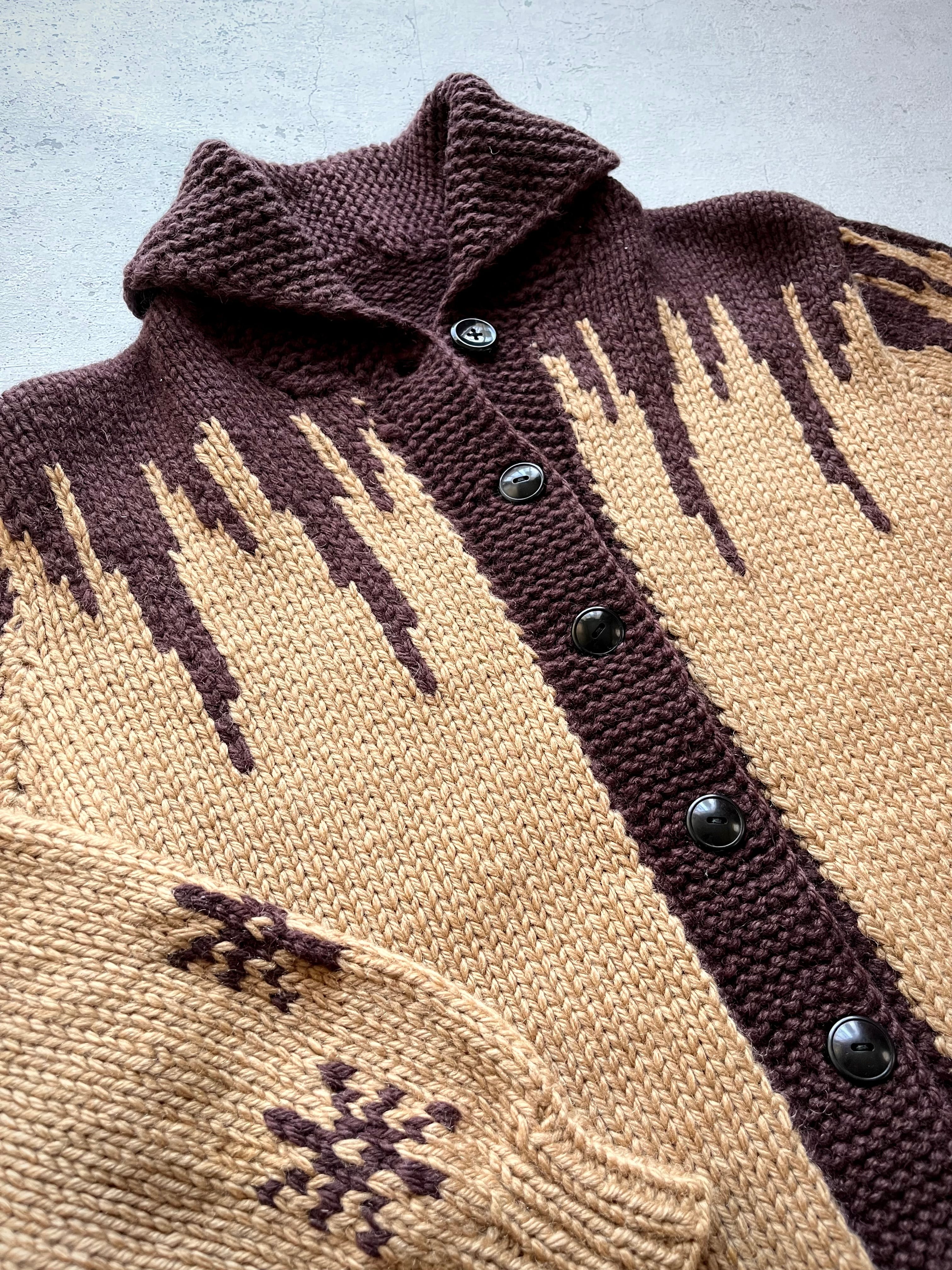 40s UNKNOWN TWO-TONE SHAWL COLLAR CARDIGAN WOOL OLD VINTAGE ツートン ショールカラーカーディガン ウール オールド ビンテージ