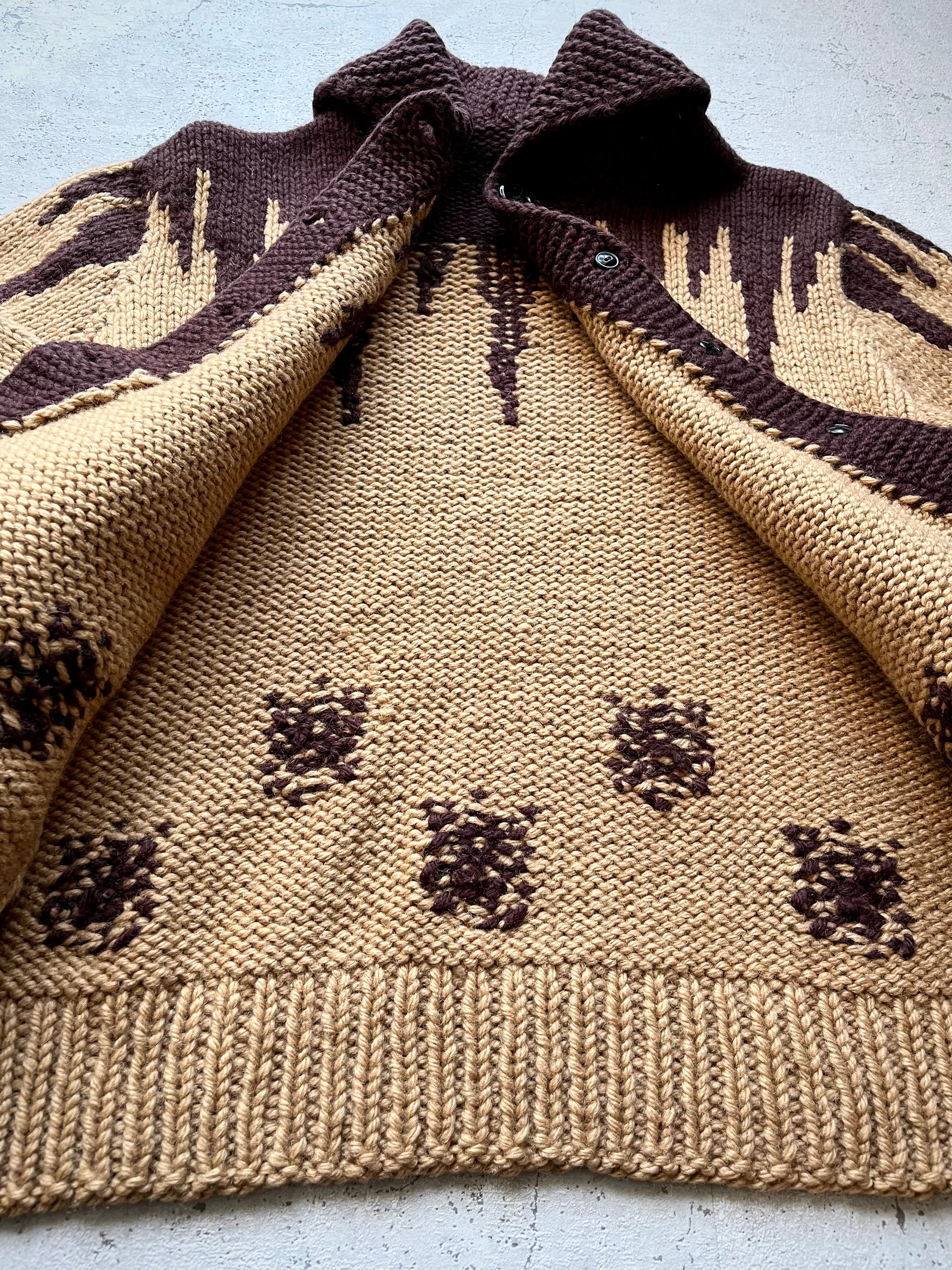 ブランドタグやファクトリーネーム等は確認できませんが恐らく40年代頃と思われる非常に珍しいグッドデザインなツートンパターン、生地は目の詰まったしっかりとした質感のローゲージタイプでずっしりと重厚感のある40sならではの佇まいとなっております。