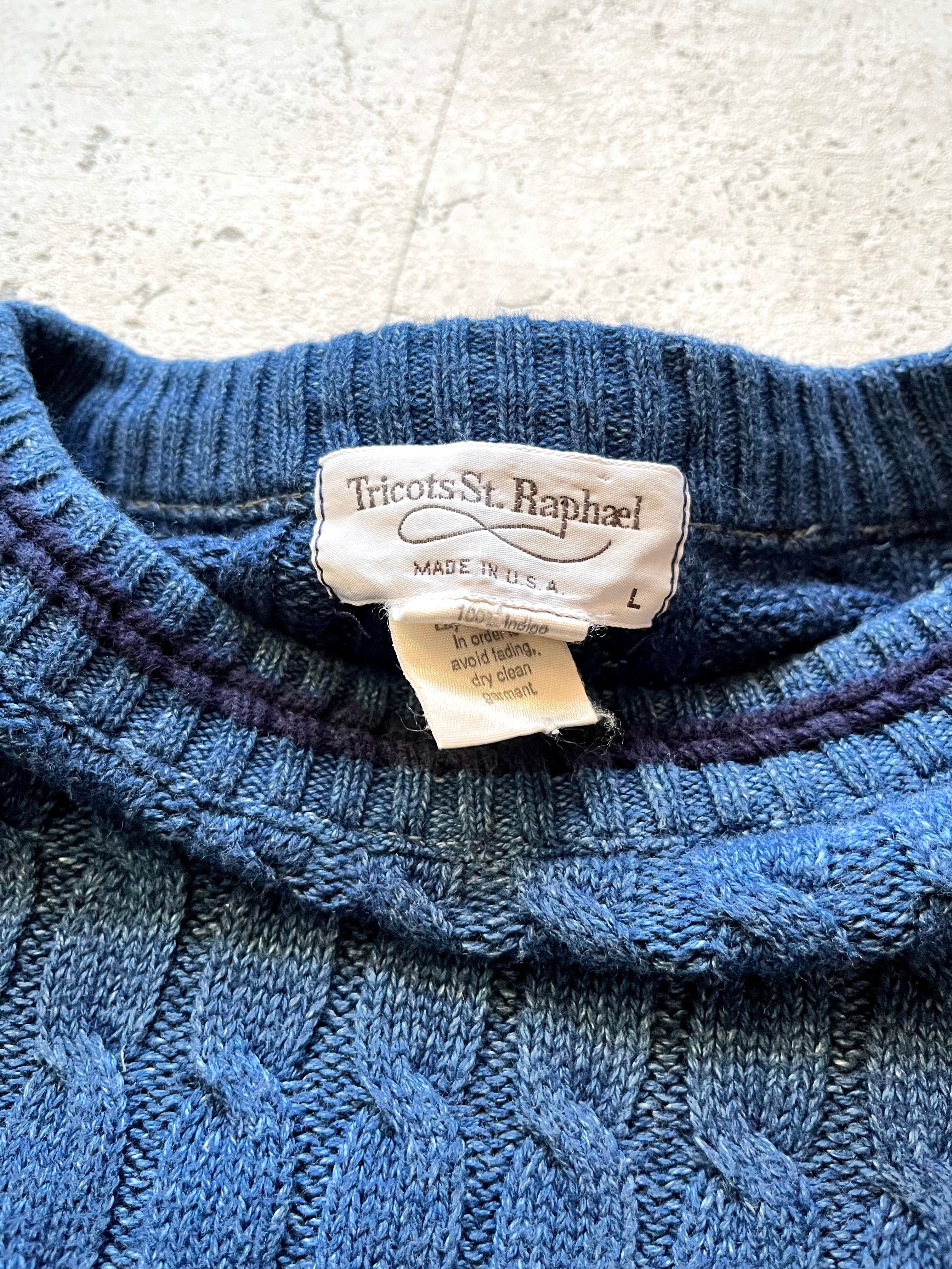 80s-90s USA製 Tricots St Raphael INDIGO CABLE KNIT OLD VINTAGE アメリカ製 トリコットセントラファエル インディゴデ ケーブルニット オールド ビンテージ