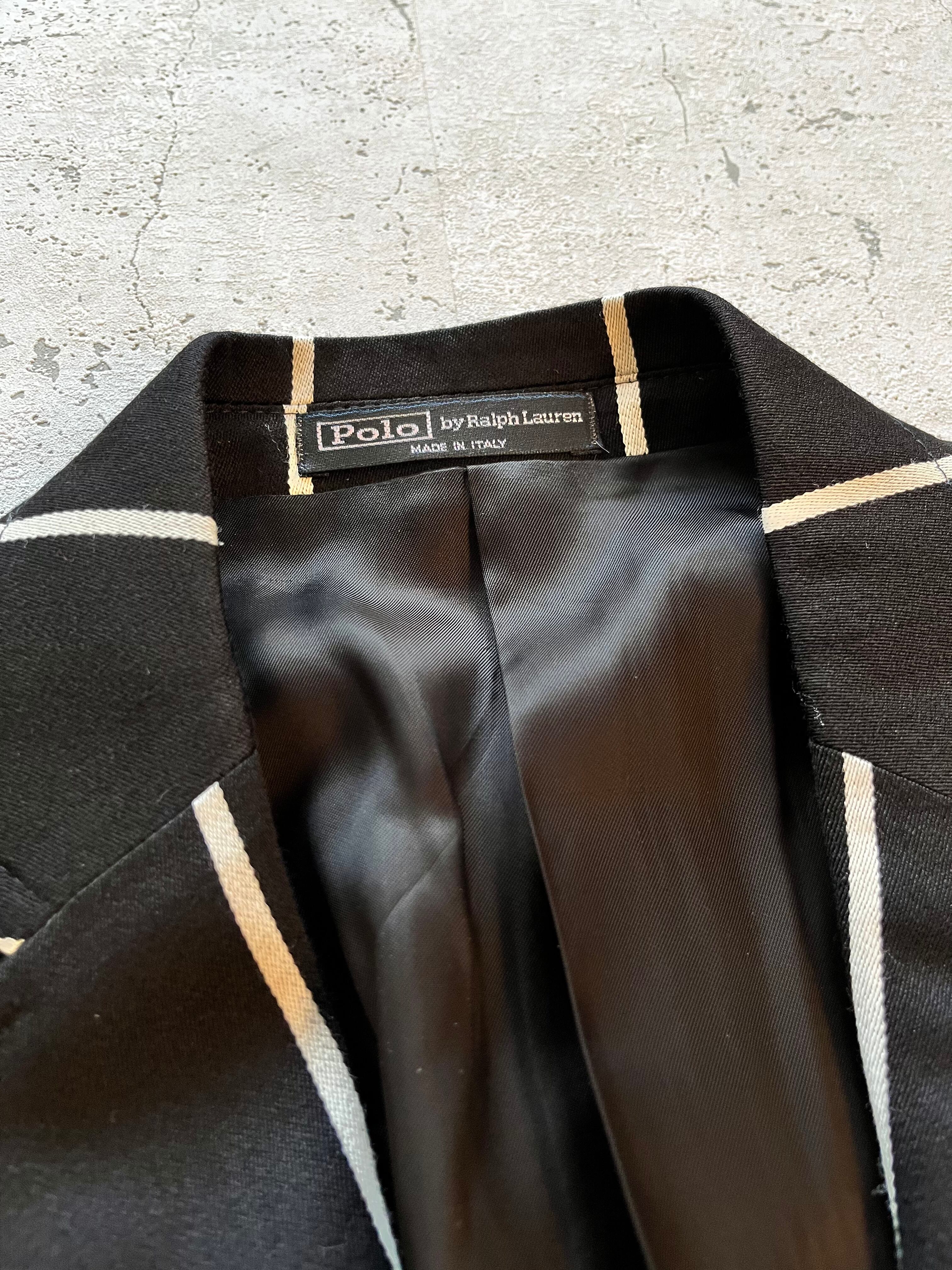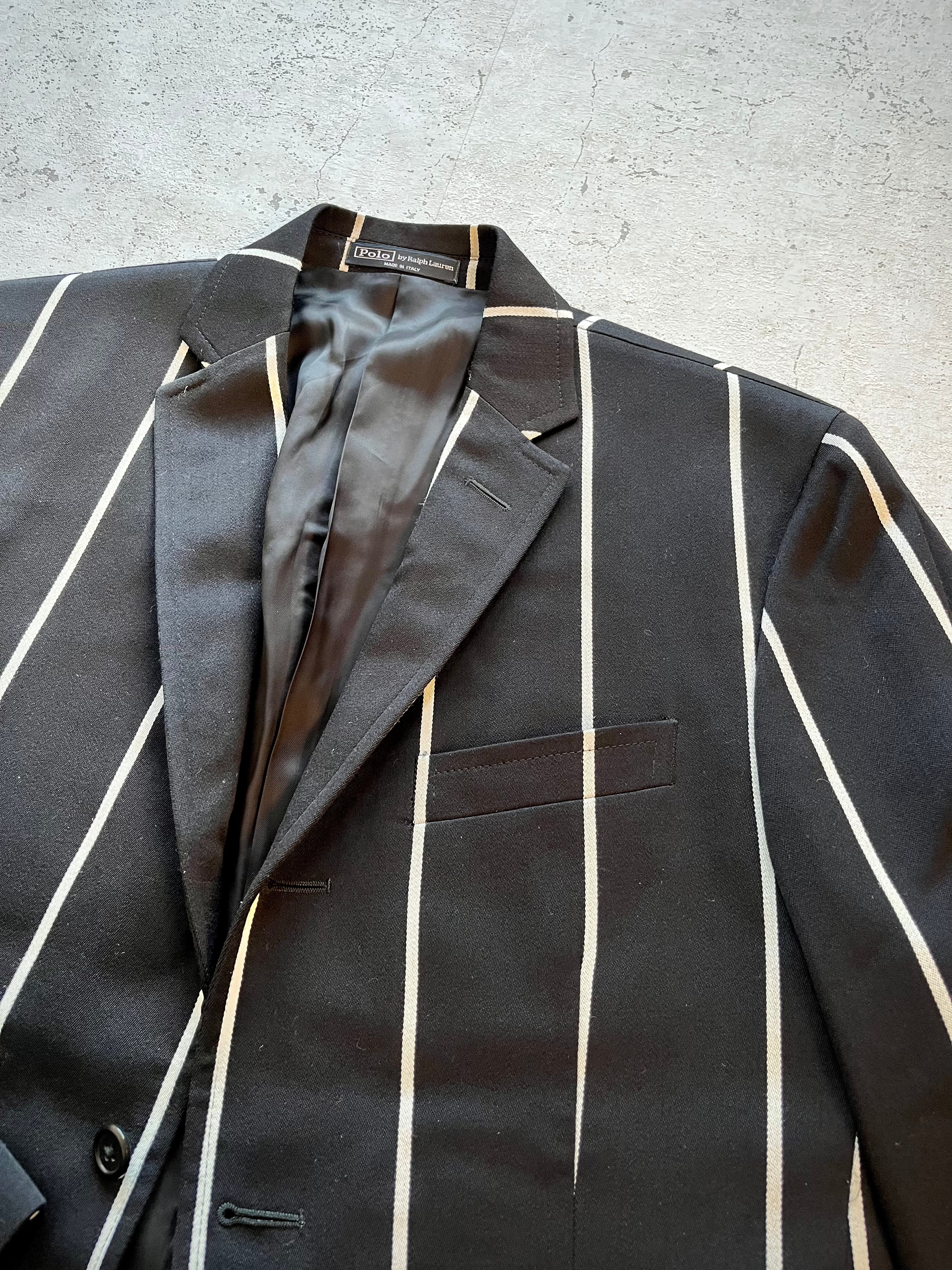 MADE IN ITALY RALPH LAUREN WIDE-STRIPE 3B TAILORED JACKET BLACK ORIGINAL イタリア製 ラルフローレン ワイドストライプ テーラードジャケット オールド オリジナル