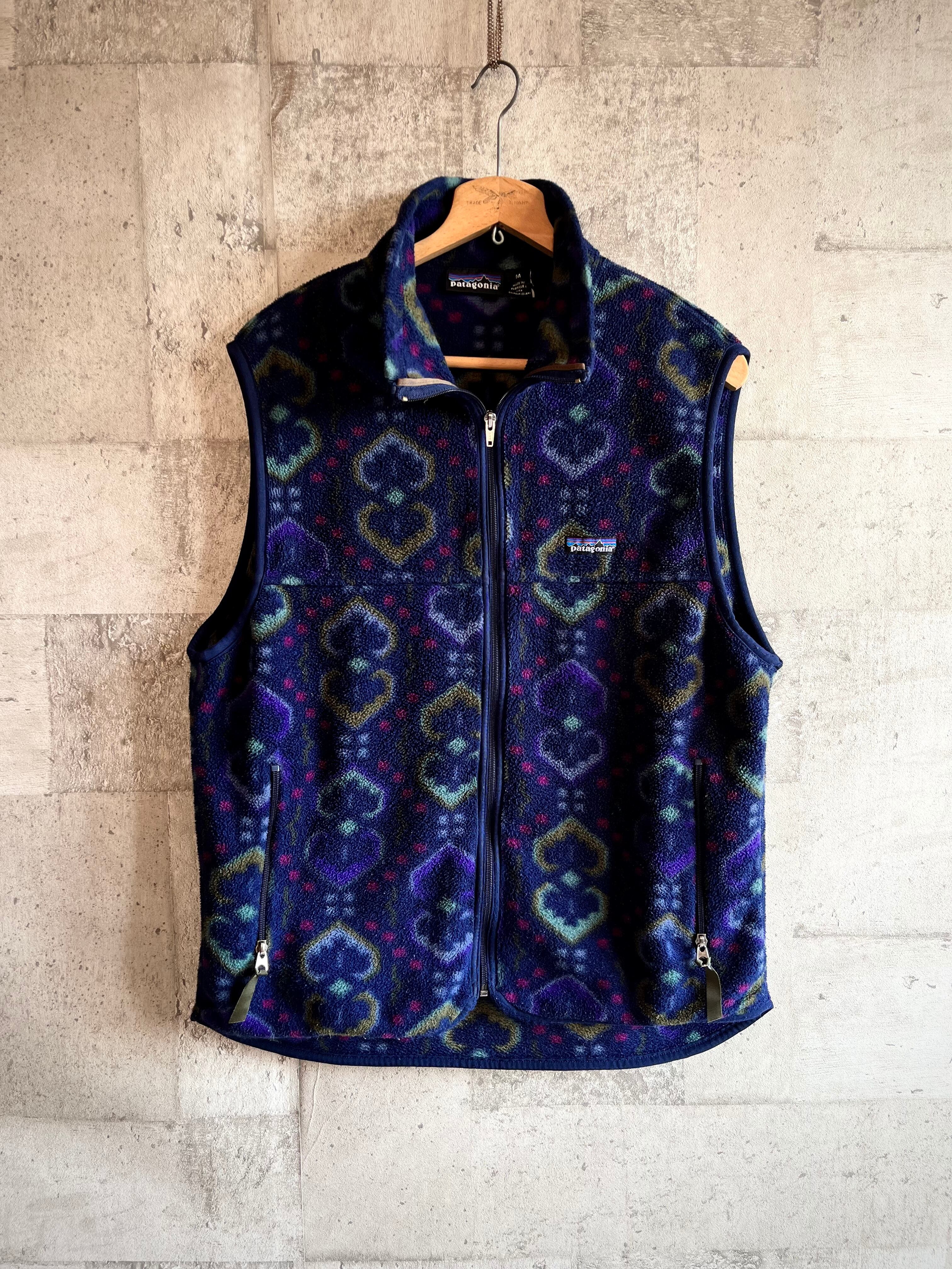 90s MADE IN USA PATAGONIA TAPESTRY ZIP-UP FLEECE VEST OLD VINTAGE アメリカ製 パタゴニア タペストリー 総柄 フリースベスト オールド ビンテージ