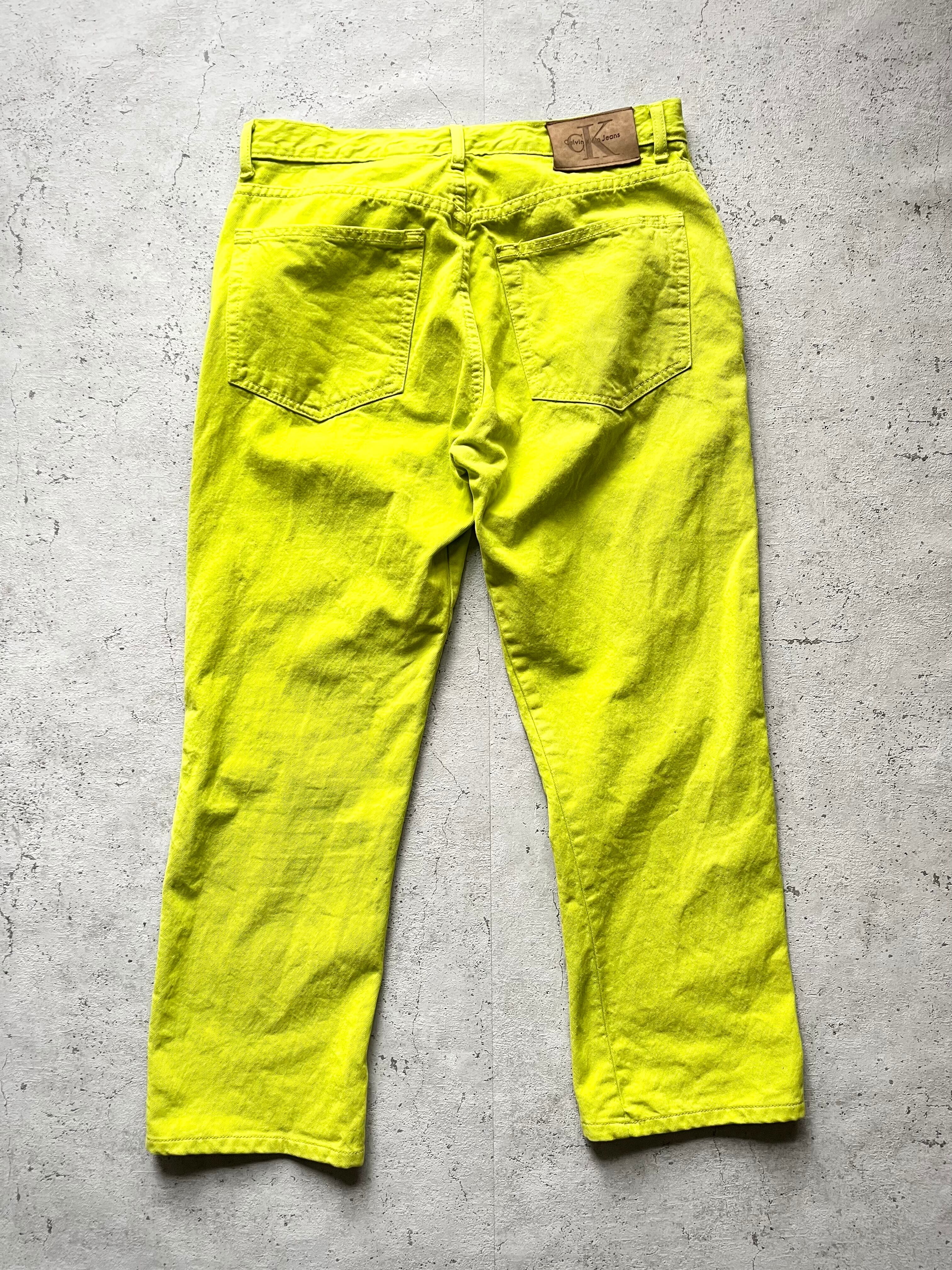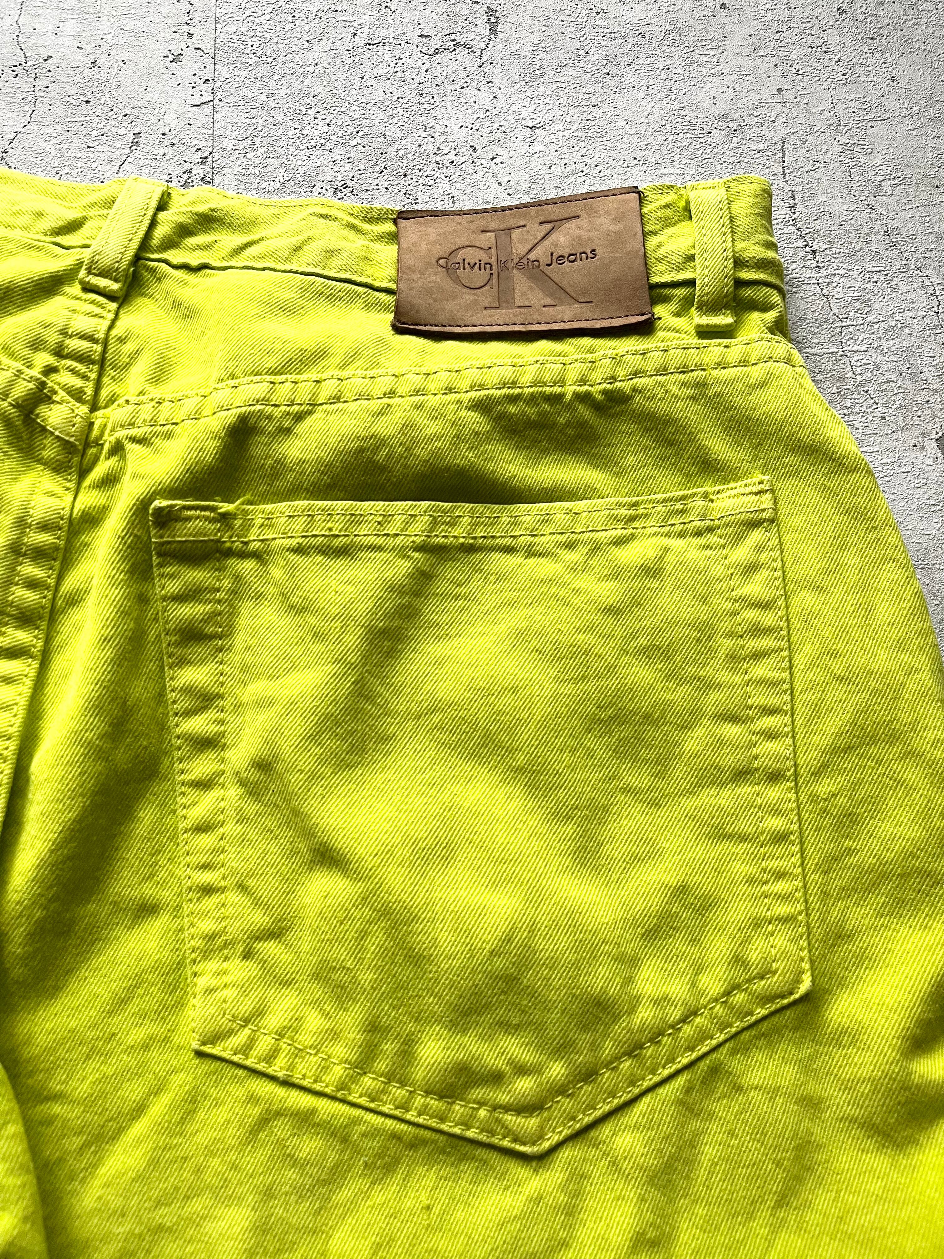 90s〜 MADE IN USA CALVIN KLEIN JEANS 5PKT BOOTLEG JEAN DENIM OLD VINTAGE アメリカ製 カルバンクライン 蛍光イエロー ブーツカットジーンズ オールド ビンテージ
