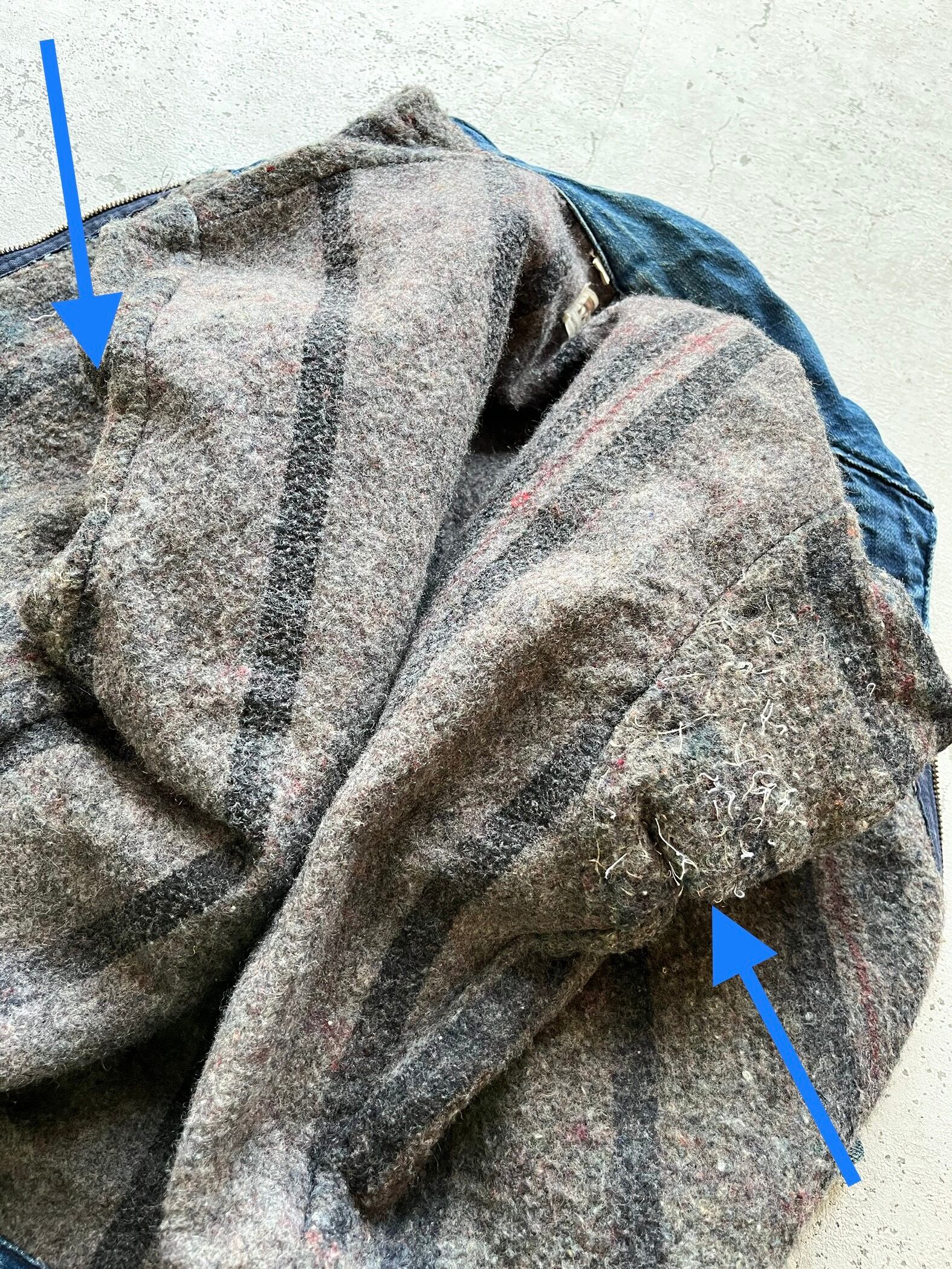 USED.ビンテージならではの多少使用感,細かいスレ,色落ち,アームホール付近のライニングに生地が薄くなっている所が見受けられますが、年代を考慮しても比較的綺麗なグッドコンディション状態だと思います。