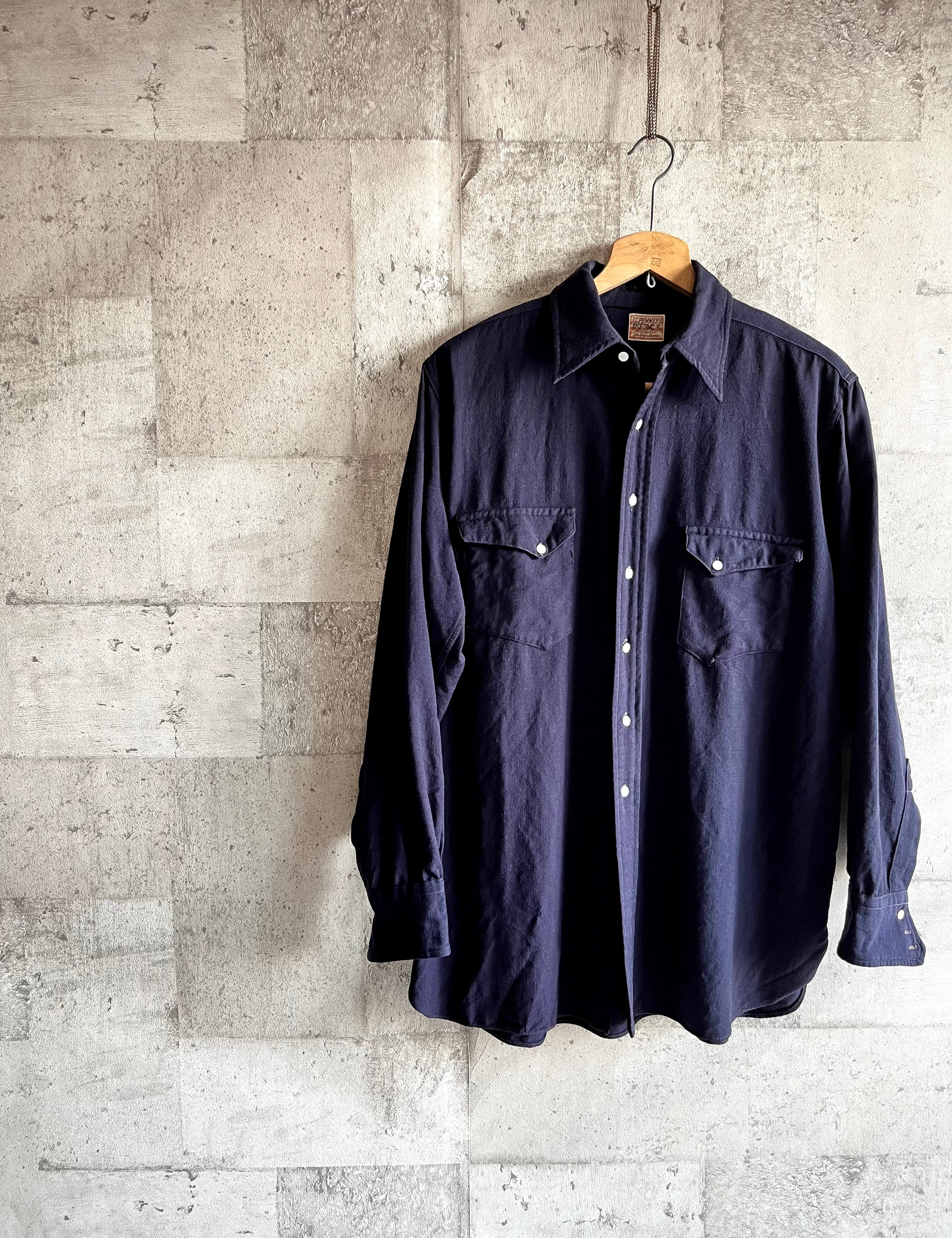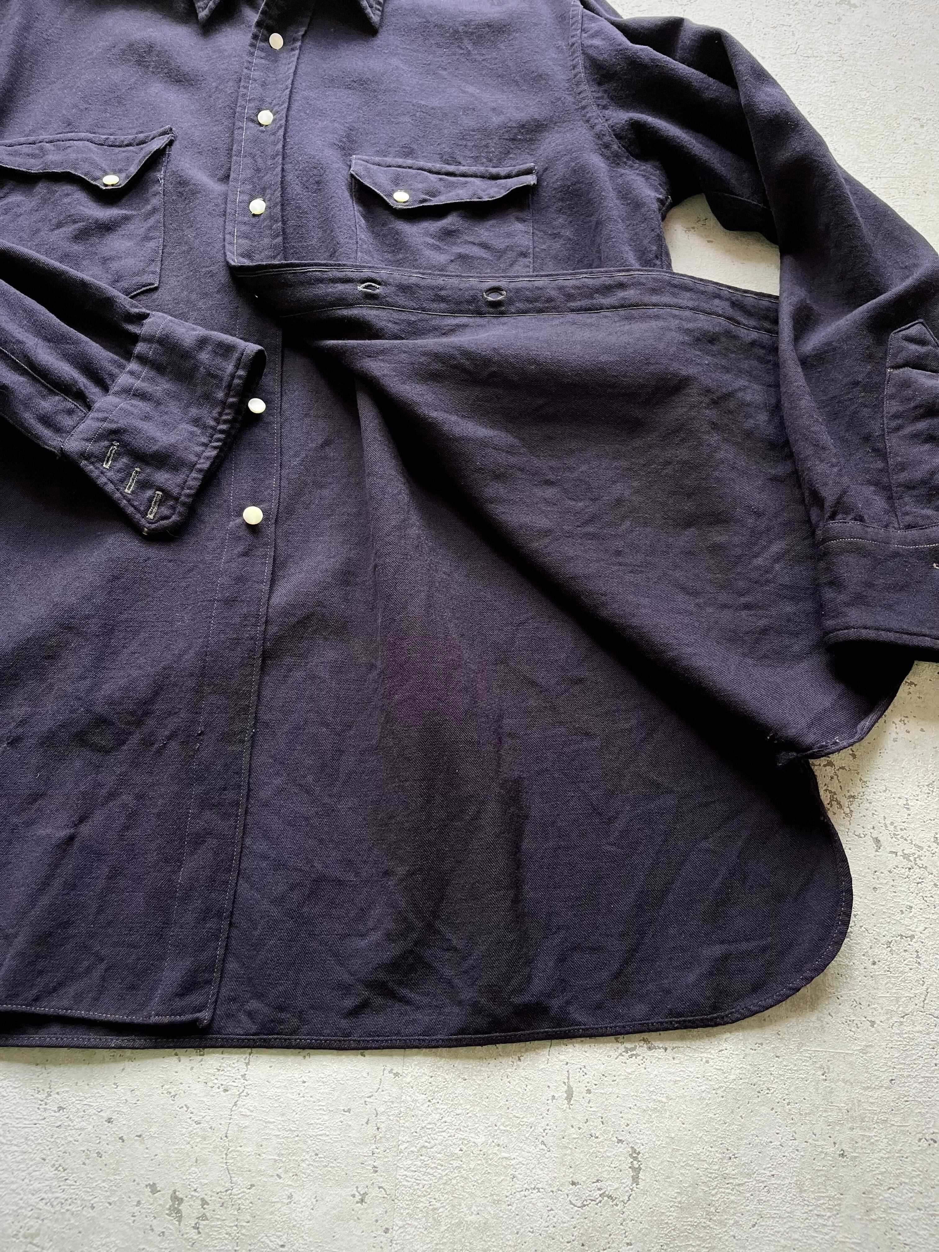 30s-40s “JC.PENNEY” L/S GABARDINE SHIRT NAVY SOLID OLD VINTAGE 。