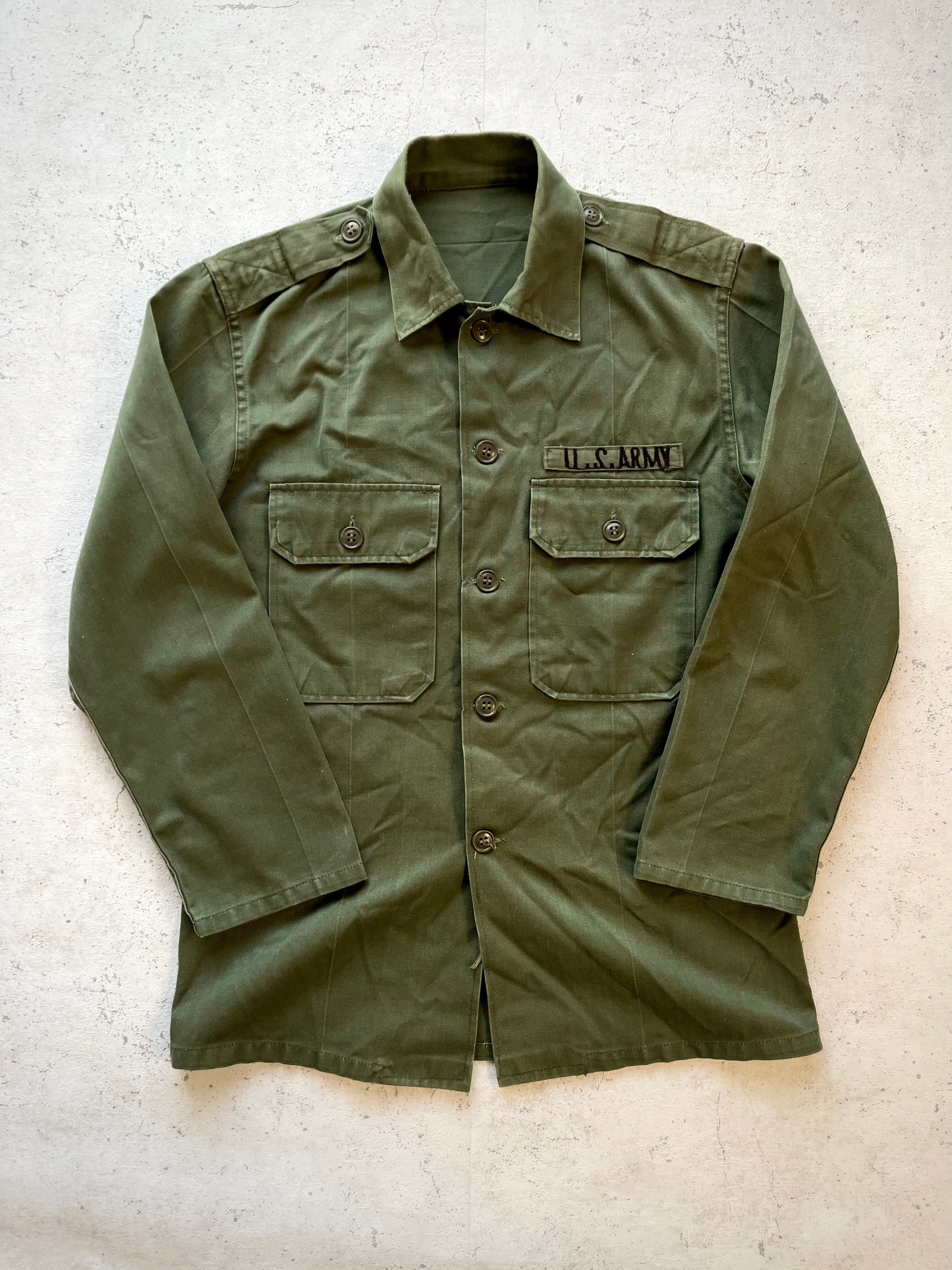 ボタンの質感や耳付きファブリック等から恐らく70s〜ベトナム期辺りと思われる少しだけ古いUTILITY 、コアなミリタリーに興味がない方でも単純にファッションとしても取り入れやすいアイテムだと思いますので、お好きな方は是非この機会にいかがでしょうか。