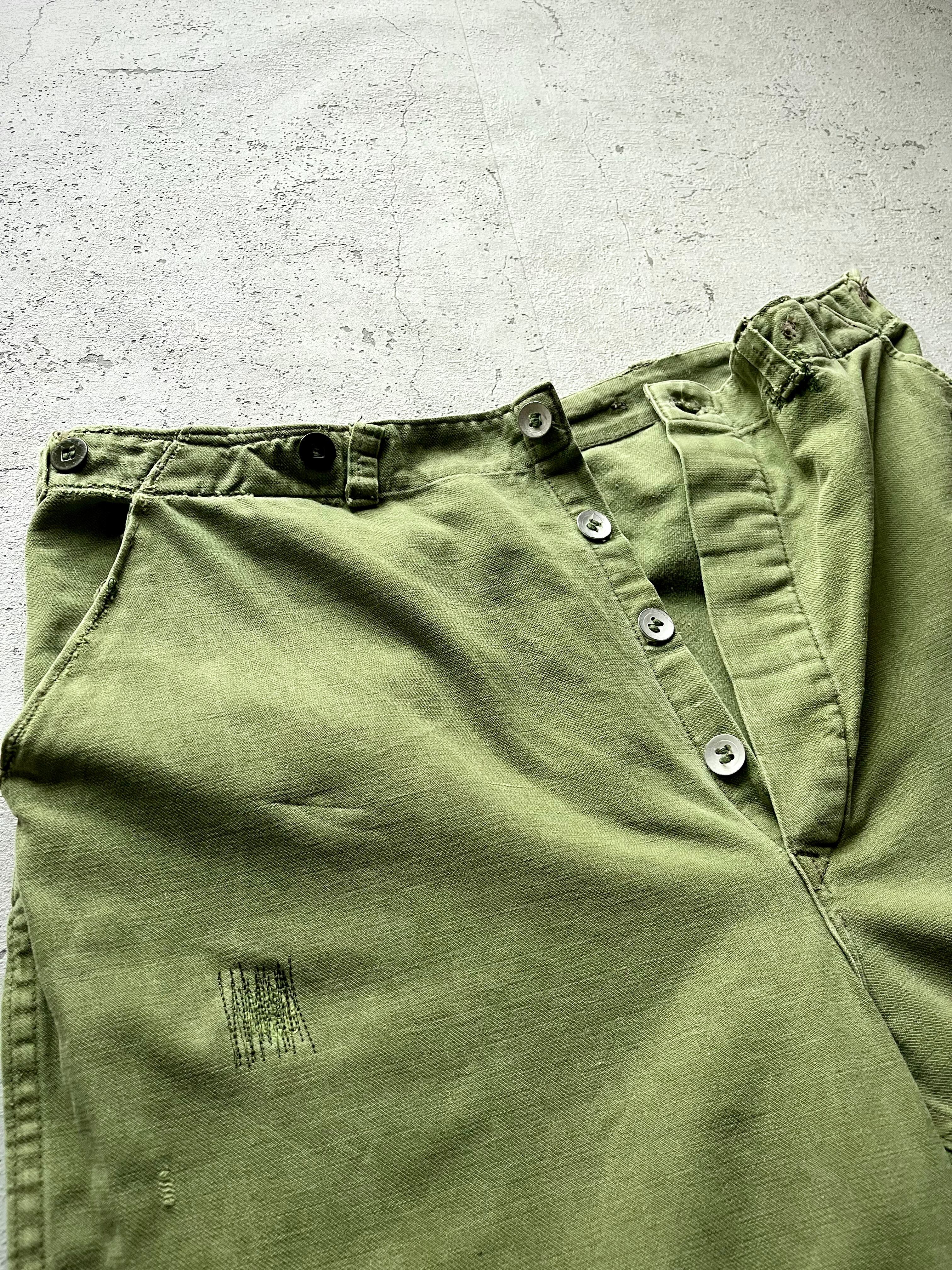 ズドンとした太めなストレートシルエットでいかにも古いミリタリー&ワークスタイルといった武骨な印象の佇まい、古いVINTAGEですのでそれ相応のダメージ等はありますが雰囲気&オーラのあるパンツだと思いますので、お好きな方は是非この機会にいかがでしょうか。
