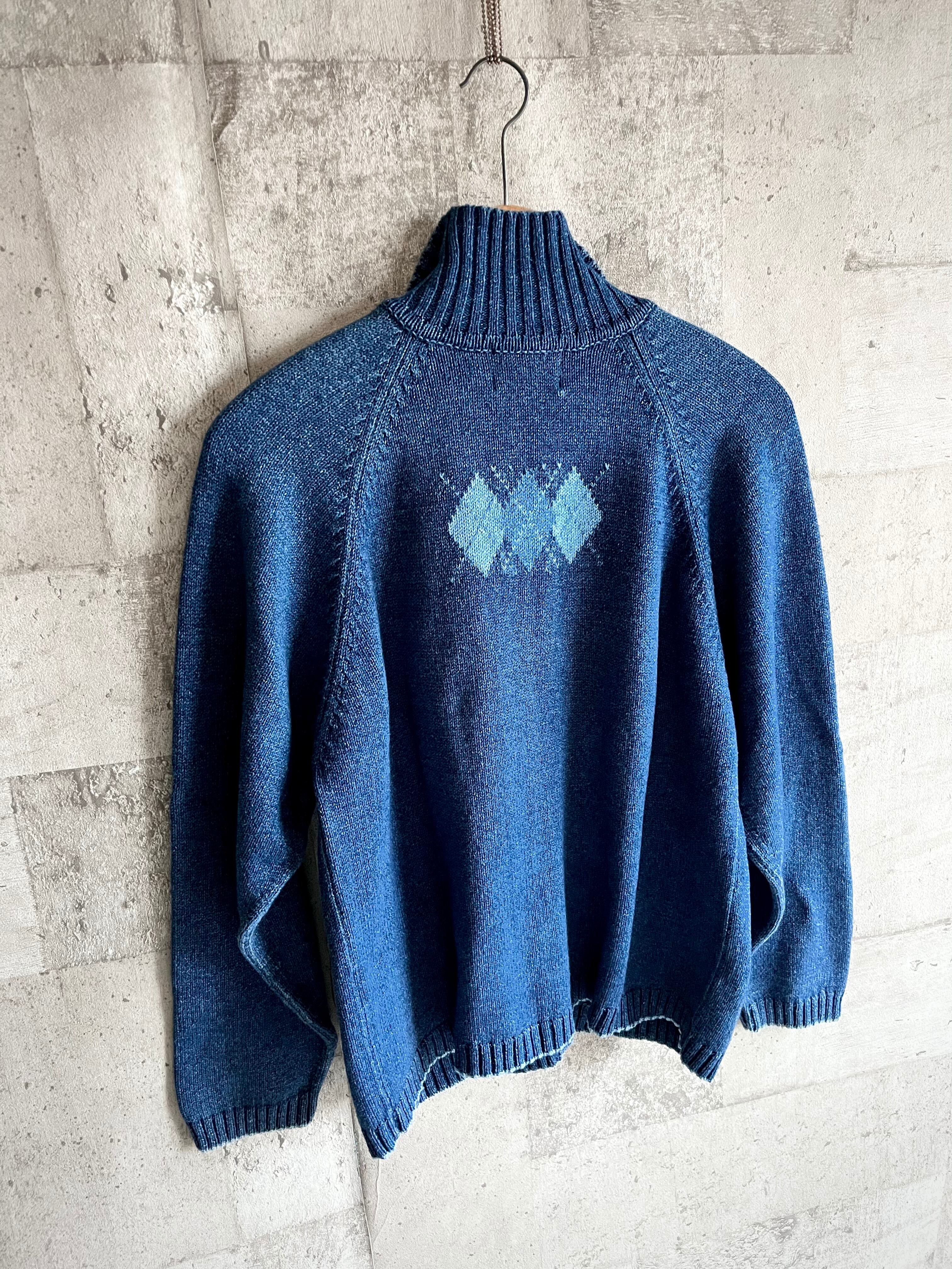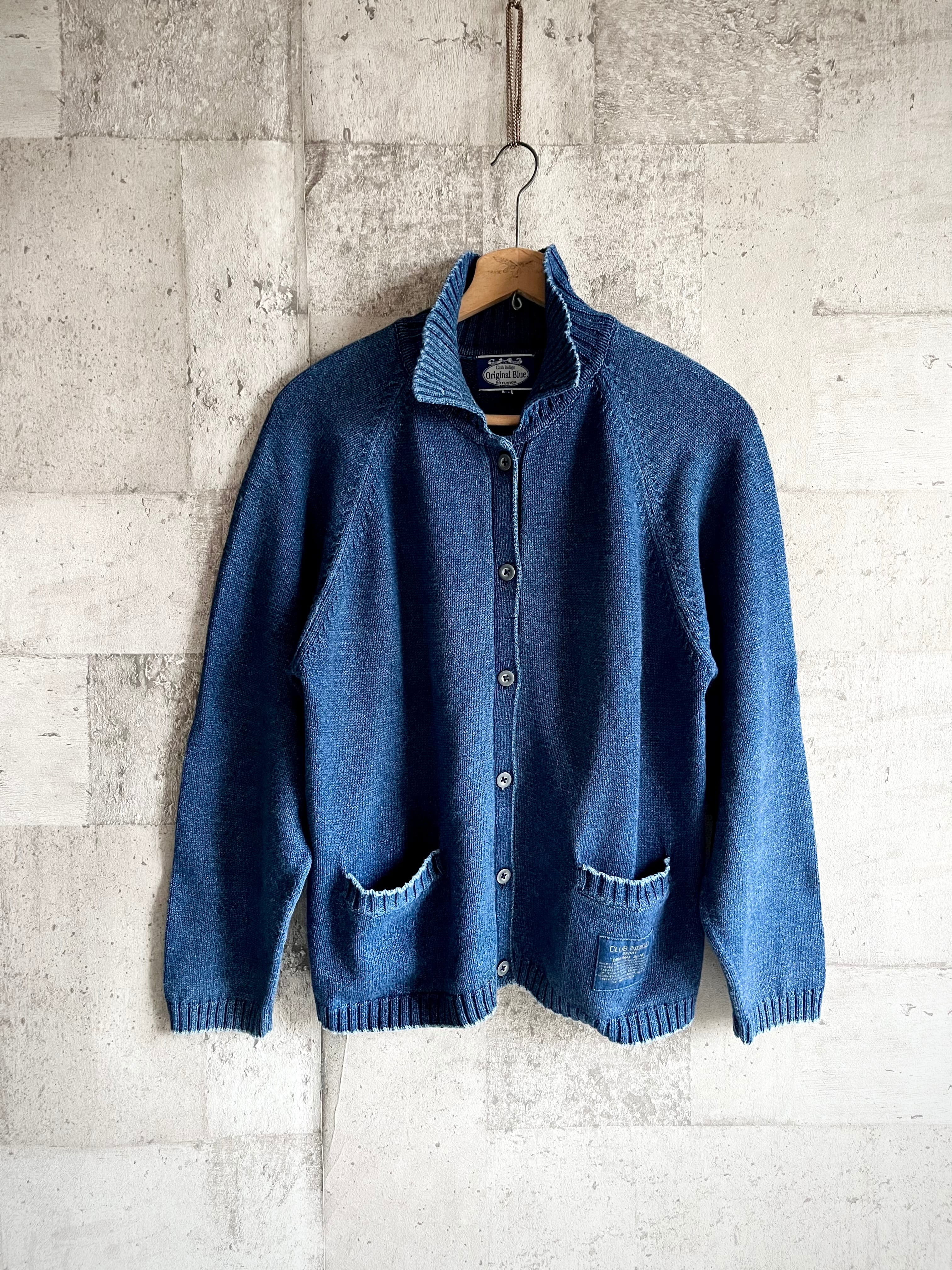 90s〜 ORIGINAL BLUE CLUB INDIGO KNIT CARDIGAN OLD VINTAGE オリジナルブルー クラブインディゴ カーディガン オールド ビンテージ