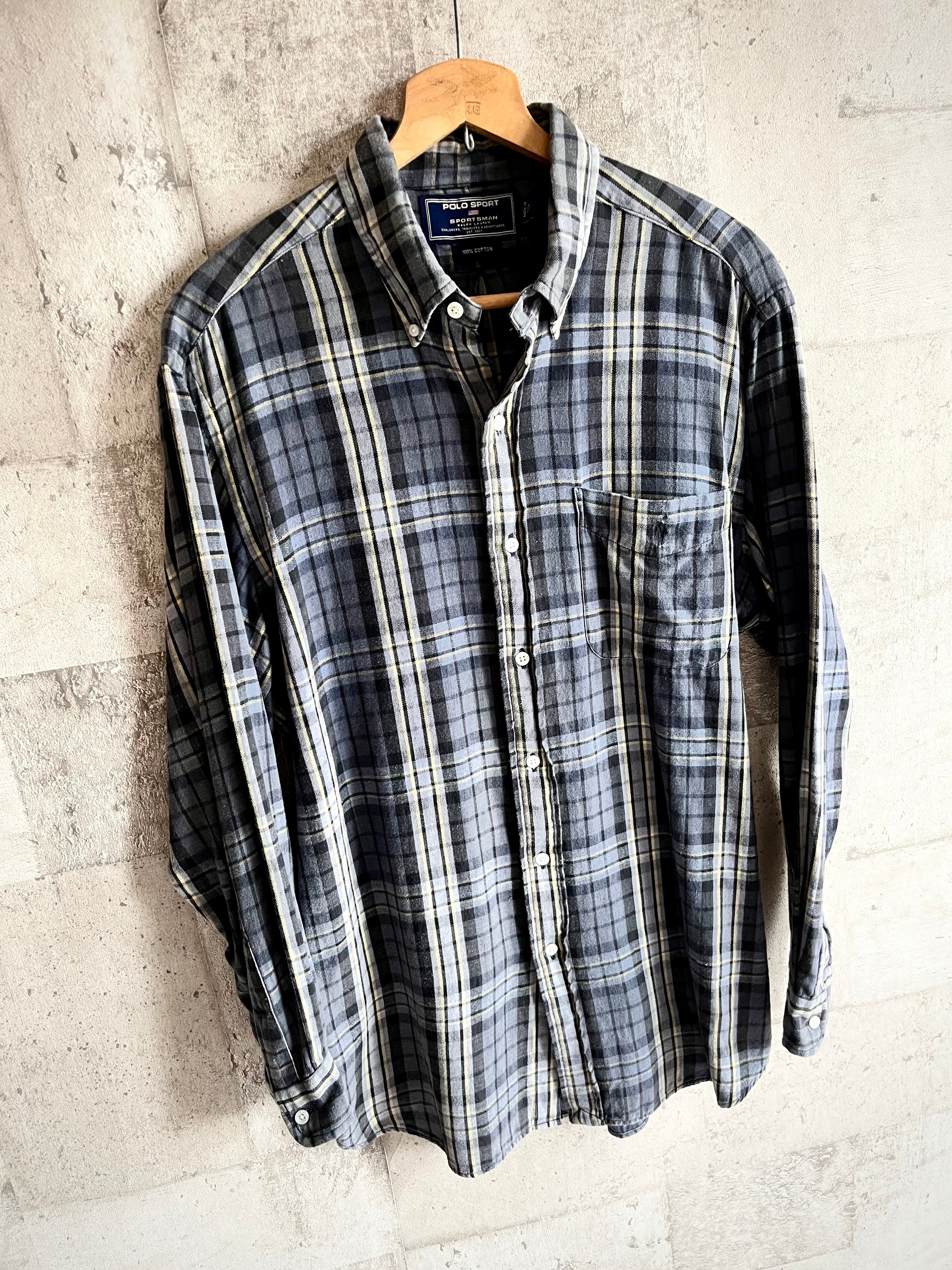 90s〜 POLO SPORT - RALPH LAUREN PLAID B/D FLANNEL SHIRT OLD VINTAGE 。