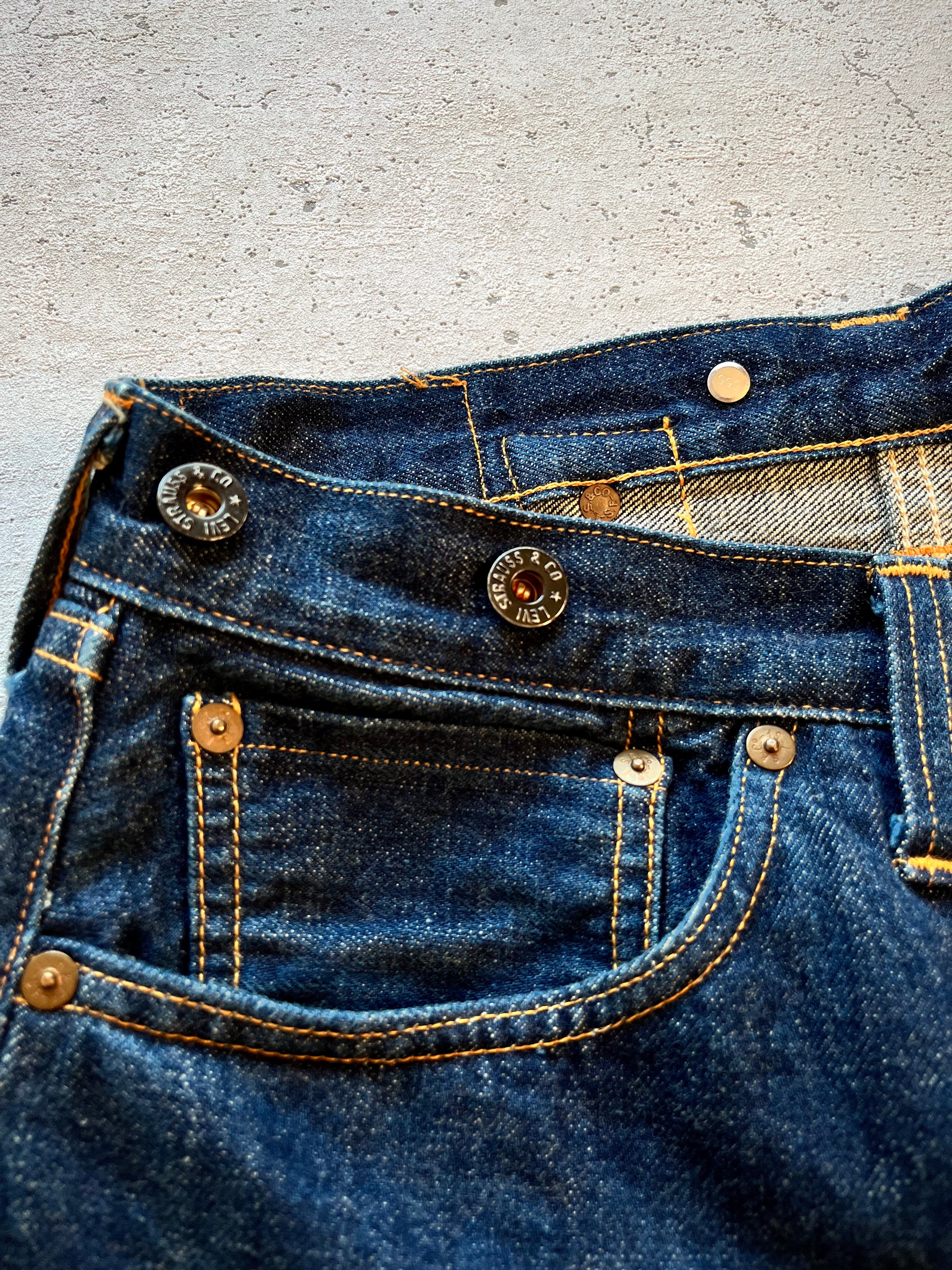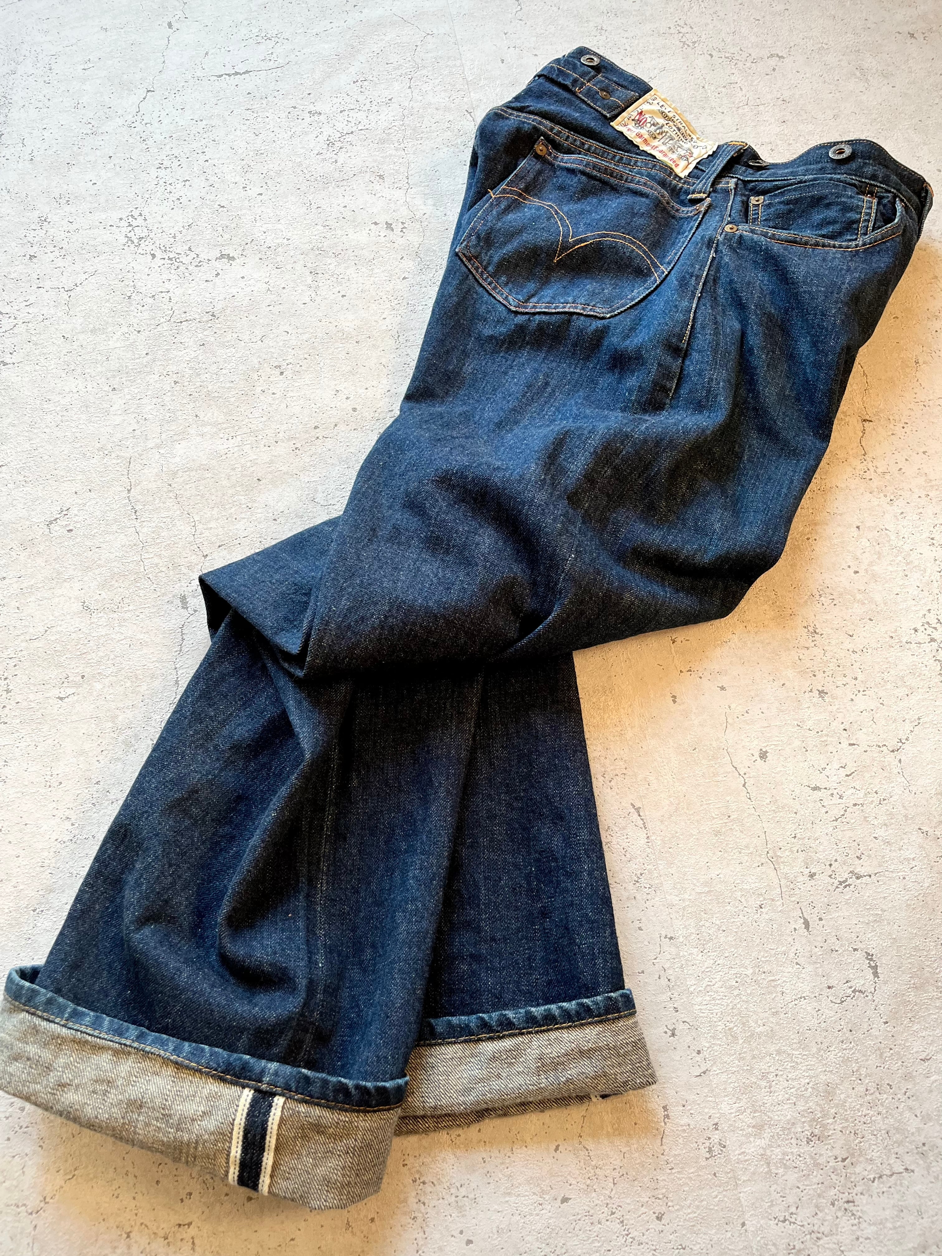 1920年代~,LEVI’Sから発売されていた所謂22年モデルとされる201-XX.NO.2デニムを忠実に再現し完成度高く名品とされる555刻印.バレンシア製造のUSA製.オールドモデル 。