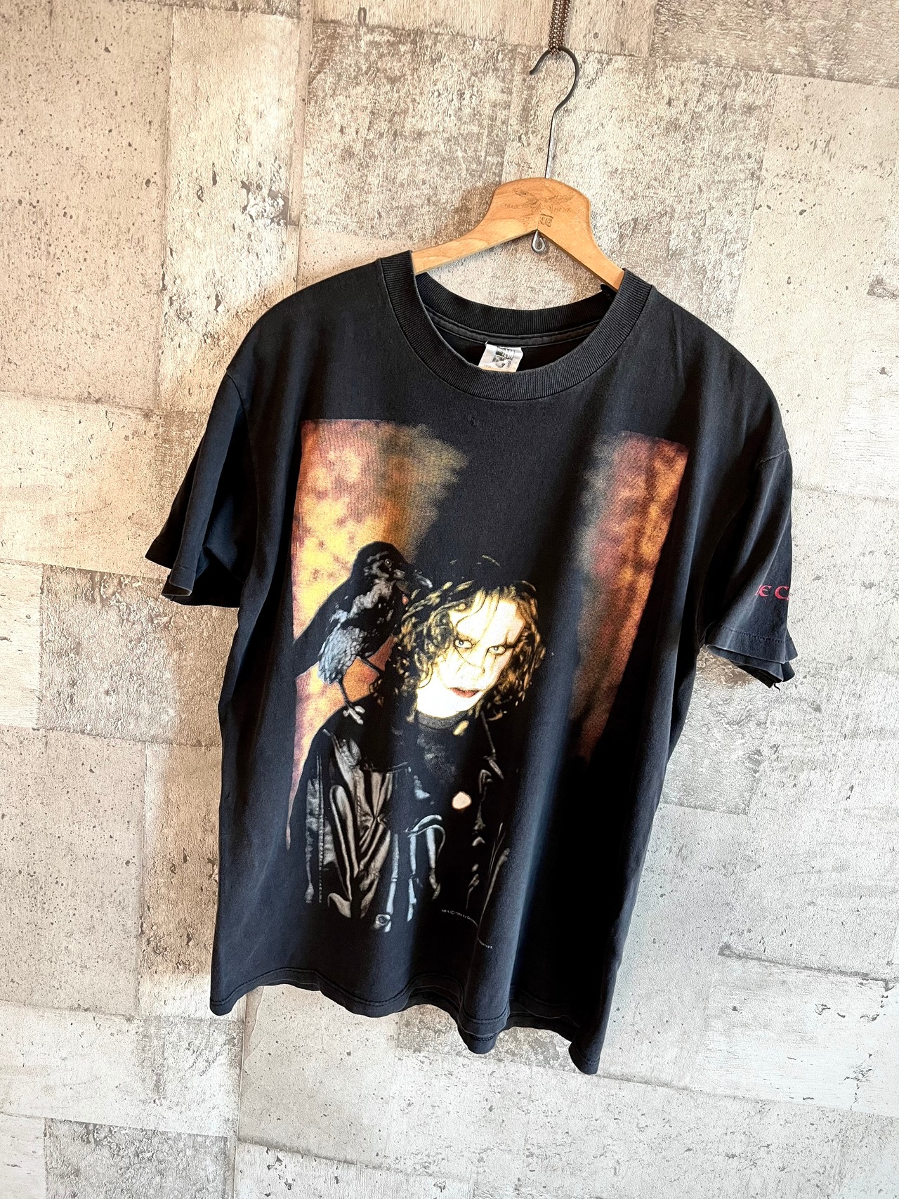 本作の撮影中に発砲事故で還らぬ人となってしまった“ブルース・リー”の子息“ブランドン・リー”が主演を務め演じた作品の主人公“エリック・ドレイヴン”がフロントに大きくプリントされた希少な当時のオフィシャルTシャツ。