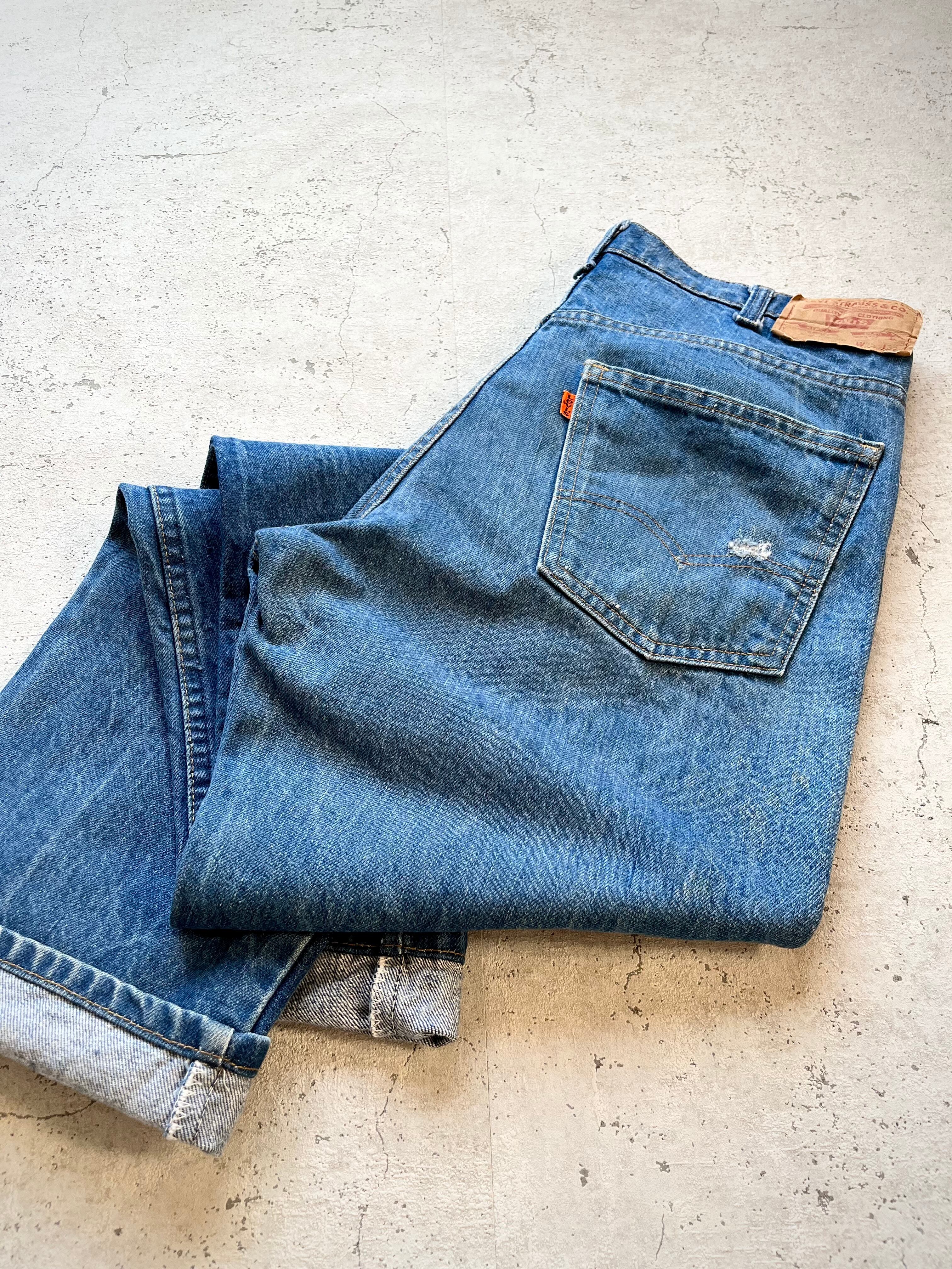 70s MADE IN USA “LEVI’S” 519-0217 ORANGE-TAB STRAIGHT DENIM OLD VINTAGE 。