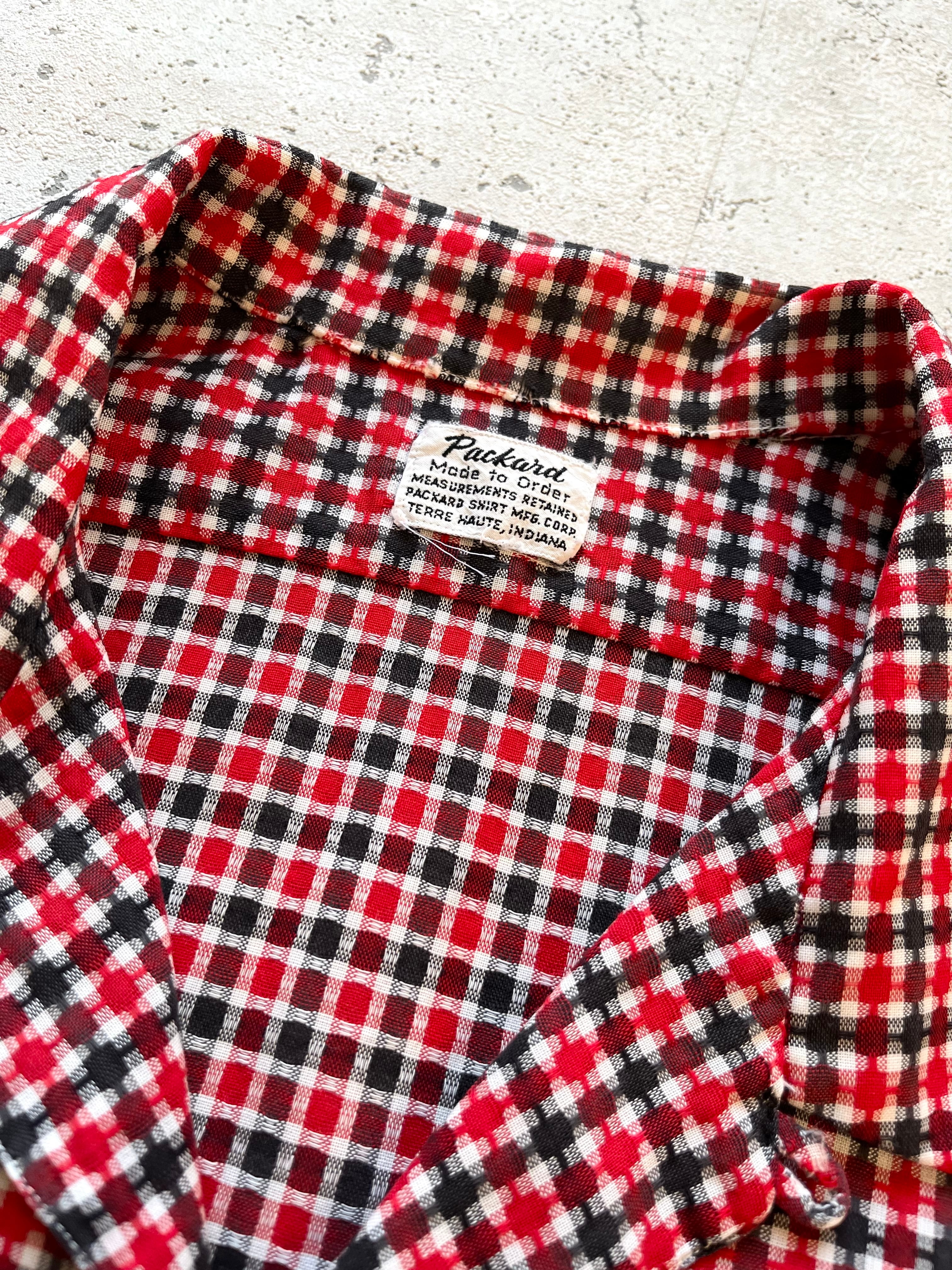 60s PACKARD SHIRT MFG MADE TO ORDER PLAID SHIRT OLD VINTAGE アメリカ製 パッカード オーダーメイド オープンカラー チェックシャツ オールド ビンテージ