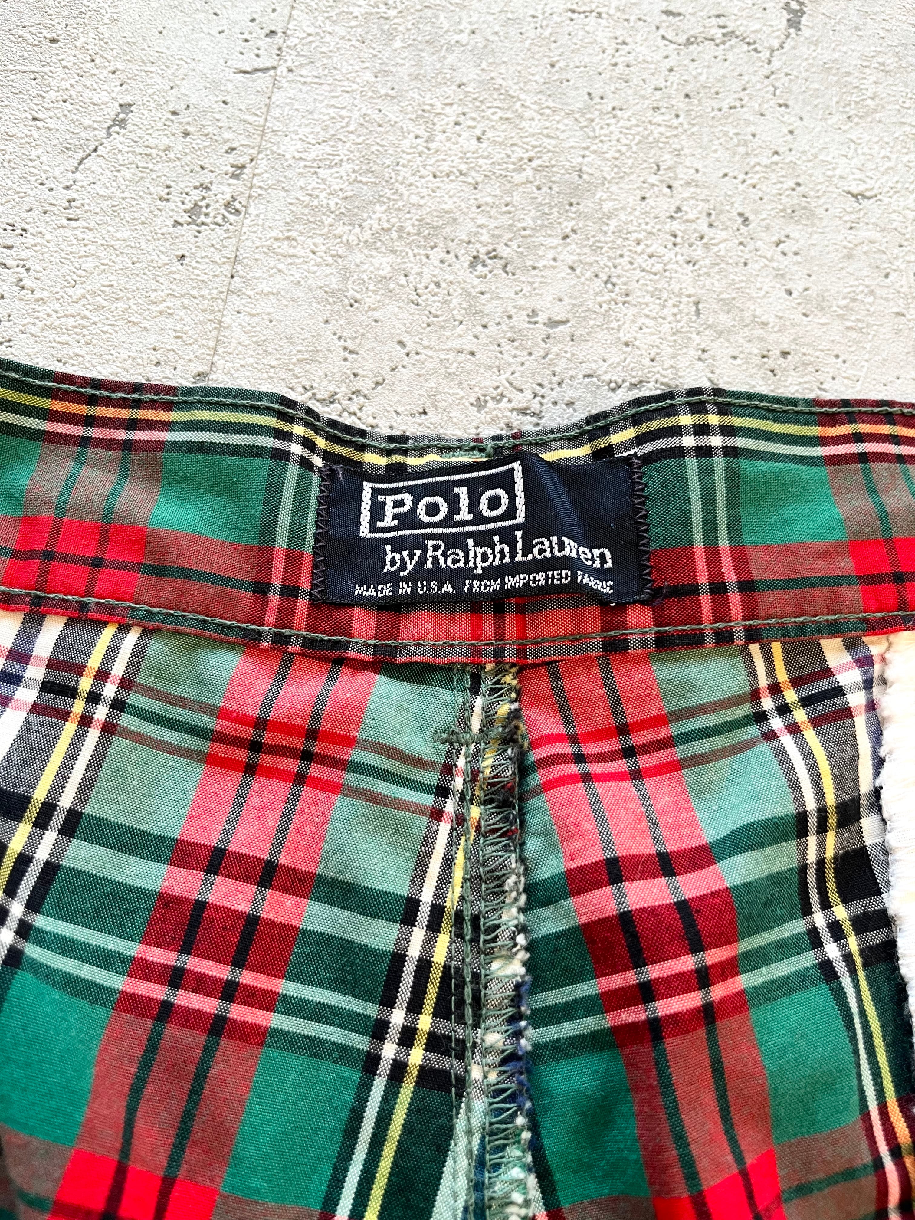 80s-90s MADE IN USA “ RALPH LAUREN ” MADRAS CHECK SHORT PANTS OLD VINTAGE 。