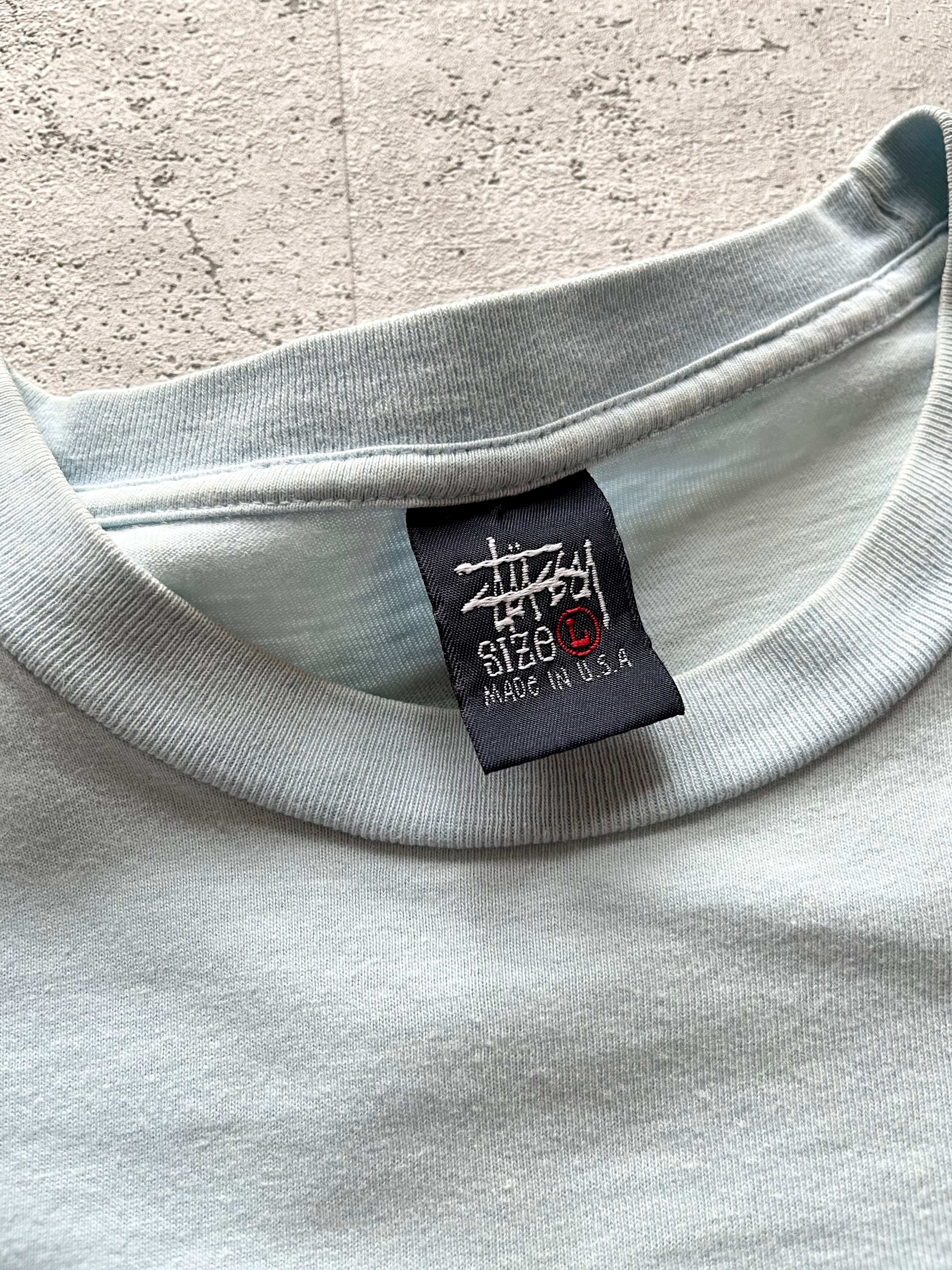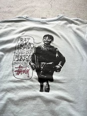 特にブランド発足時とされる80年代後期の黒タグアイテムはショーンが携わっていた事もあってオールドステューシーとしてコアなファンを魅了しており、この頃のアイテムとしては非常に人気が高くコレクションとしても収集されている方が多いフォトプリントシリーズの90年代.紺タグ期“EAT DRINK” Tシャツになります。