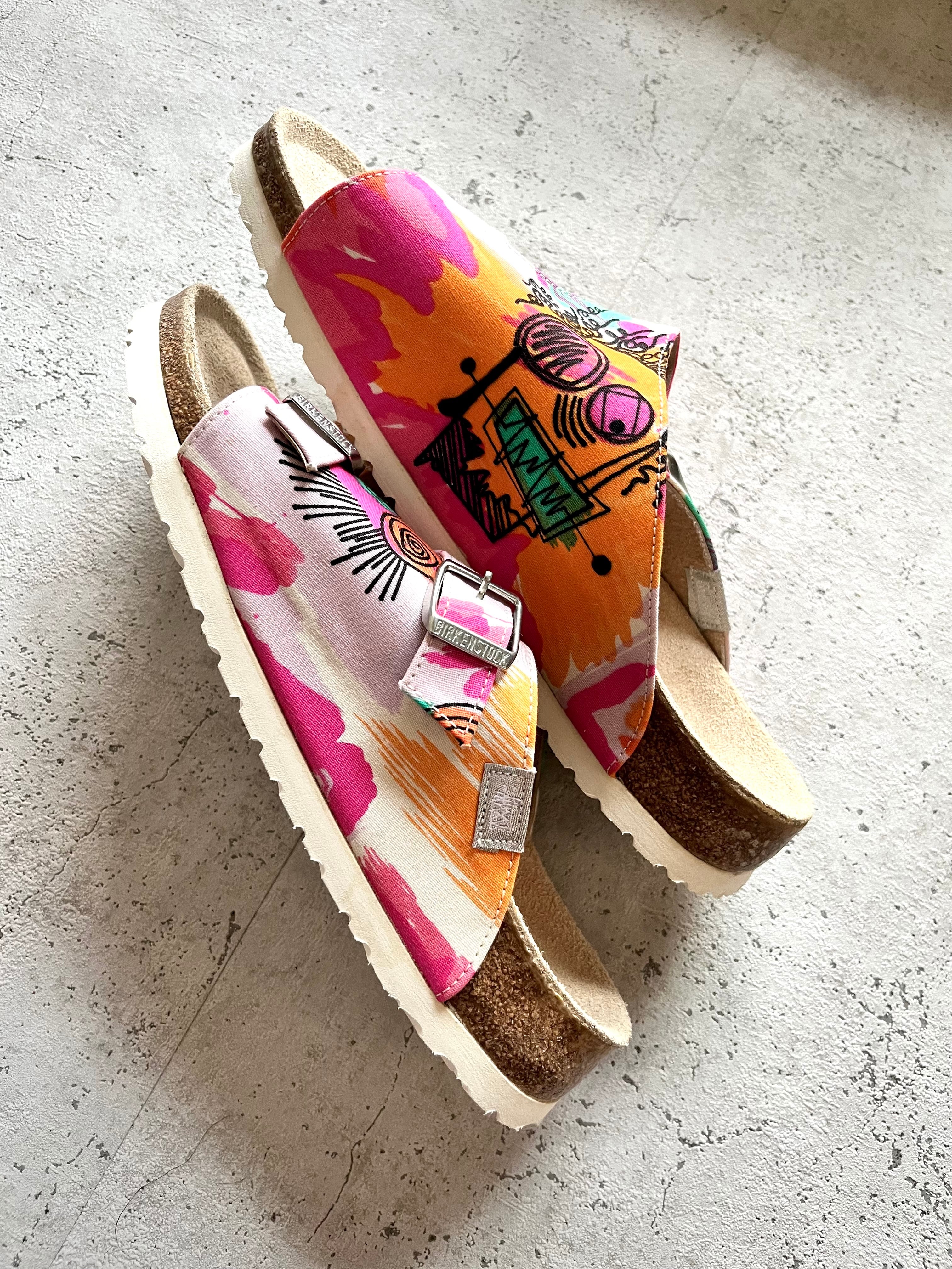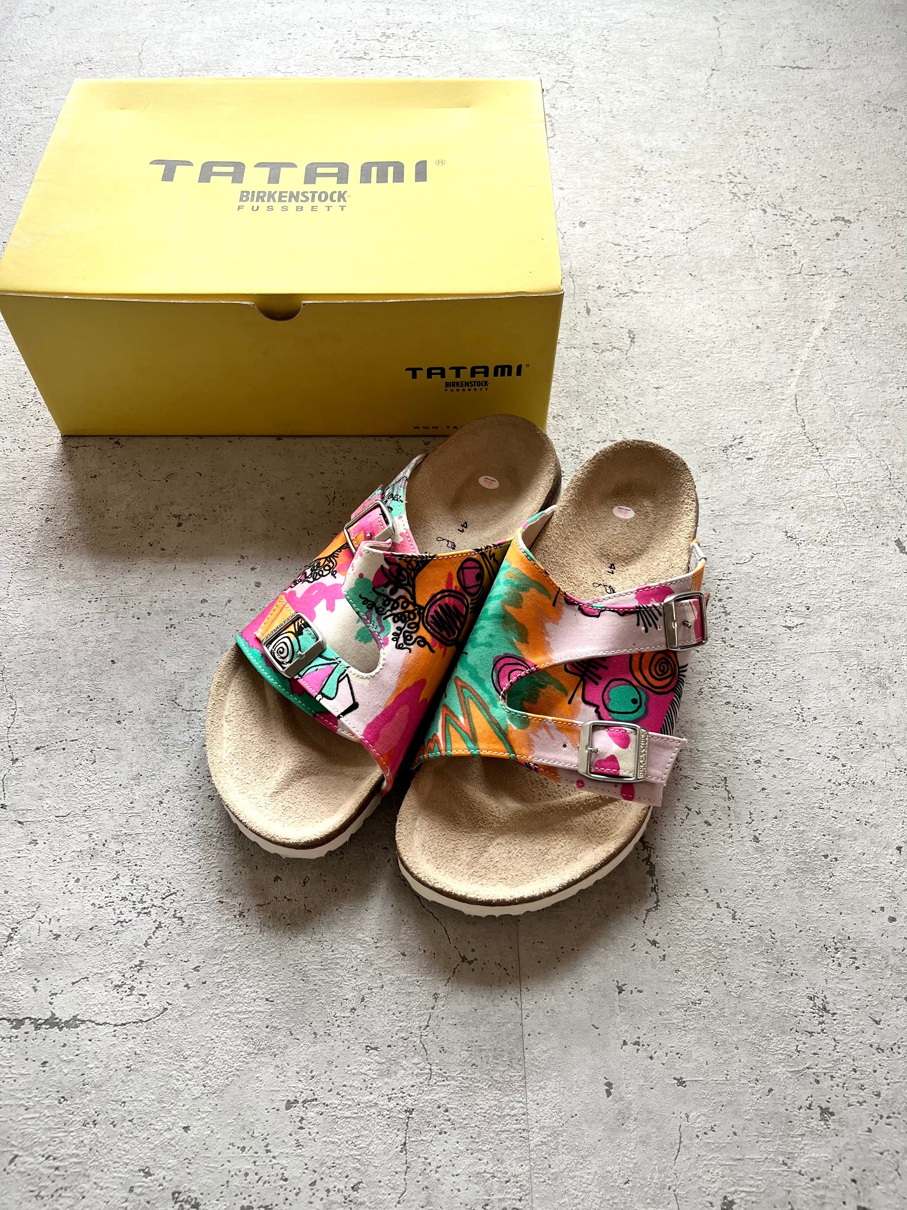 別ラインとして展開されている“TATAMI”からベーシックなPRICAをベースにSTUSSYならではアーティスティックなデザインが施されたインパクトのあるグッドなデザイン、カラフルな色合いのバランスも良くこれからのシーズンには最適な唯一無二のサンダルだと思います。