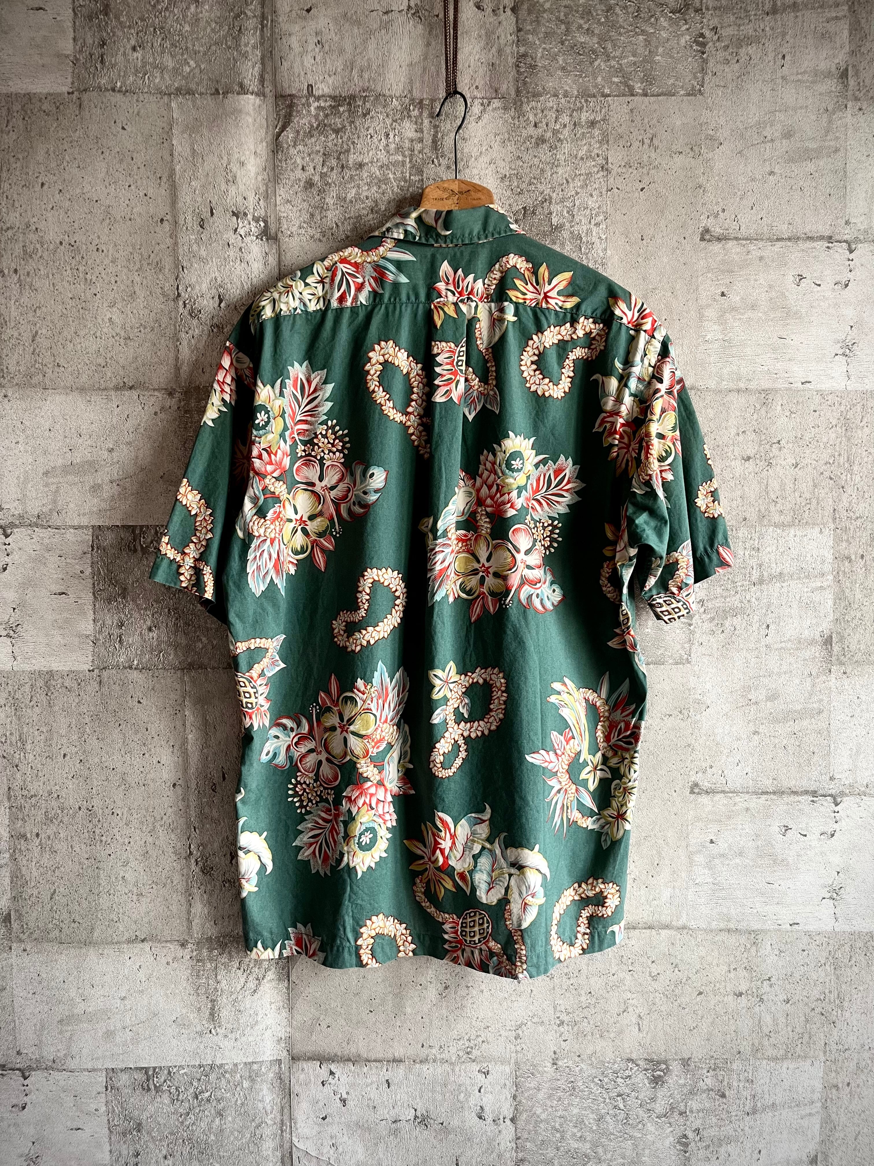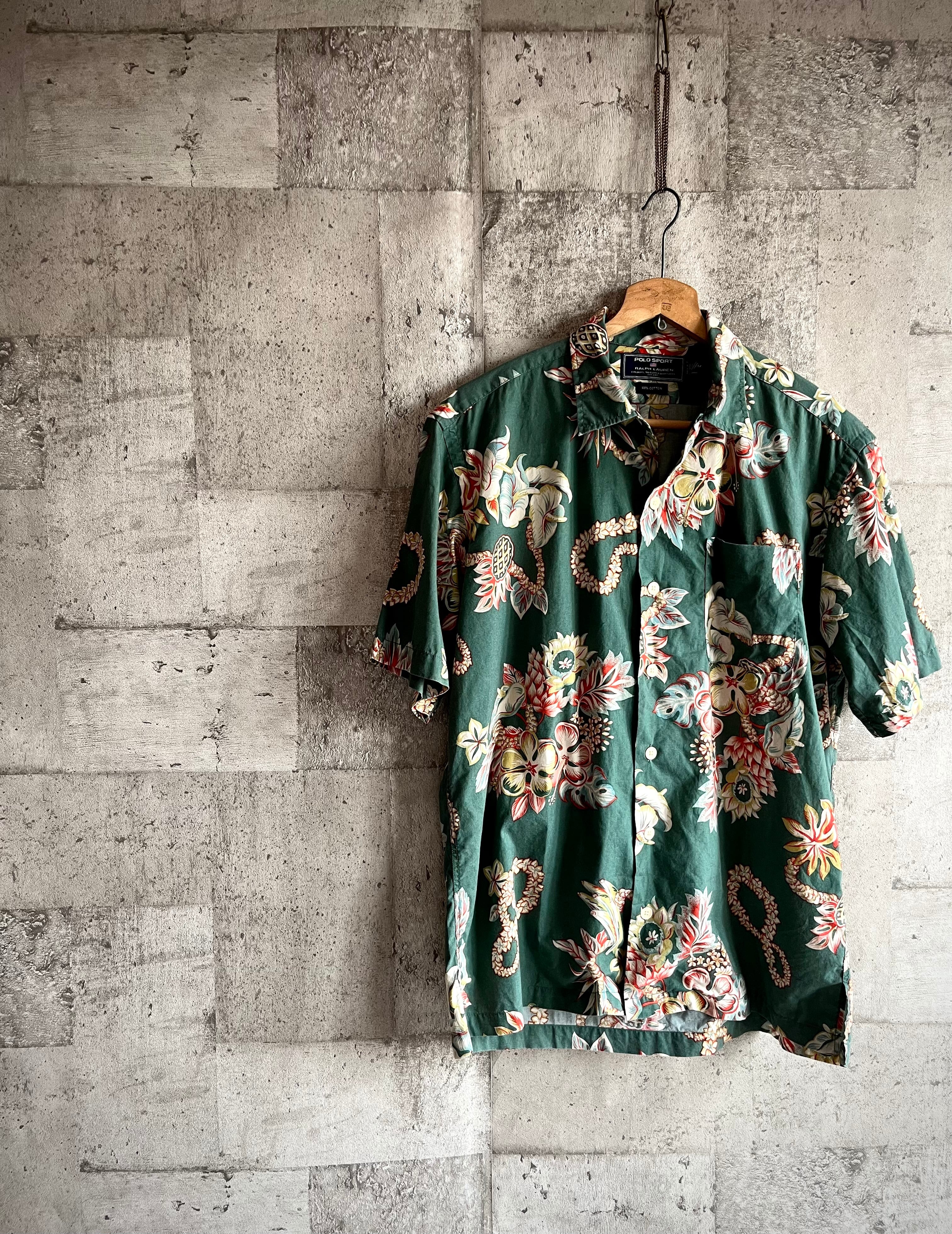 グリーンベースと少し渋さも感じられ色調やフラワーデザインもバランス良く纏まっており、何よりポロスポーツでのハワイアンとなると展開も少なく少し珍しい1枚だと思います。