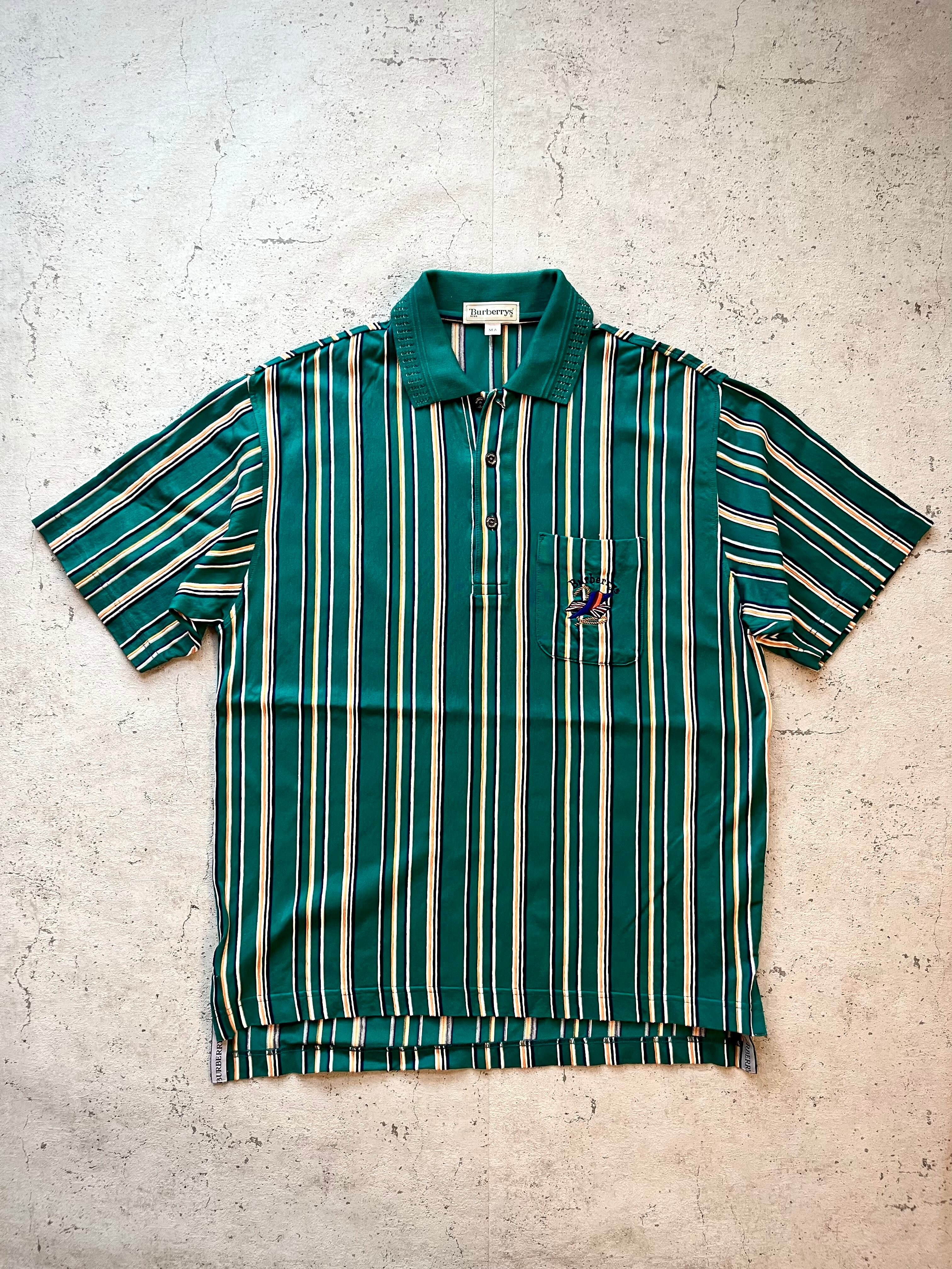 90s〜 BURBERRYS RANDOM STRIPE POLO OLD VINTAGE バーバリー ランダムストライプ 天竺ニット ポロシャツ オールド ビンテージ