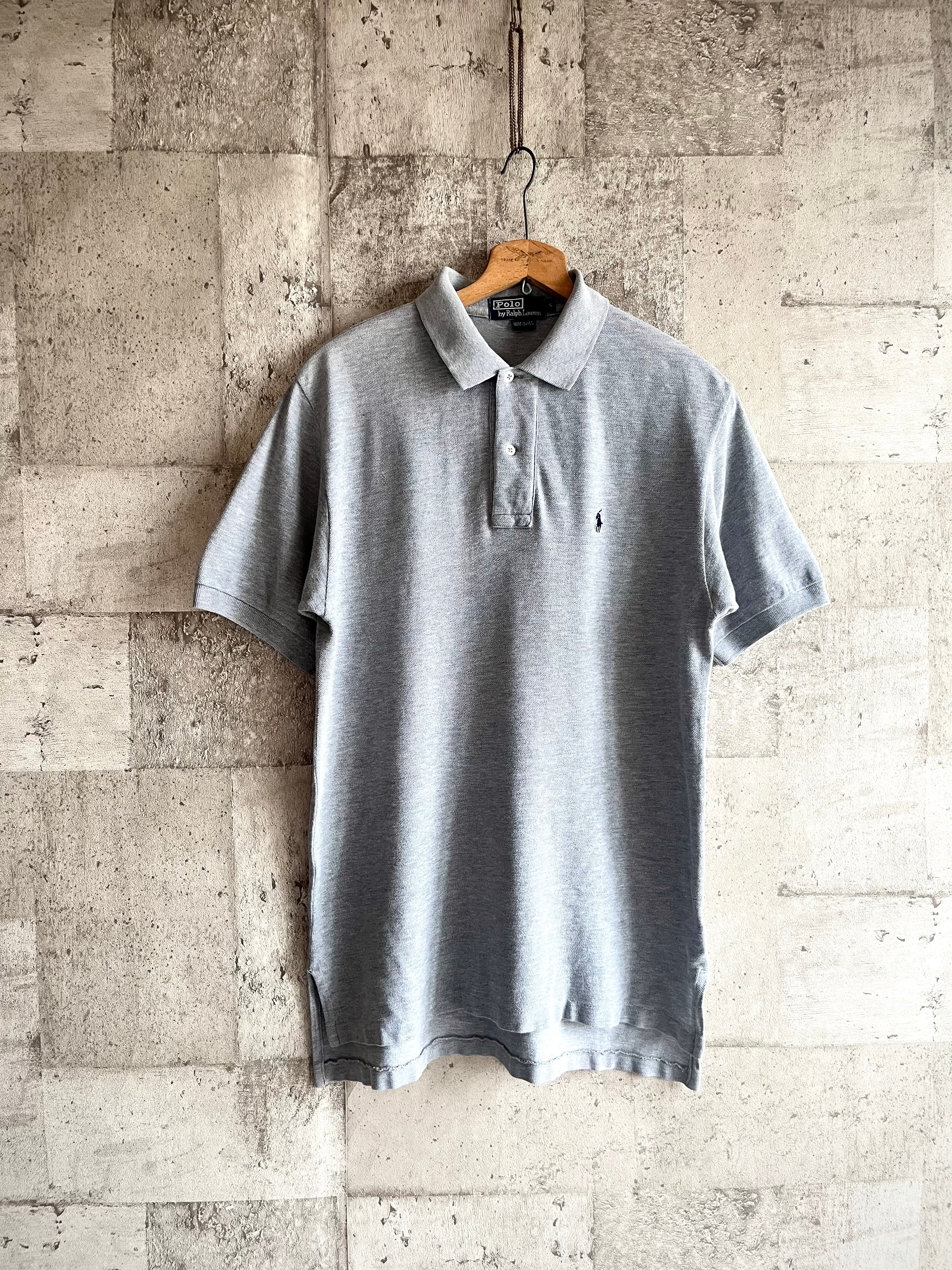 90s USA製 POLO - RALPH LAUREN ONE POINT POLO SHIRT GREY OLD VINTAGE アメリカ製 ラルフローレン ワンポイント ポロシャツ オールド ビンテージ