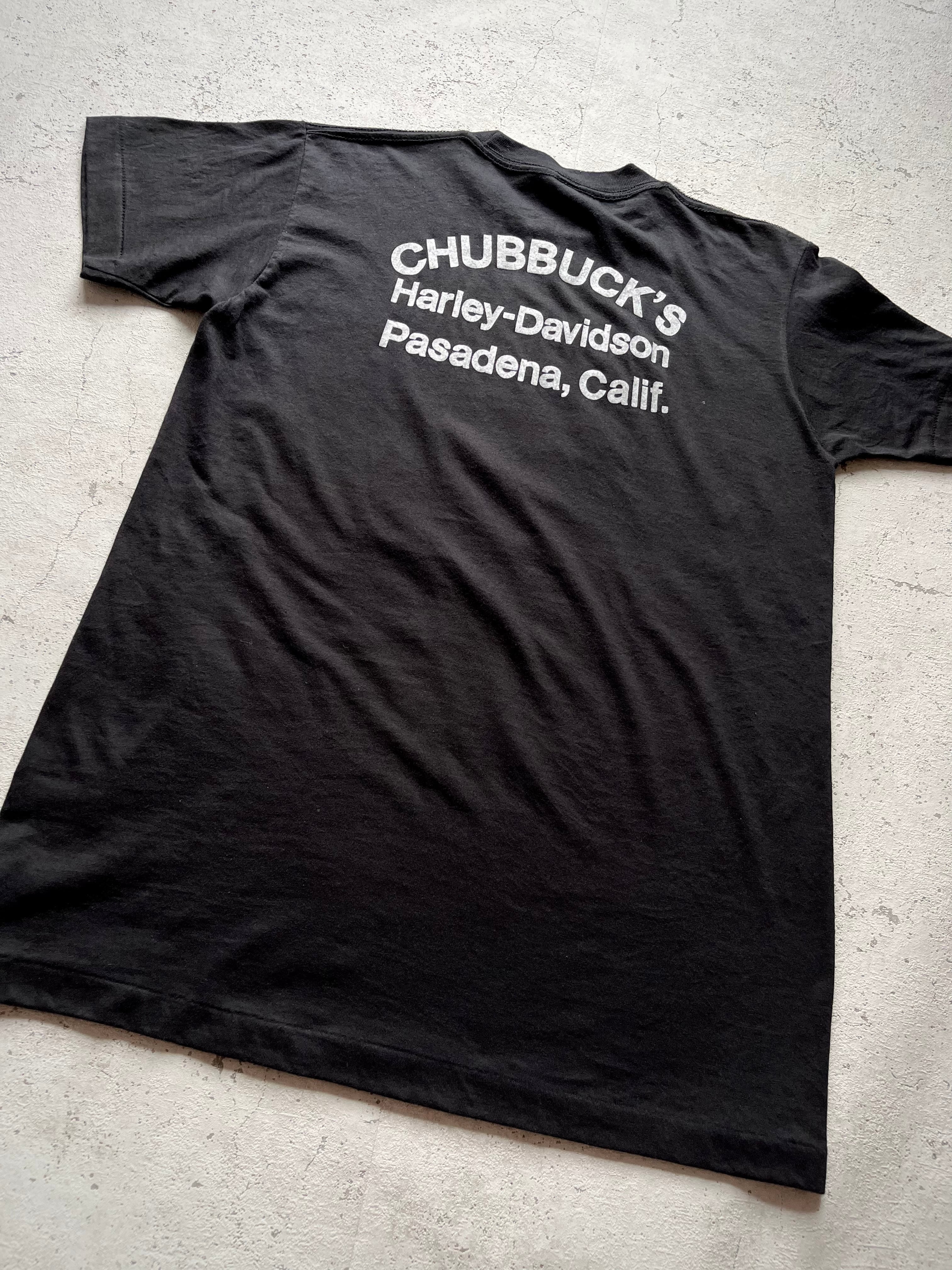 80s〜.SCREEN STARS-USA製ボディをベースに人気のNO.1モチーフやお馴染みのイーグルロゴがプリントされたグッドデザイン、バックサイドは70sでもお馴染みの“CHUBBUCKS-PASADENA.CALIF”ロゴバージョンと非常に人気の高いシリーズだと思います。
