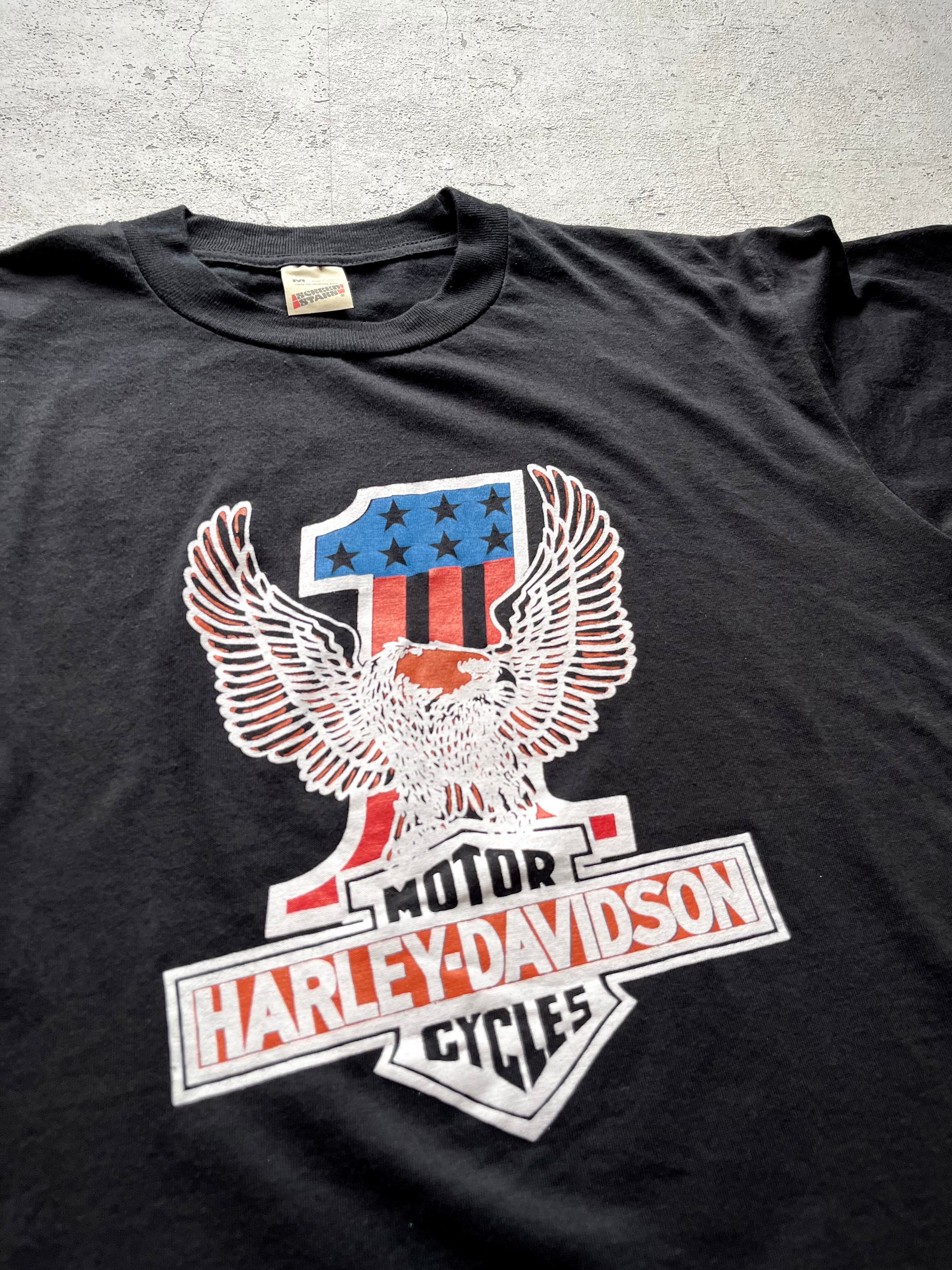 DEAD STOCK? 80s〜 USA製 HARLEY-DAVIDSON - S/S NO.1 W-PRINT TEE OLD VINTAGE 。