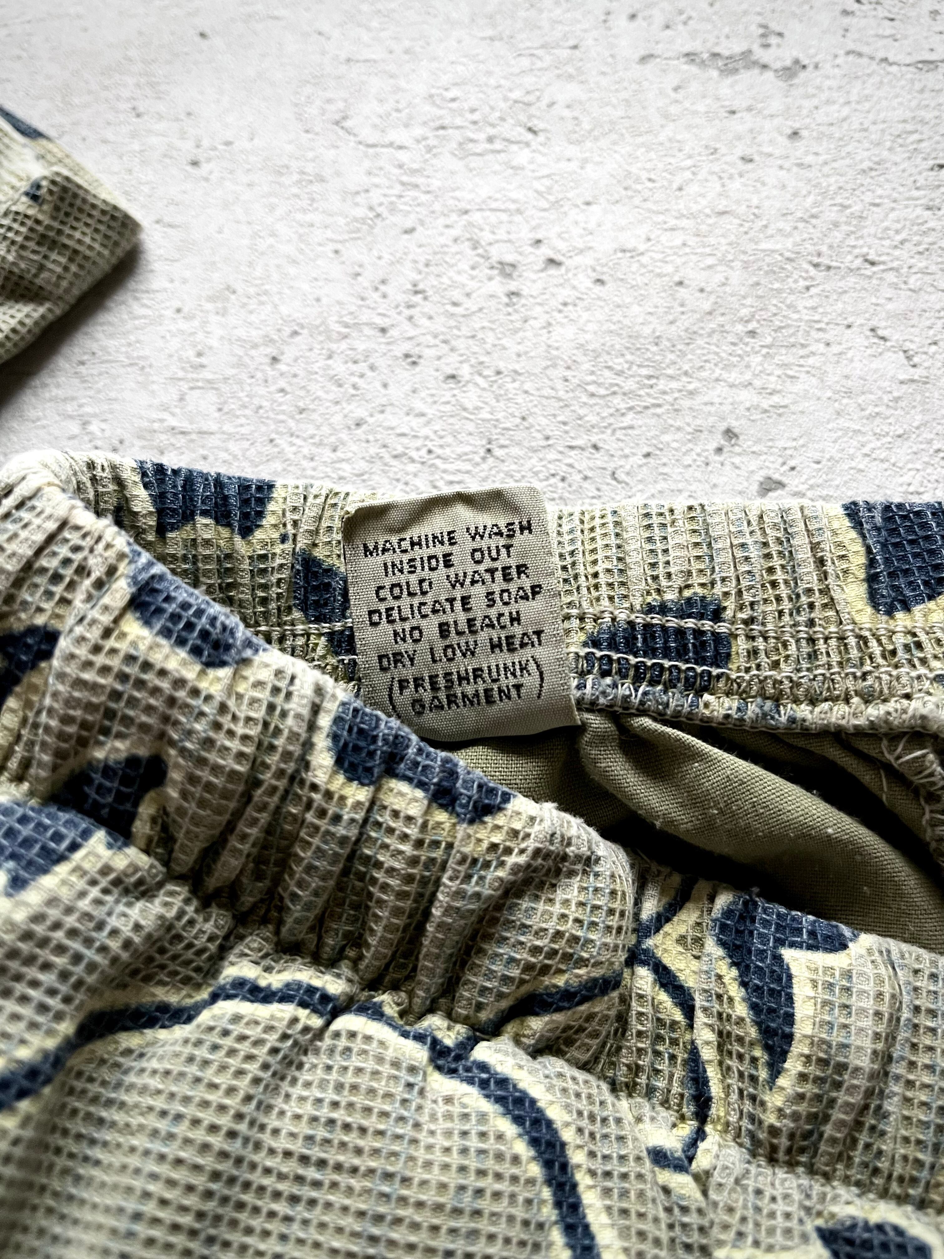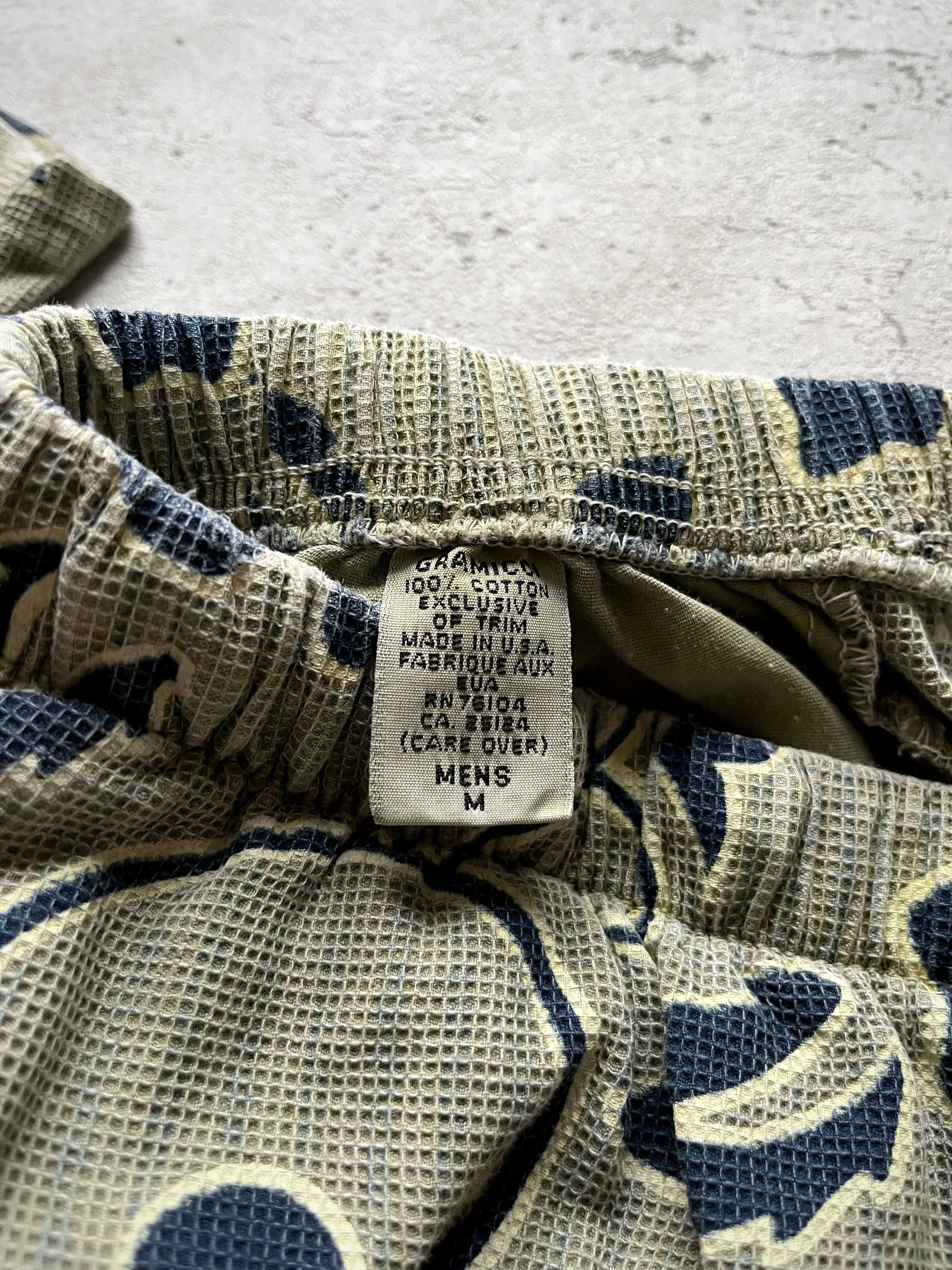数多く存在するGRAMICCIアイテムの中でも定番として位置付けられているクライミングパンツ、シーズンとしては最適なフラワーパターンを纏いオールコットンの薄手なワッフル素材にて仕立てられたレアな総柄タイプのロングバージョンです。