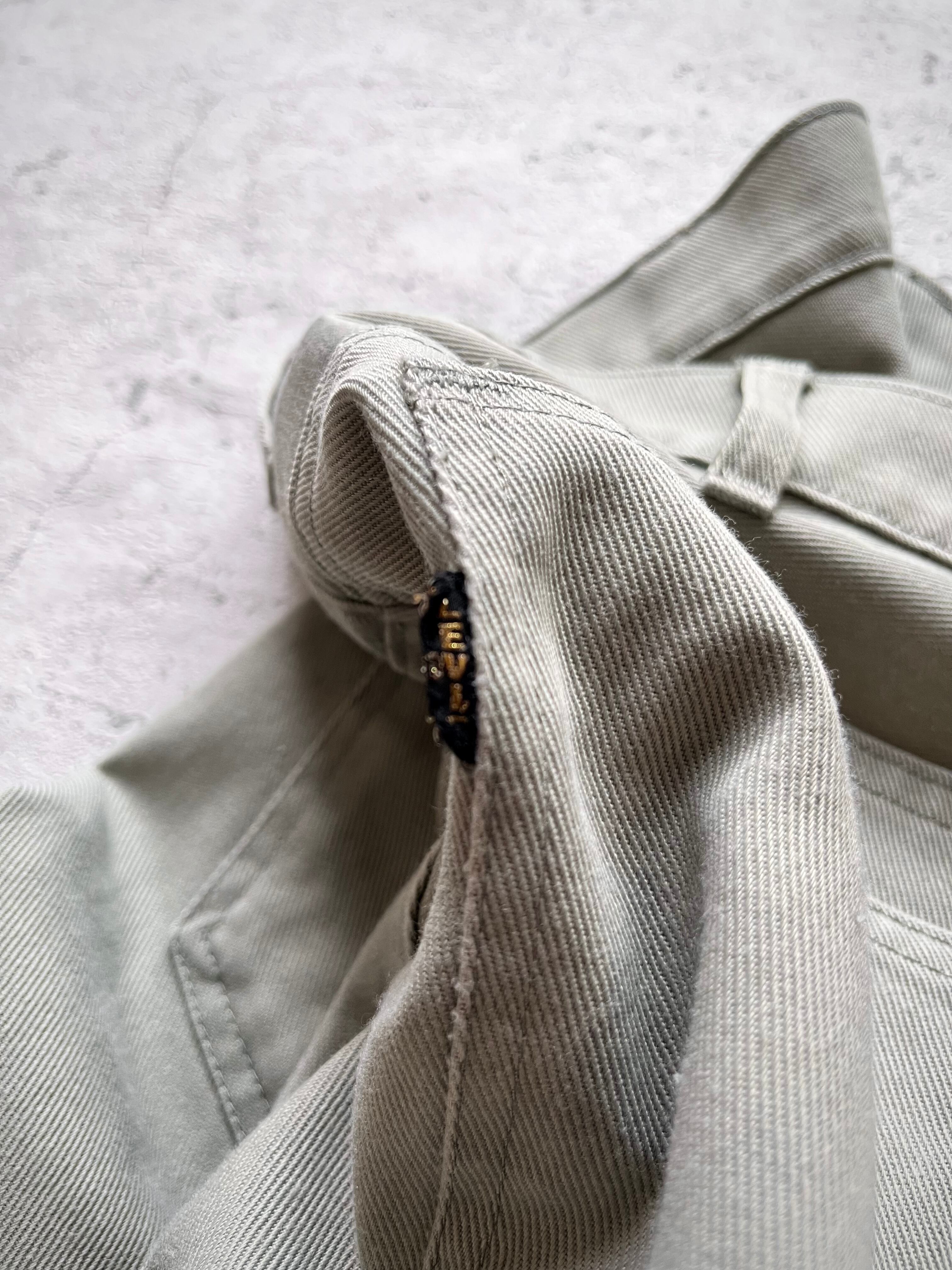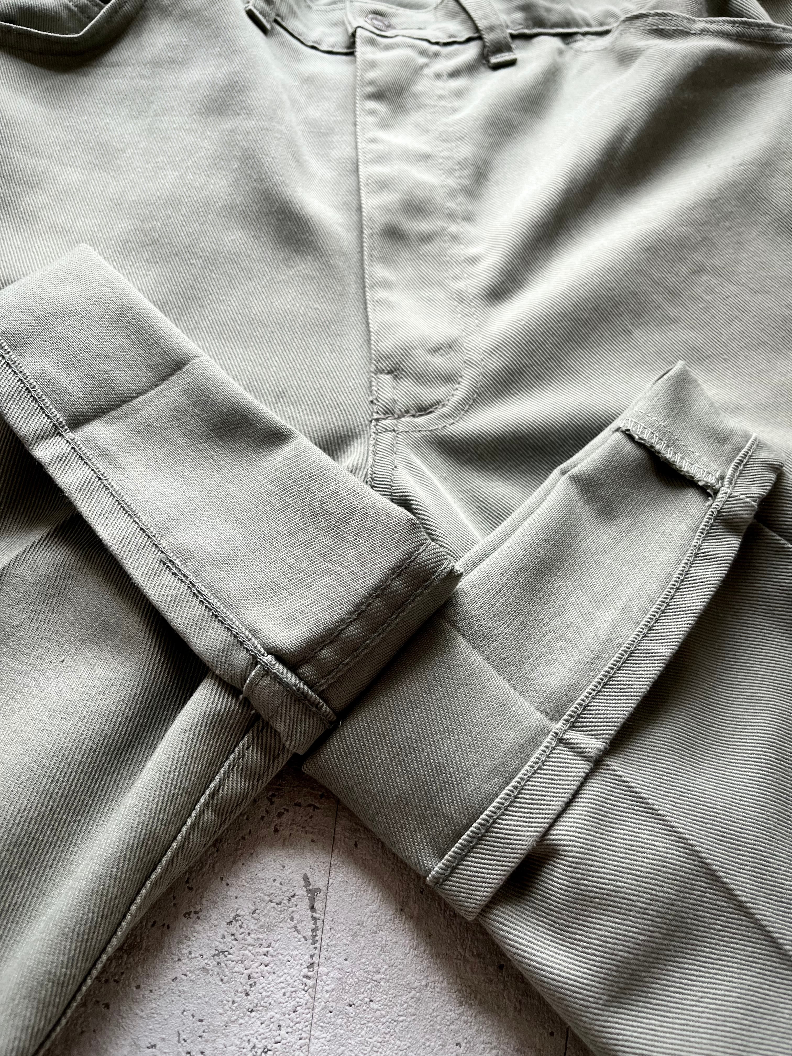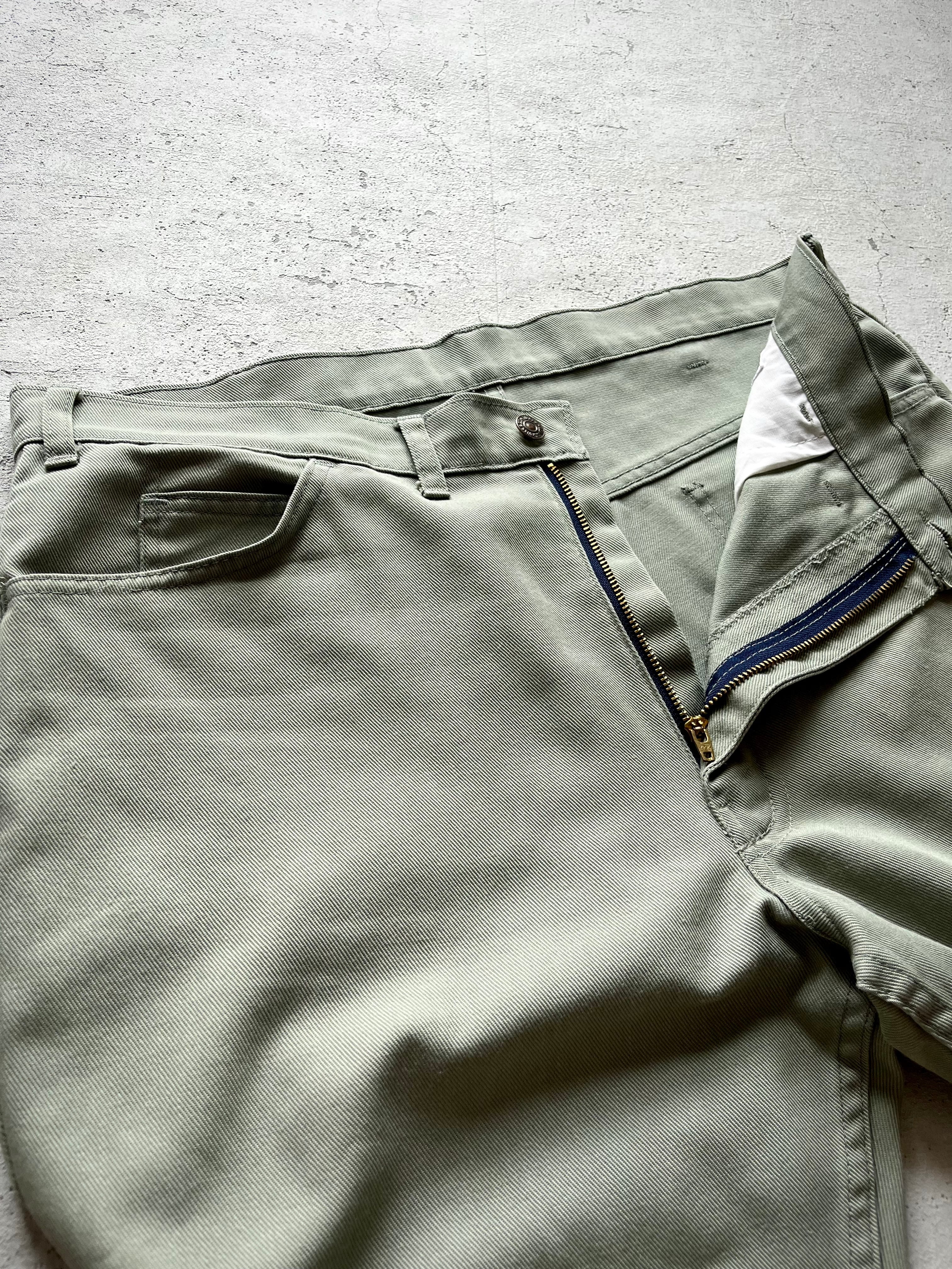 約50年前の物とは思えないほど全くクセの無い綺麗なスリムテーパードシルエット、季節を問わない薄手の素材感にライトなモスグリーンのカラーリングが絶妙にマッチしたLEVI’Sらしい雰囲気の良いビンテージオリジナルです。