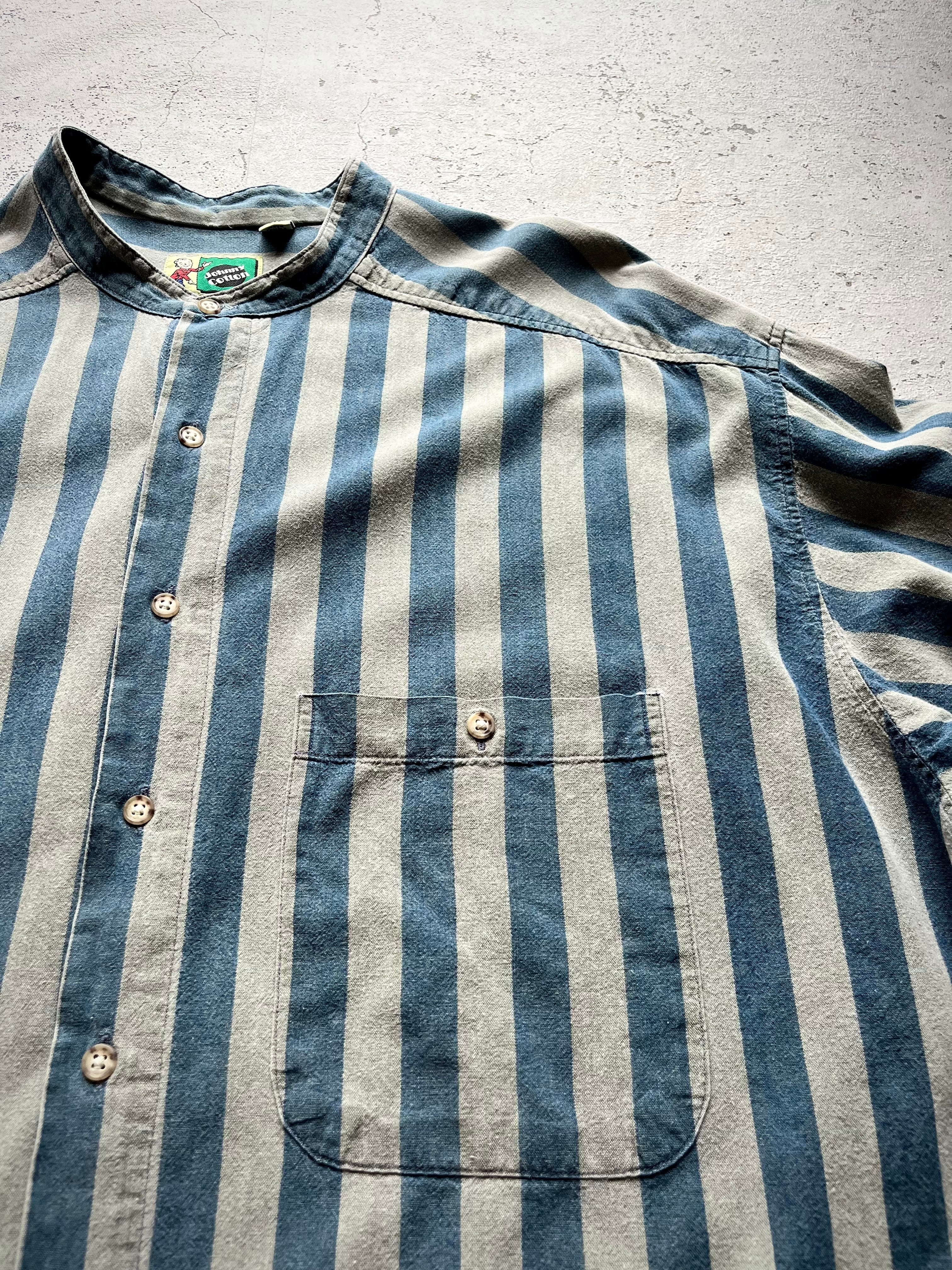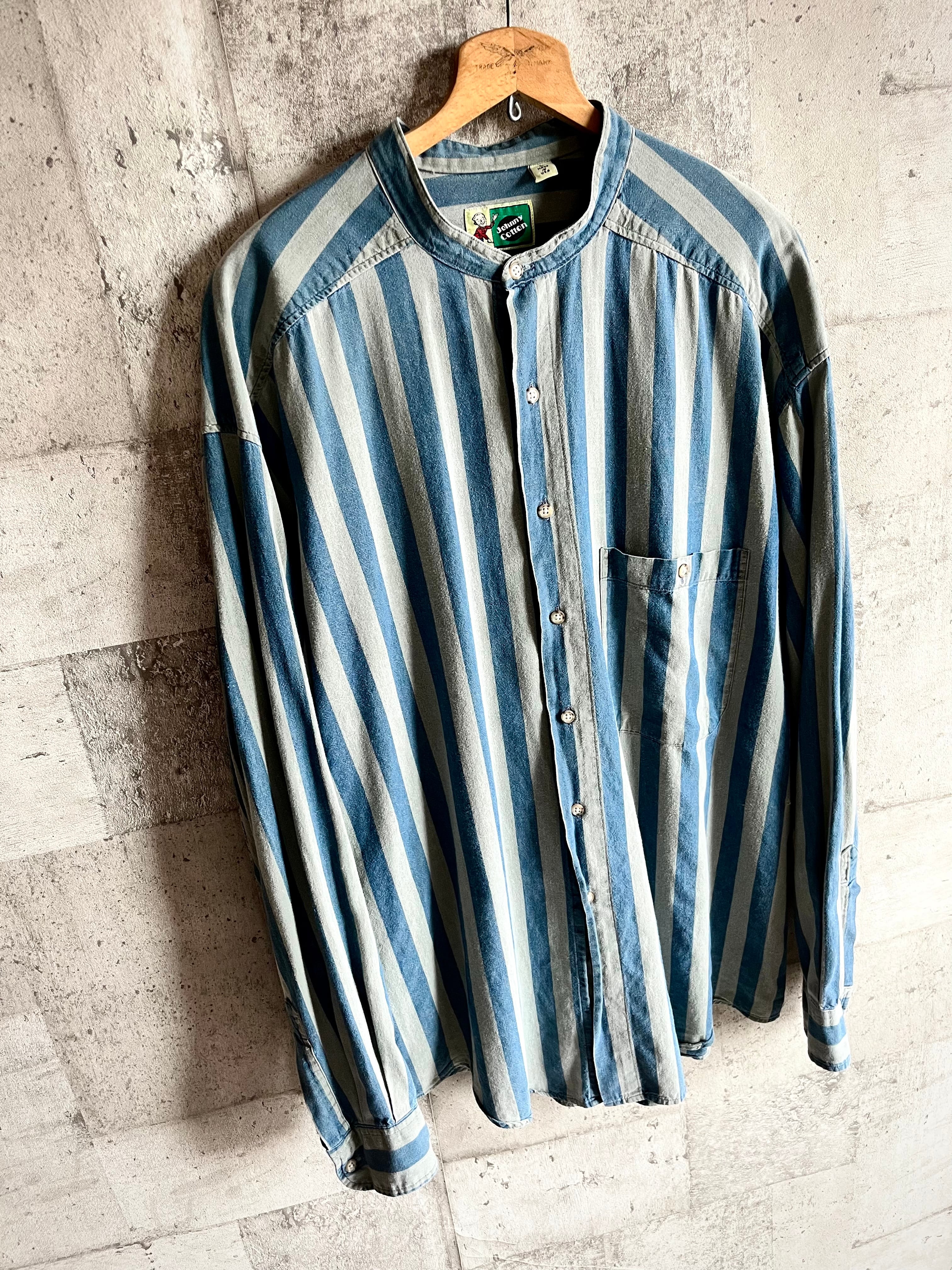 80s-90s USA製 “ JOHNNY COTTON ” STAND STRIPE SHIRT OLD VINTAGE アメリカ製 ジョニーコットン スタンド ストライプシャツ オールド ビンテージ