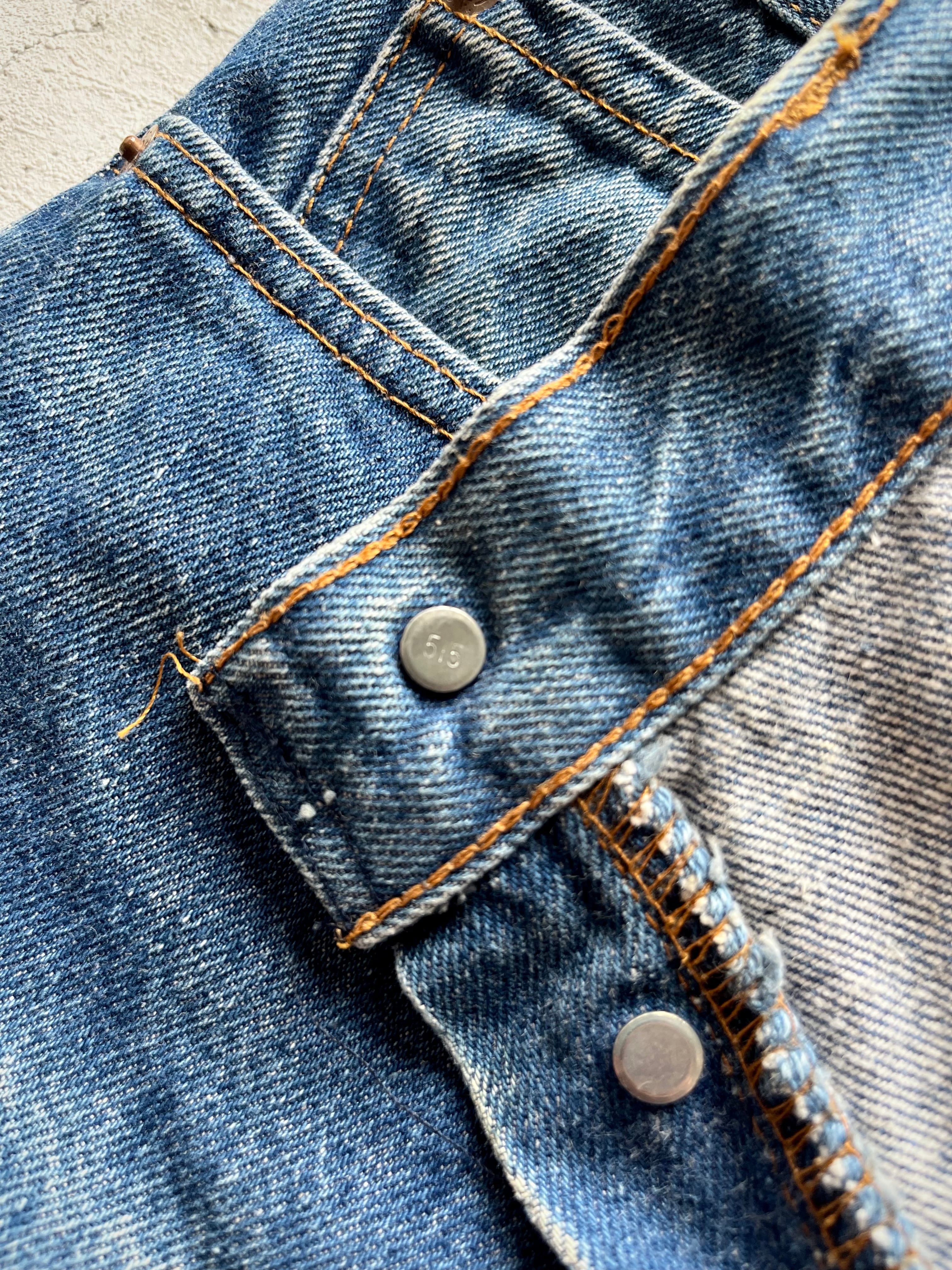 細かなディティールとしてレアなRのみのブランクタブに内側の紙タグが欠損ですが黒文字CARE〜印字の紙パッチ,両サイド脇割,ボタン裏515刻印,品番が501-0000表記となった珍しいディティール。