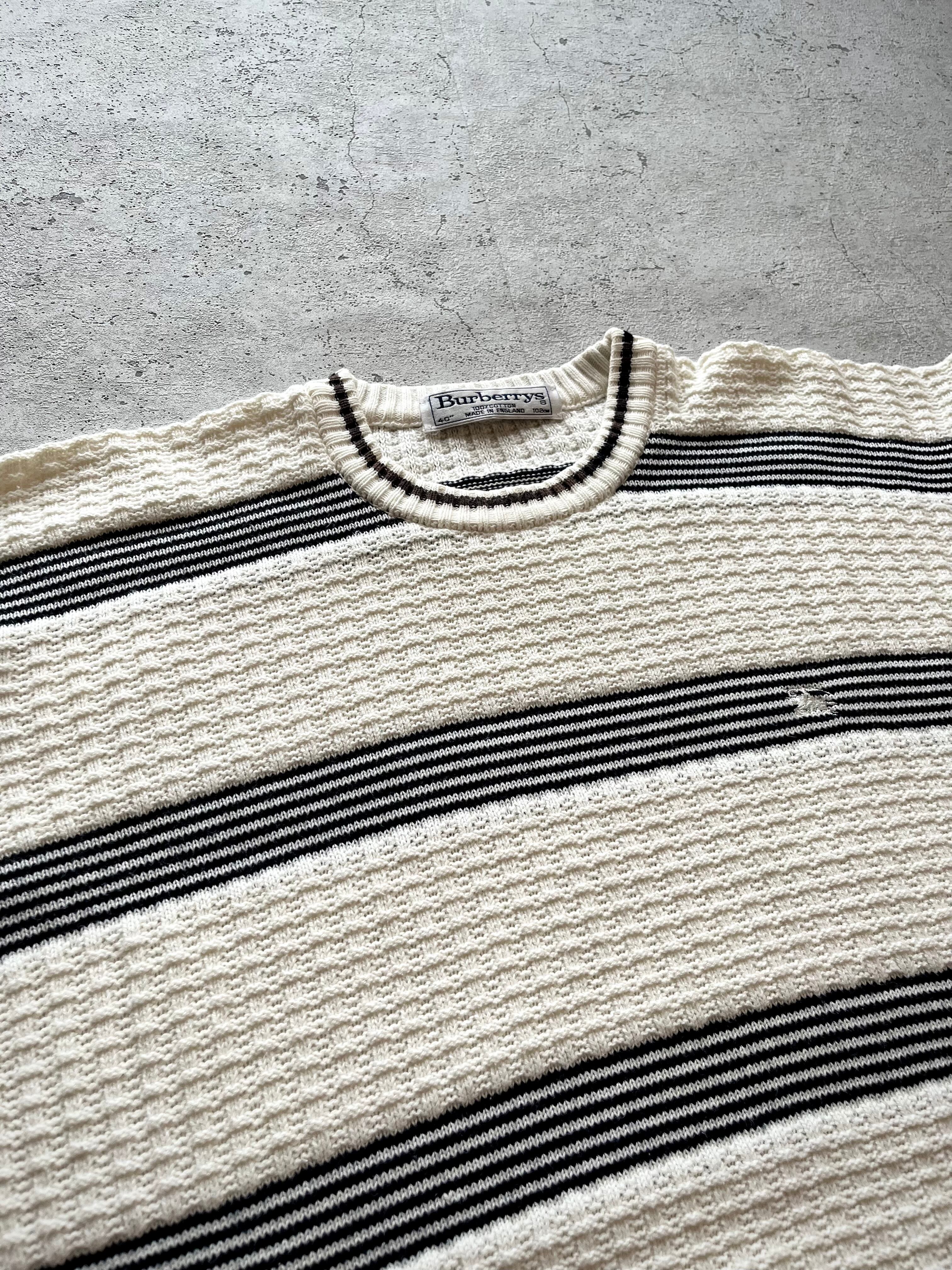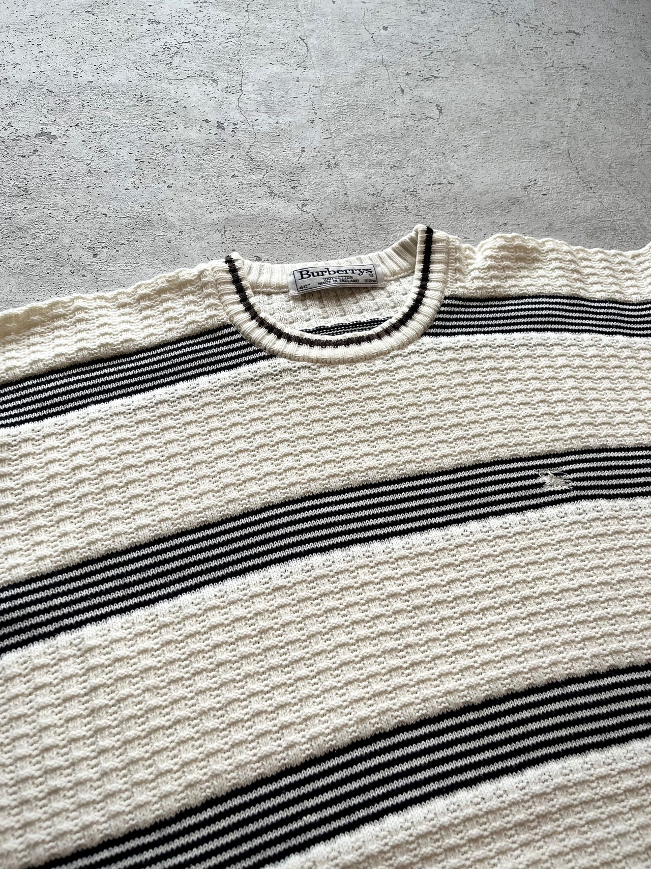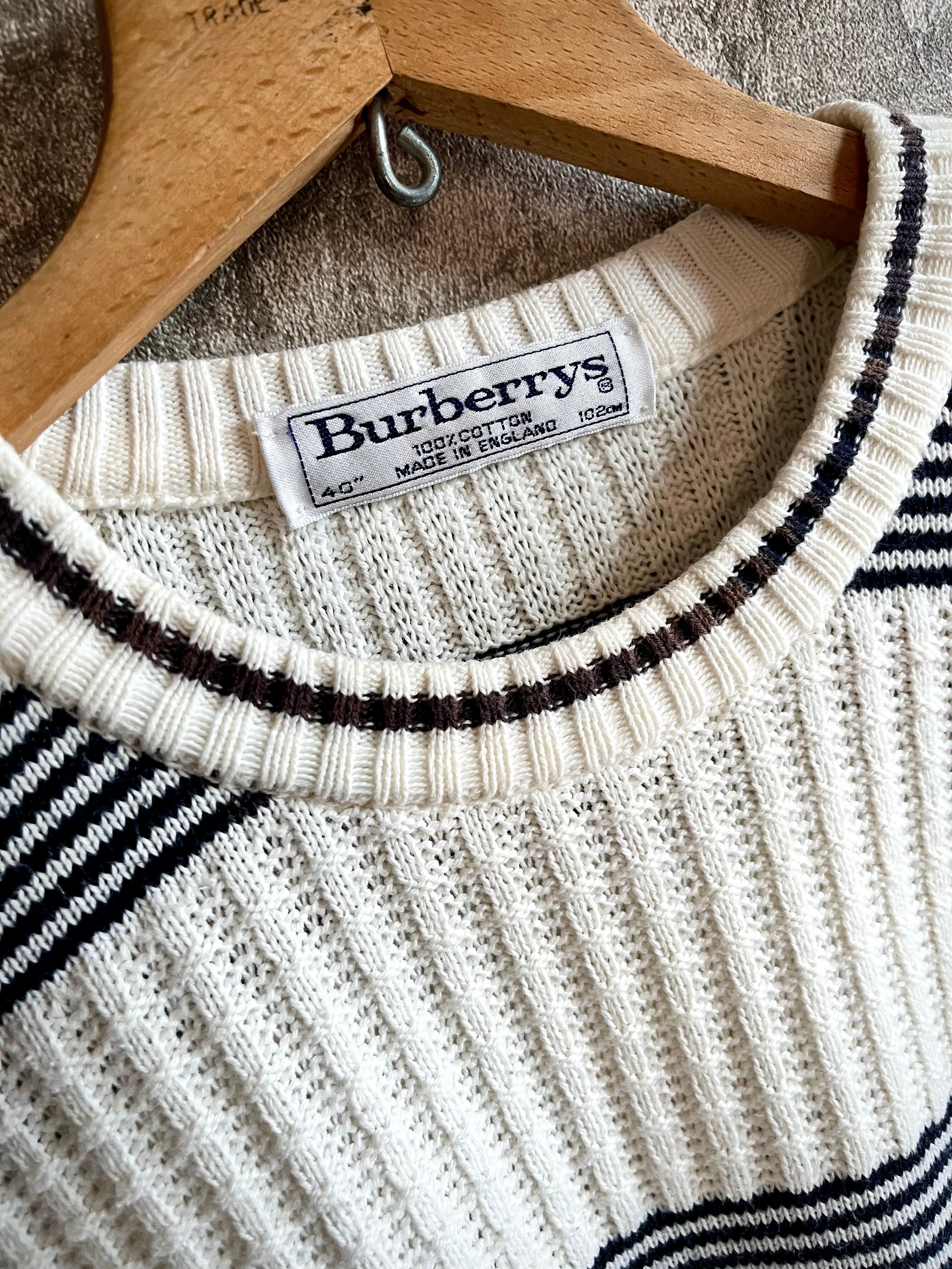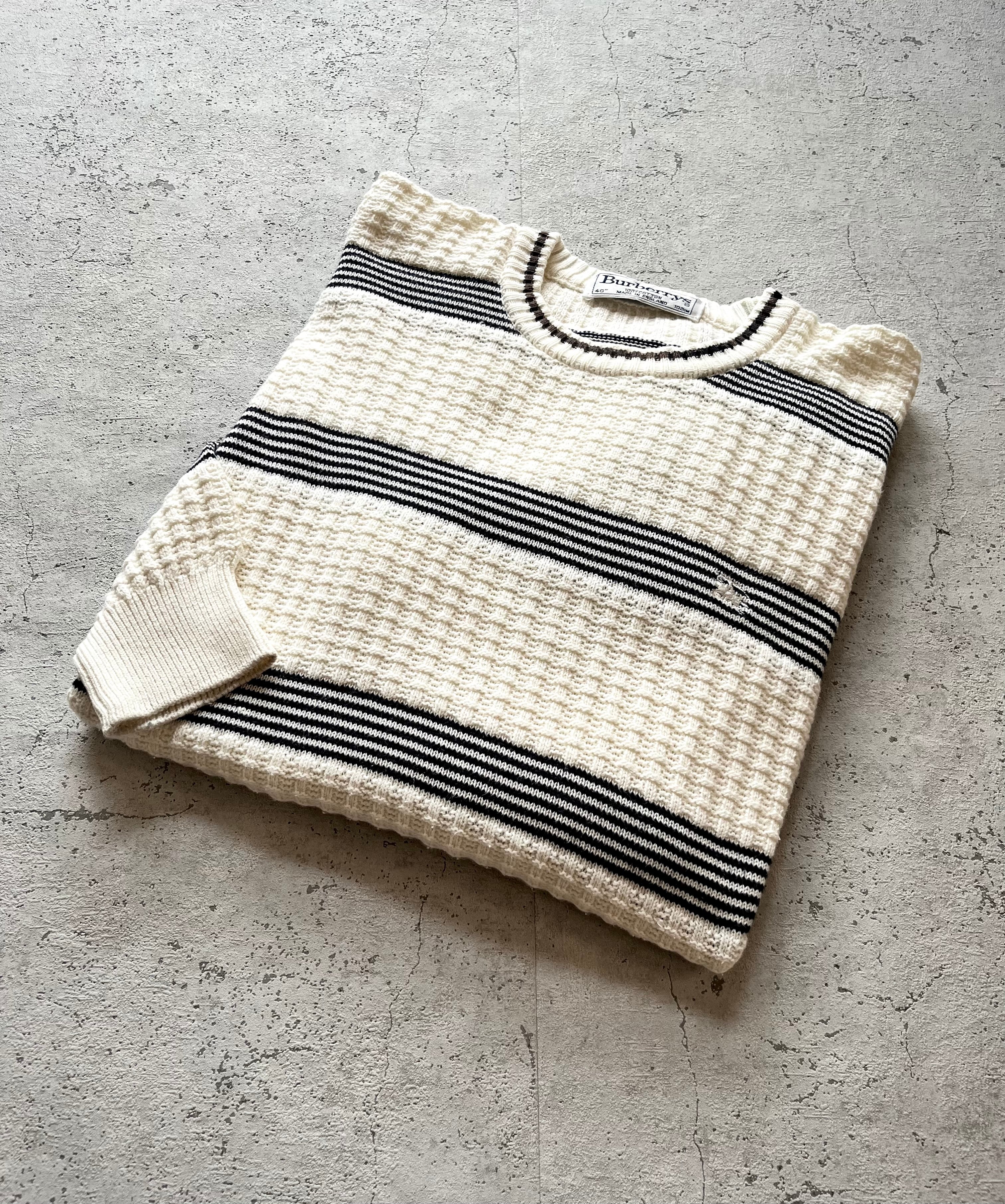 90s〜 MADE IN ENGLAND “ BURBERRYS ” COTTON BORDER KNIT OLD VINTAGE 。