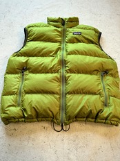 数多くのラインナップが展開されておりますがこちらはパタゴニア好きの間では定評の高い少し珍しいホワイトグースを使用したダウンベスト、非常に保温性に優れており丸みを帯びたボリュームのあるシルエットやゲッコーグリーンを彷彿とさせる独特なカラーリングが特徴的なオールドシリーズです。
