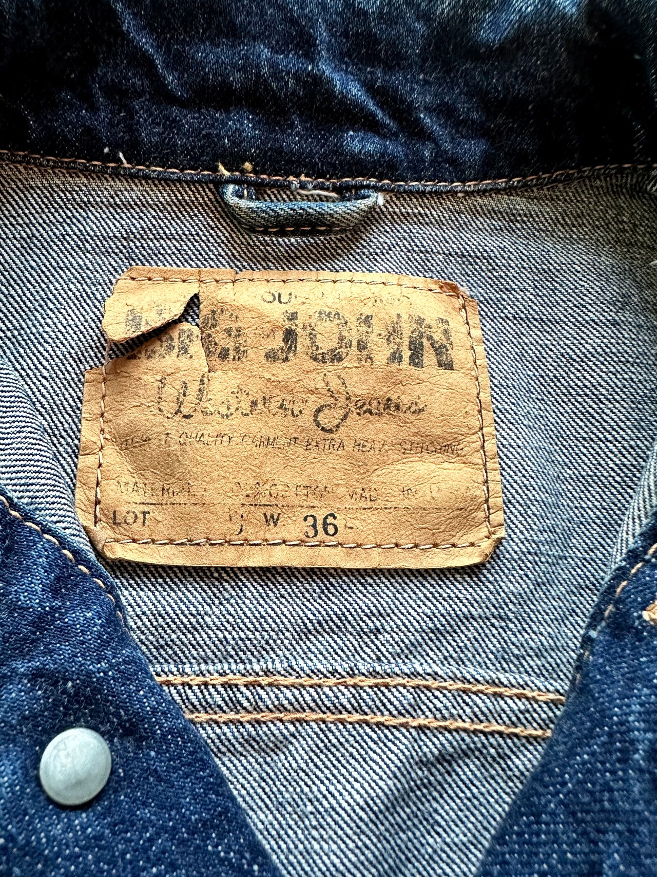 今からおよそ50年程前の70年代初期頃と思われる“BIG-JOHN”の少しレアなMADE IN USA表記の入ったWESTEN JEANS-デニムジャケットVINTAGE。