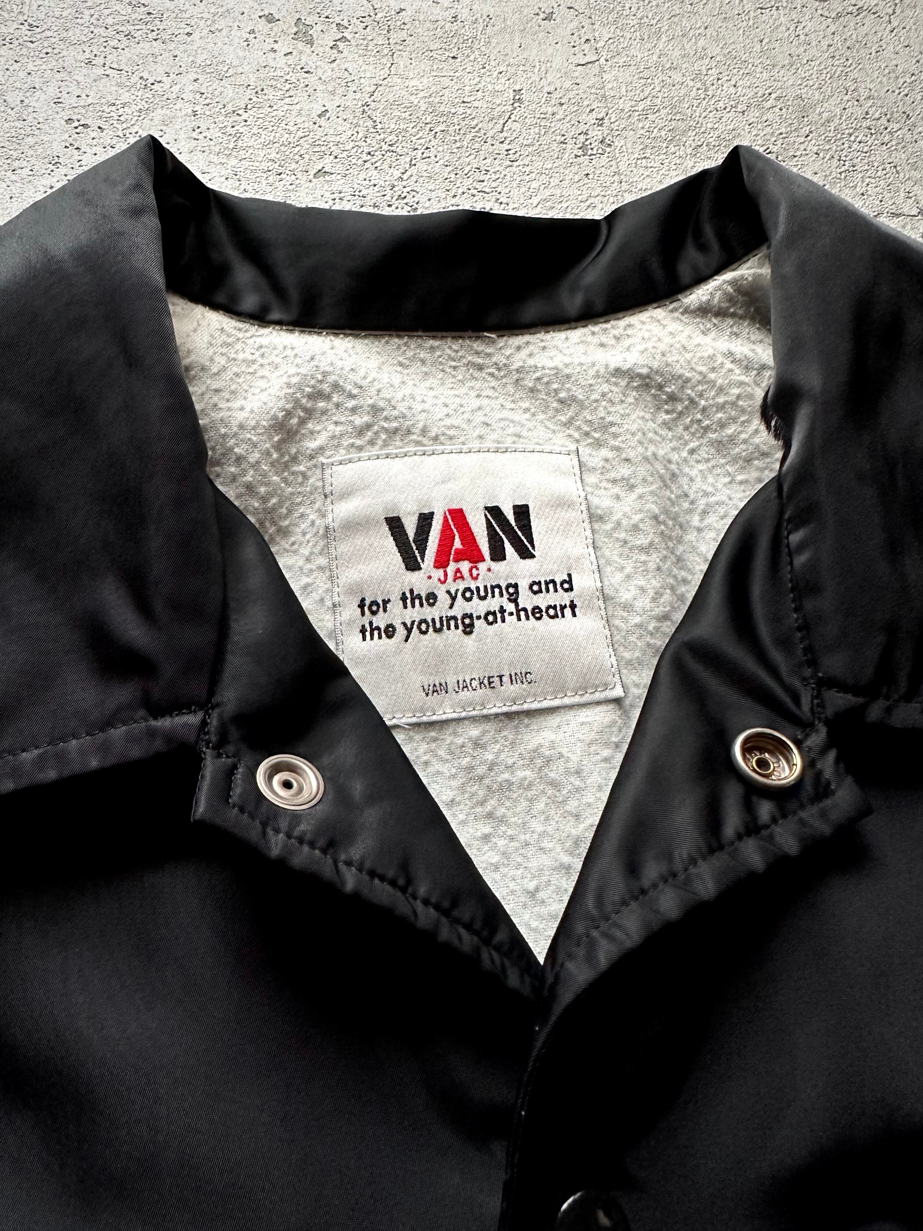 “ VAN JAC ” / BACK PRINT NYLON COACH JACKET BLACK OLD VINTAGE 。