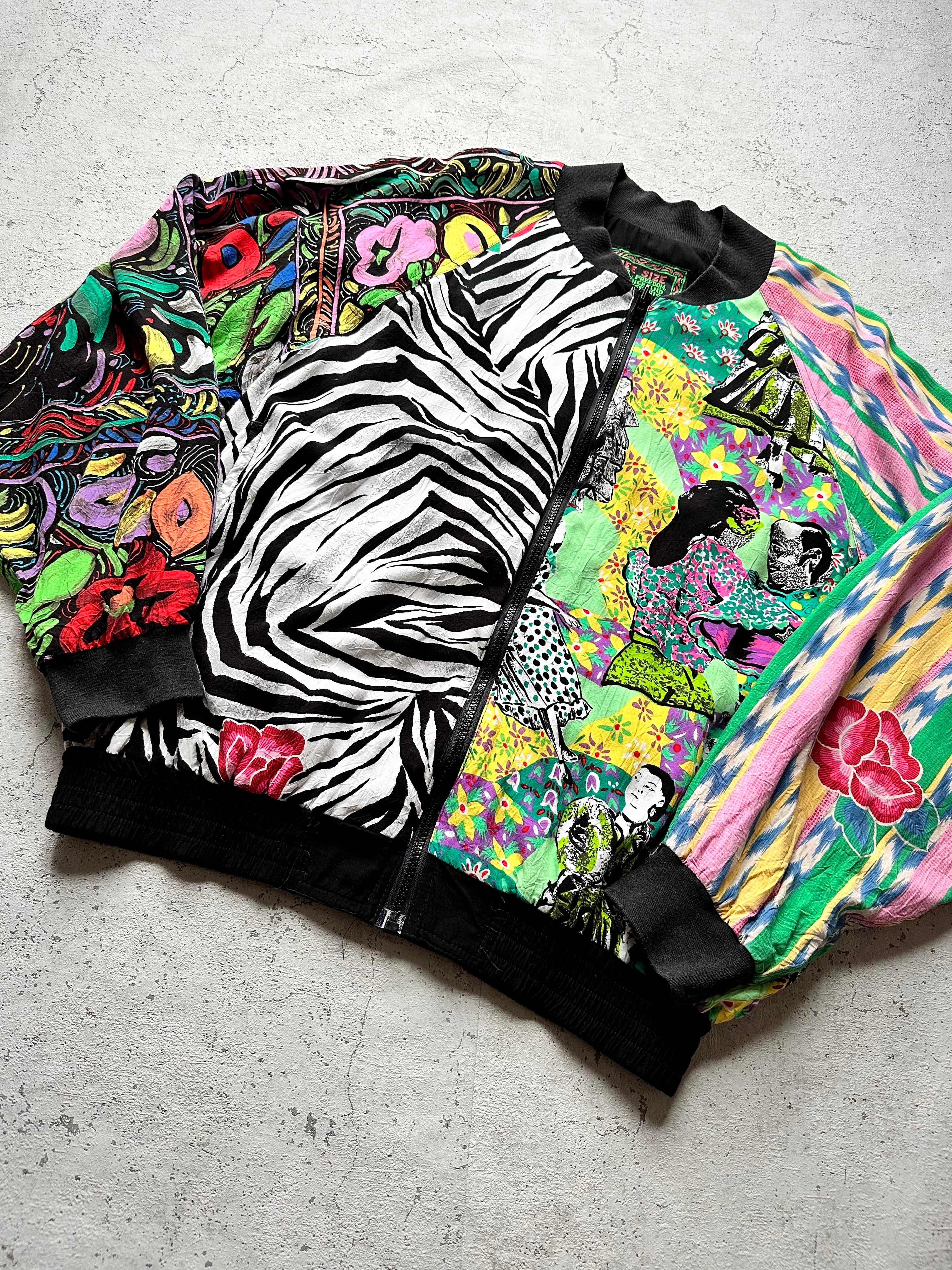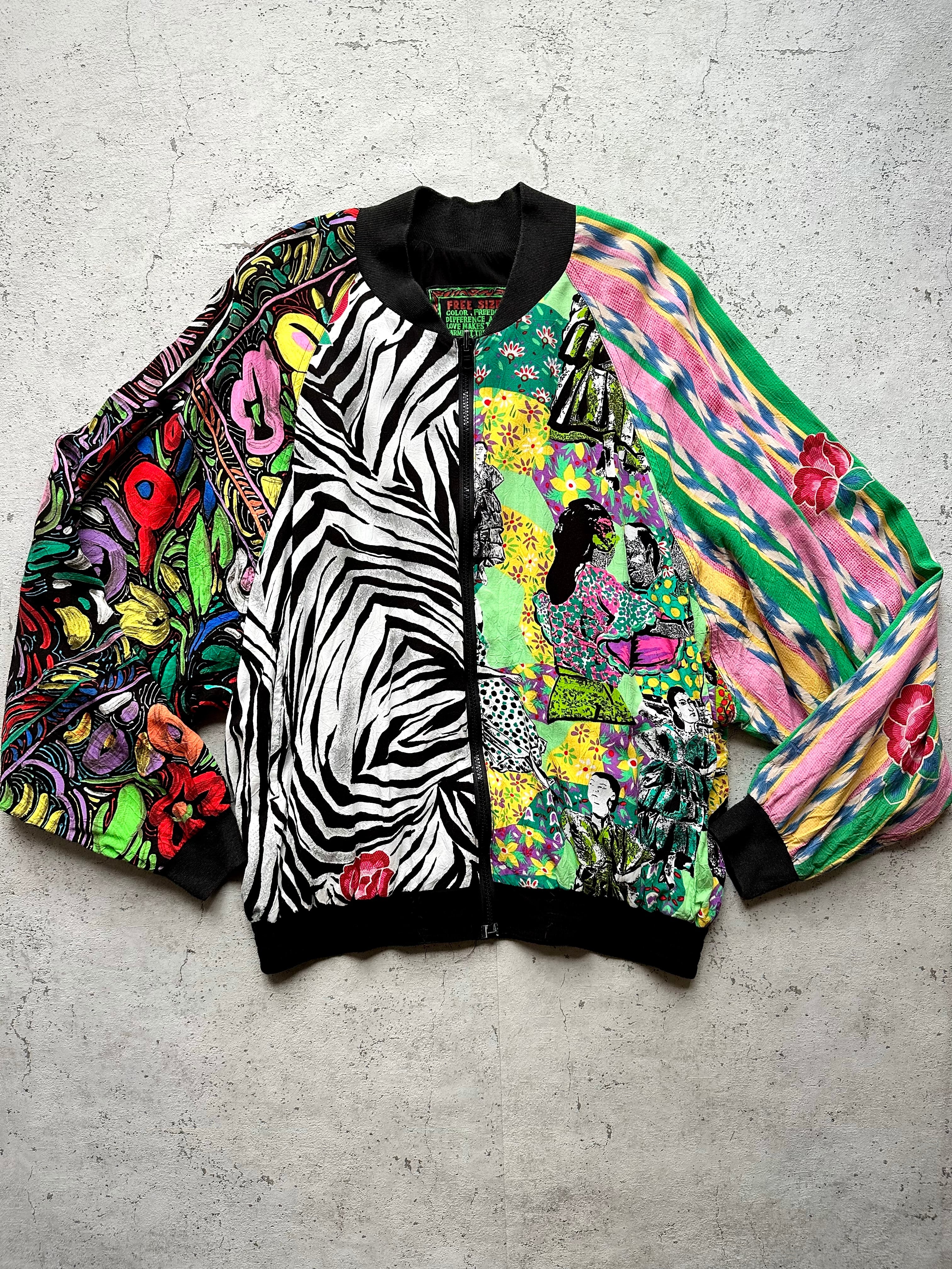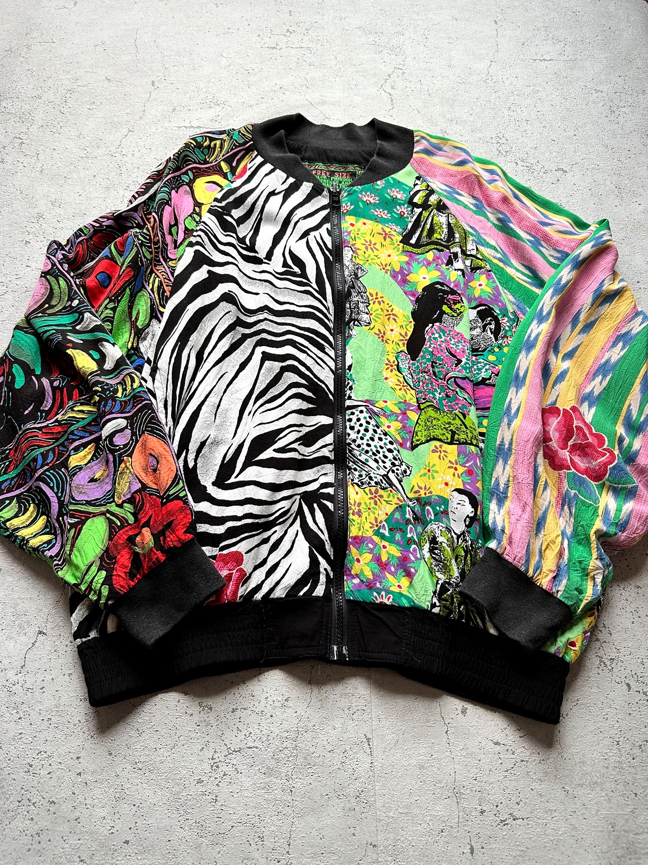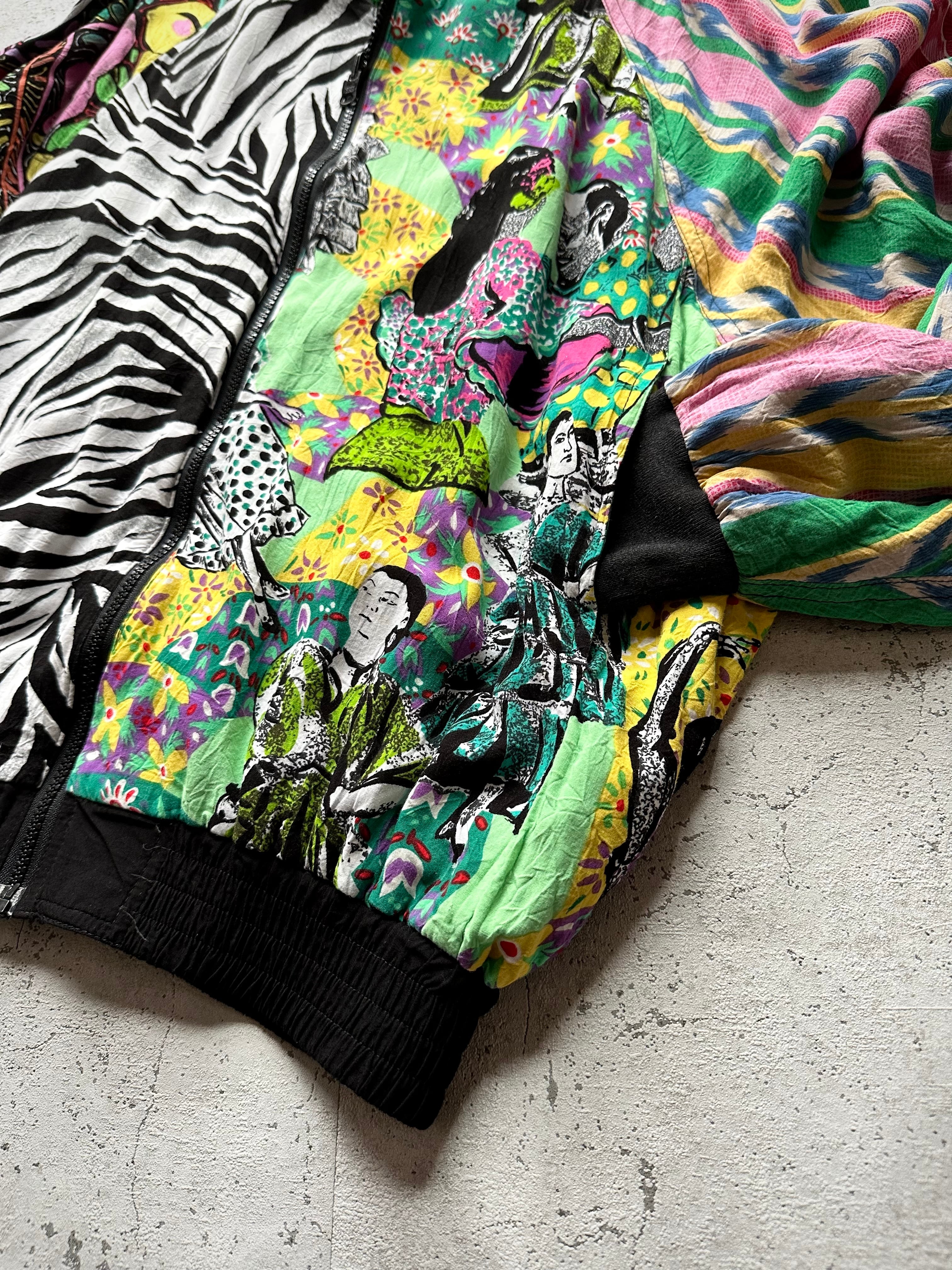 80s〜 MADE IN USA “ JAMS WORLD ” ALL OVER PATTERN RAYON SURF JACKET OLD VINTAGE 。