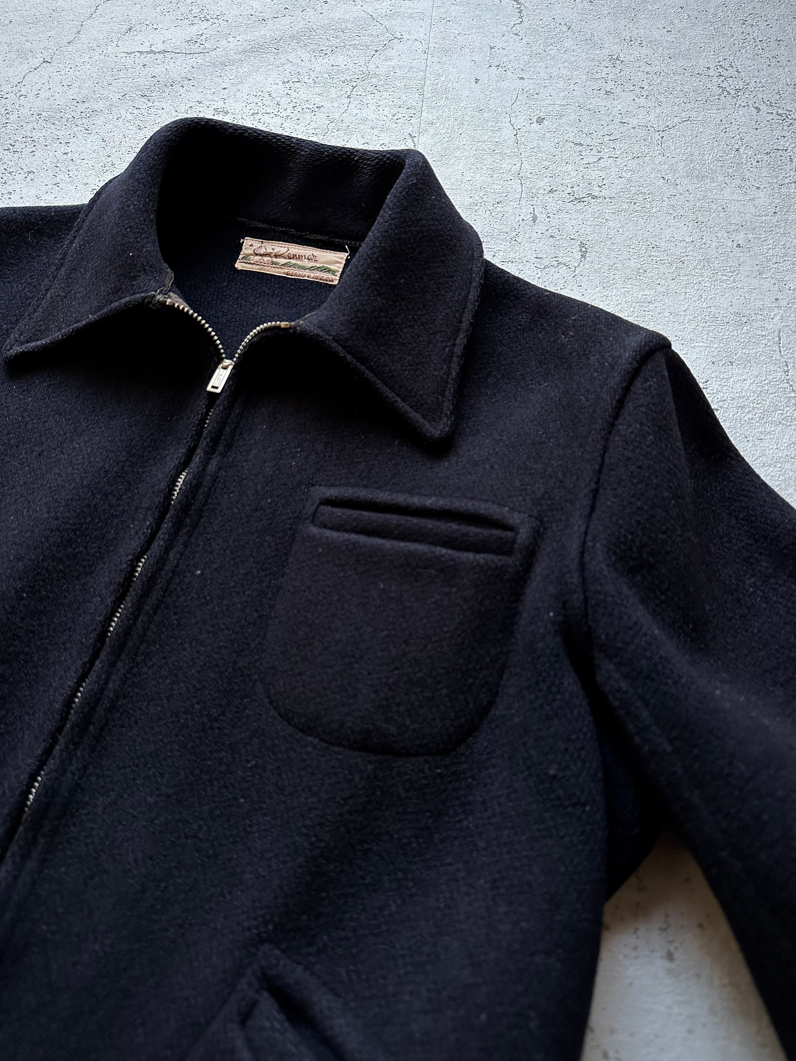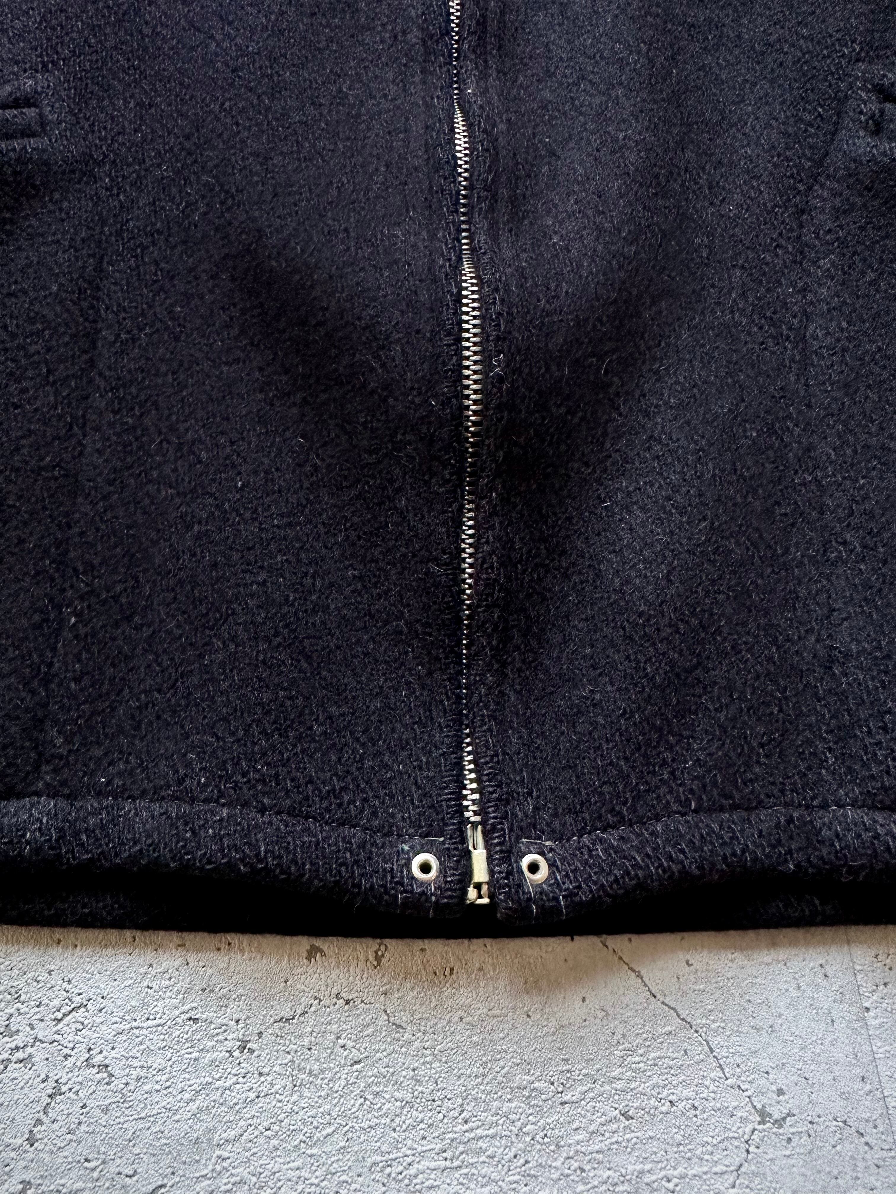 今からおよそ90年程前の30年代〜頃と思われる古き良き時代のビンテージではお馴染みとなっている人気の高いスポーツジャケット、ずっしりと目の詰まったメルトンウールに3ポケット&ジップスタイルとシンプルながらどこか品格をも纏ったミニマムなデザインとなっております。