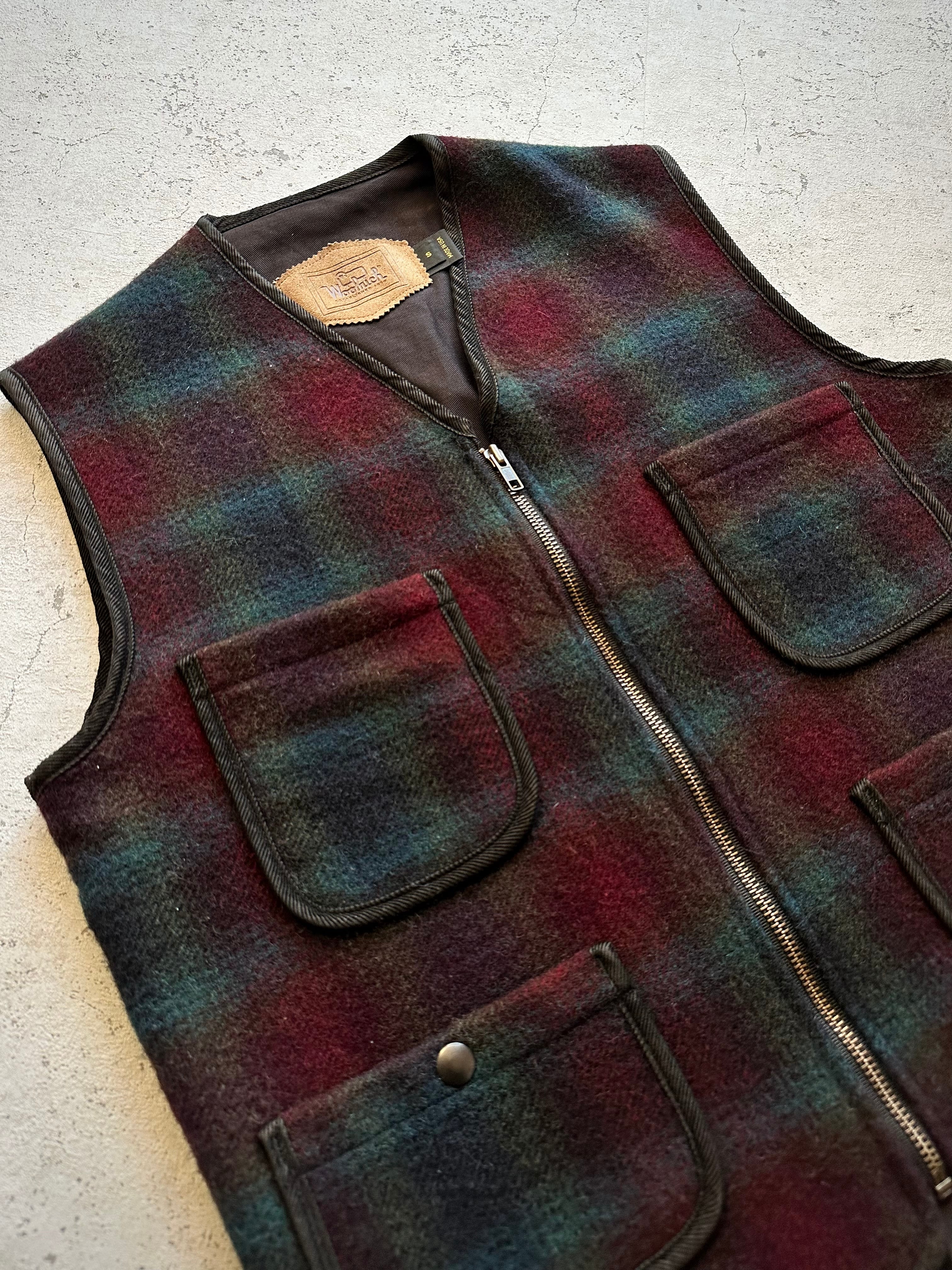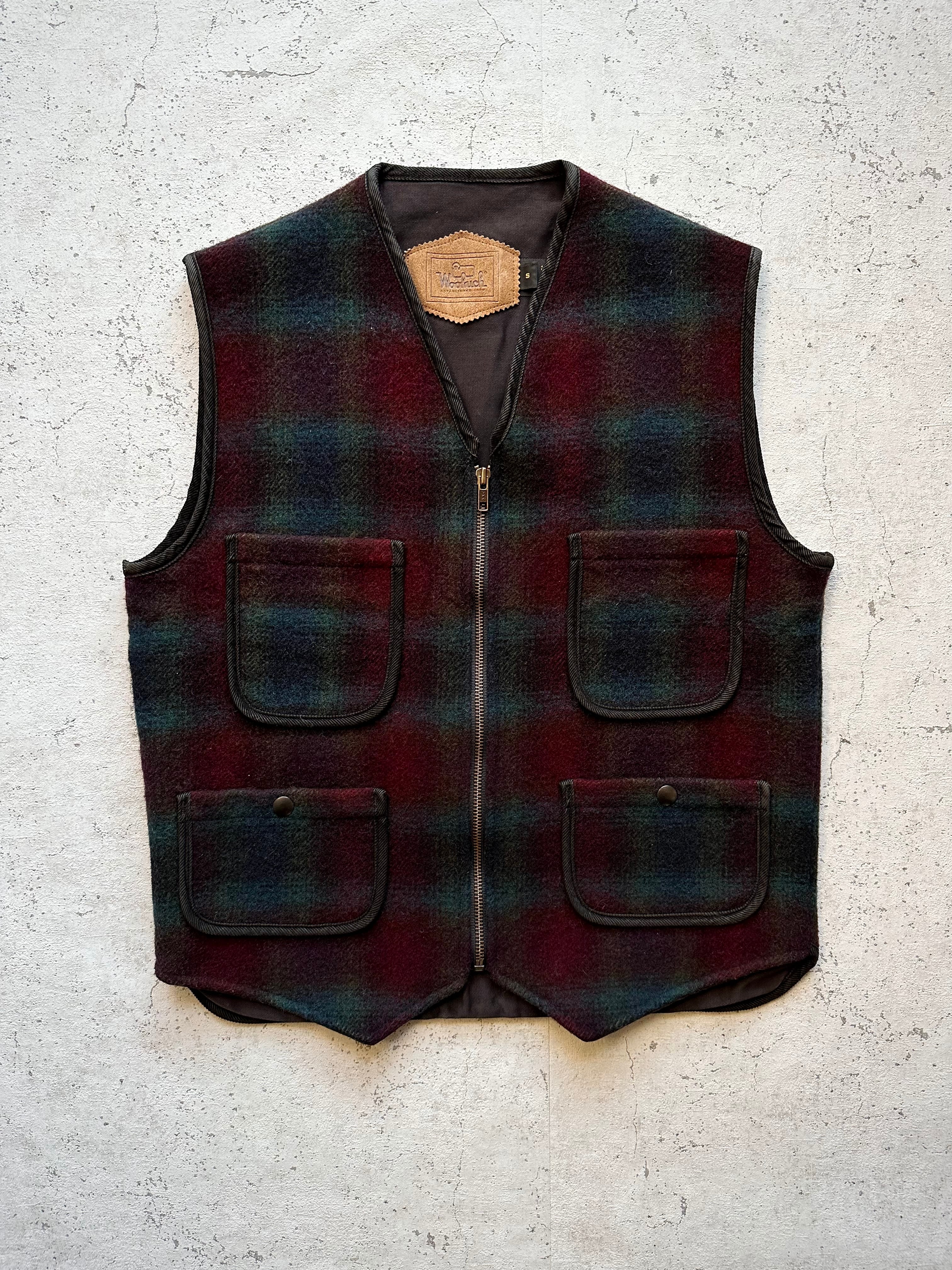 80s〜 MADE IN USA “ WOOLRICH ” OMBRE PLAID WOOL VEST OLD VINTAGE 。