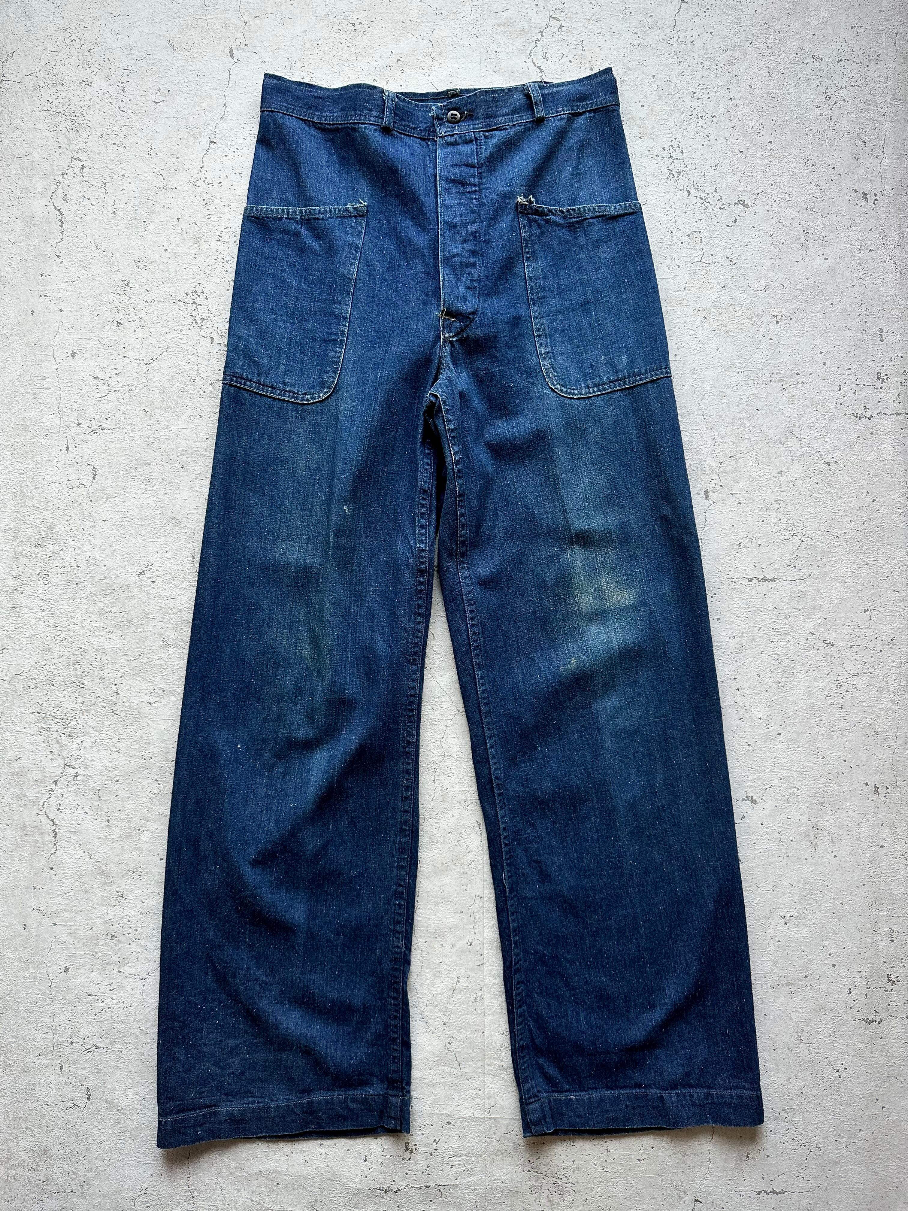 40s US.NAVY DENIM TROUSERS DECK PANTS USN MILITARY VINTAGE 米軍 海軍 デニムトラウザーズ デッキパンツ オールド ミリタリー ビンテージ