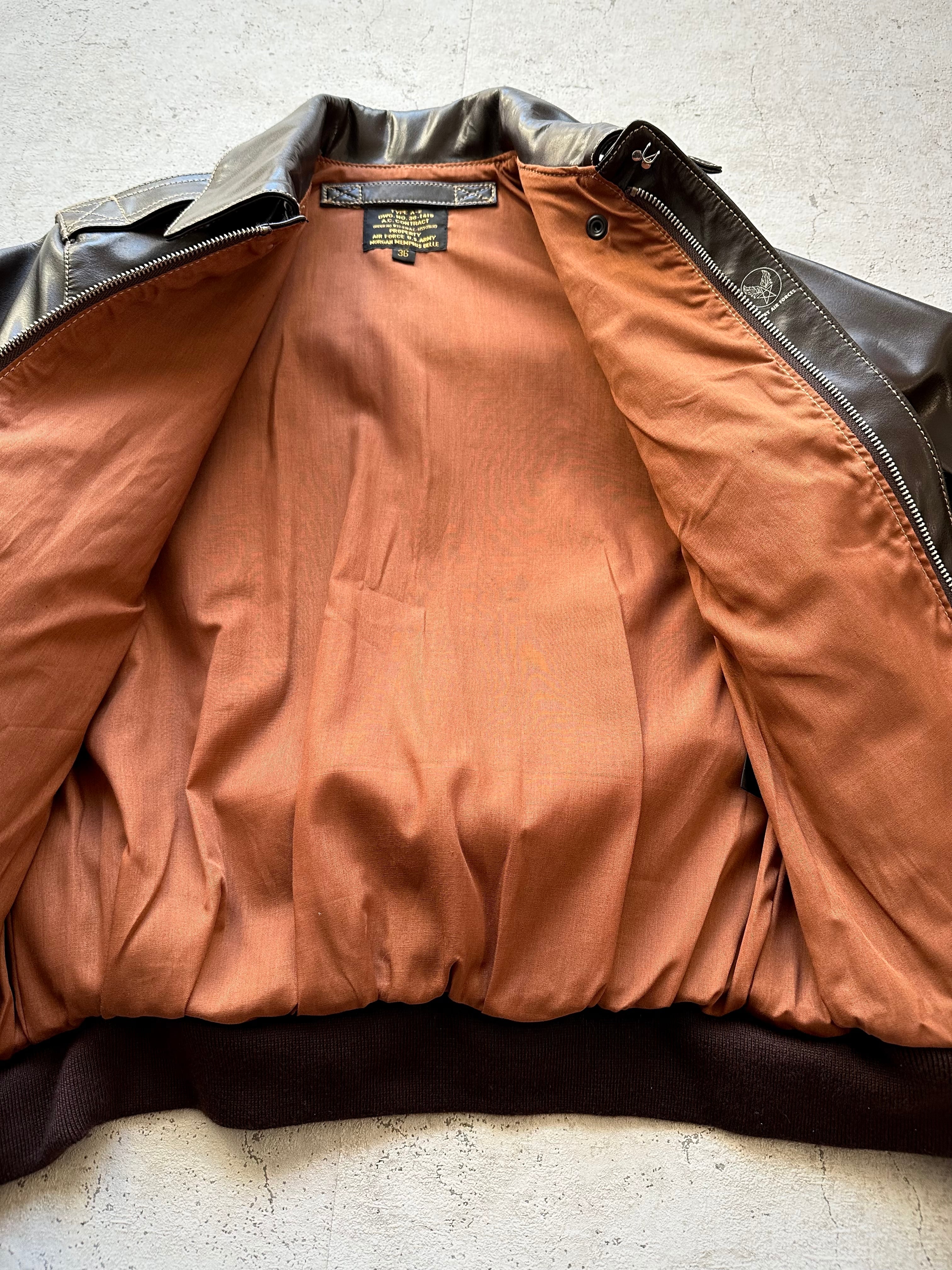 DEAD STOCK “ MORGAN MEMPHIS BELLE ” TYPE A-2 FLIGHT JACKET OLD ORIGINAL 。