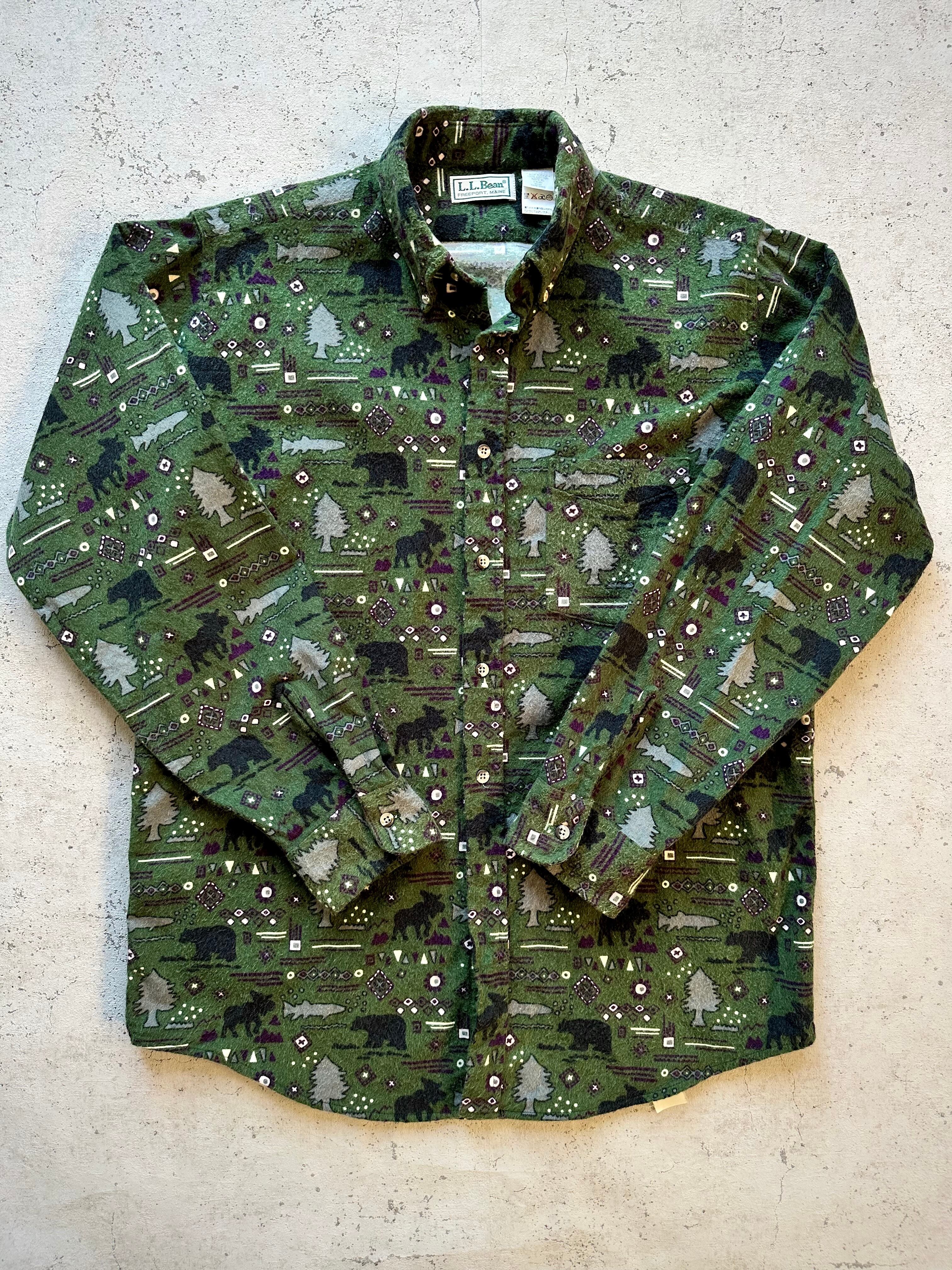 90s〜 USA製 LL.BEAN / PRINT FLANNEL B/D SHIRT OLD VINTAGE アメリカ製 LLビーン プリントフランネル ボタンダウンシャツ オールド ビンテージ