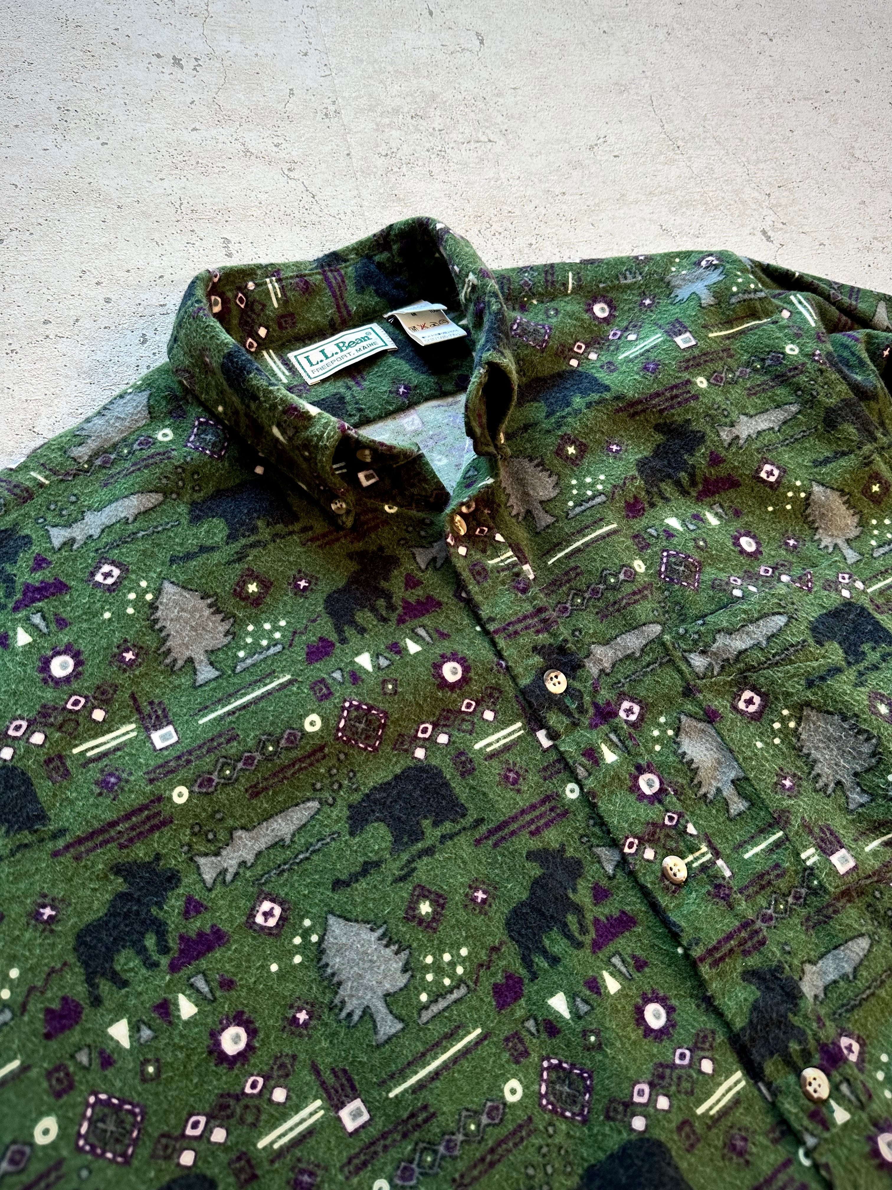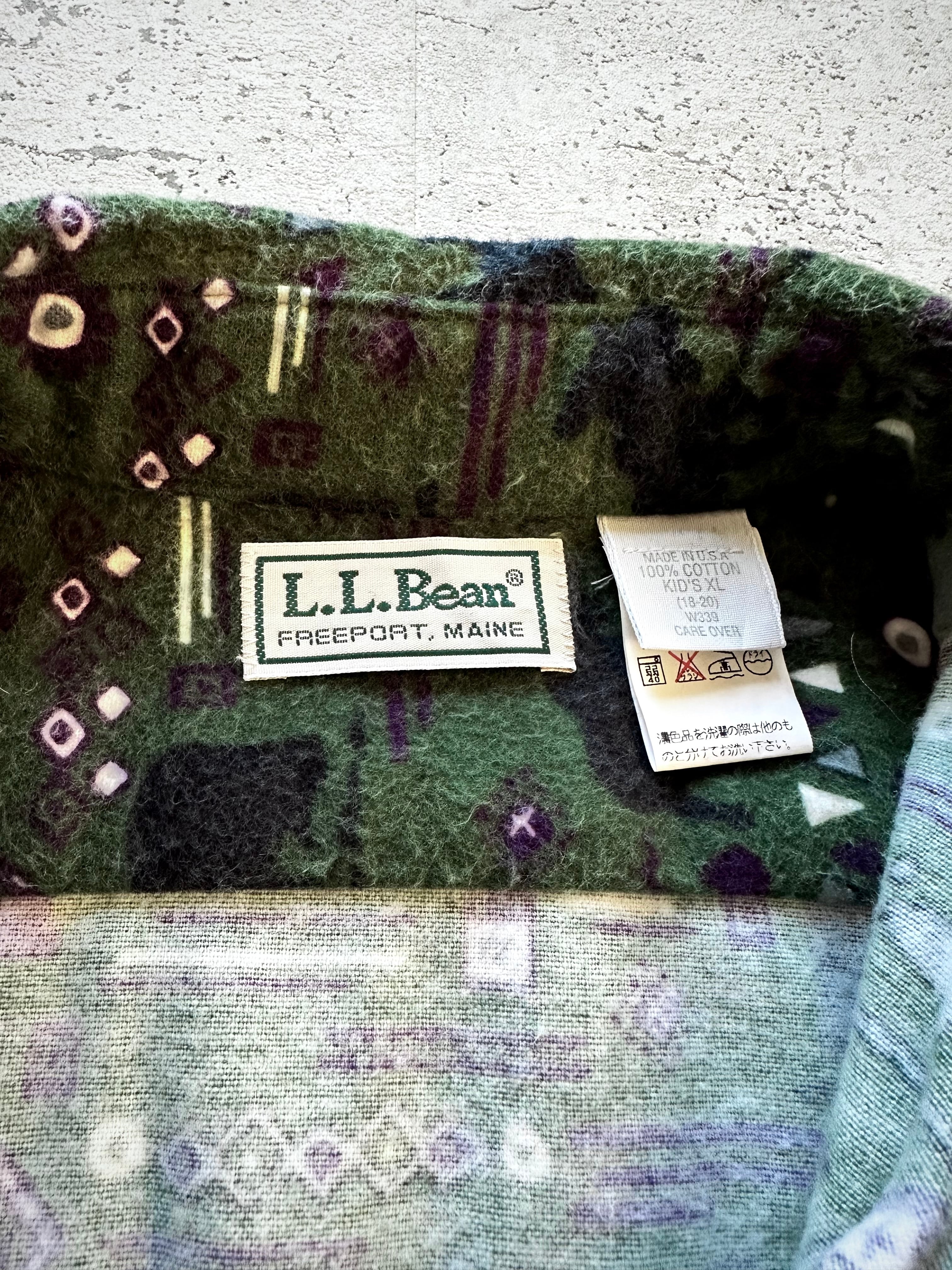 90s〜 MADE IN USA “ LL.BEAN ” PRINT FLANNEL B/D SHIRT OLD VINTAGE 。