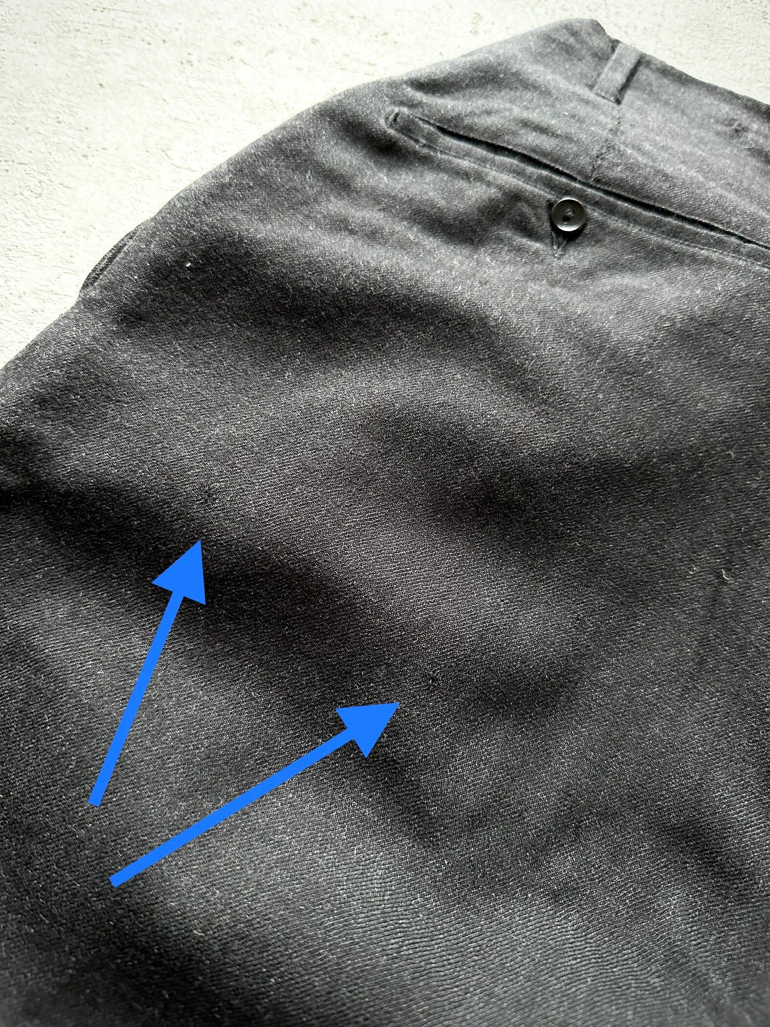 ブラックに近いチャコールとカラーリングも良くどんなスタイルにも最適な少し古いトラウザーズ、ジャケットはまだ見かけますがパンツとなるとほとんど見かけないシリーズだと思いますので、お好きな方や探されていた方は是非この機会にいかがでしょうか。