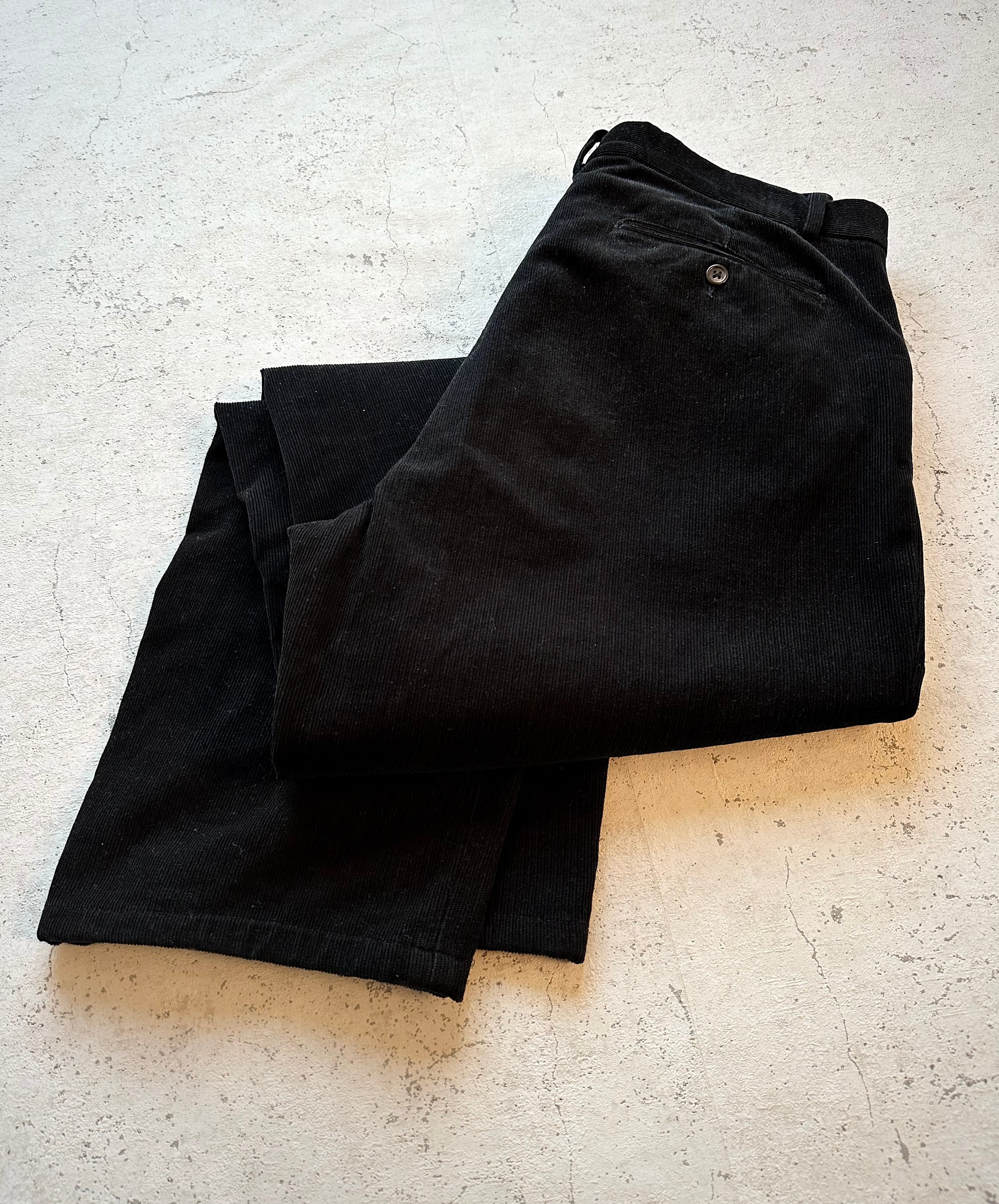 今となっては希少な90s-USA製.ブラックコーデュロイ、ワードローブに加えるだけで確実に重宝する万能なパンツだと思いますので、お好きな方や探されていた方は是非この機会にいかがでしょうか。