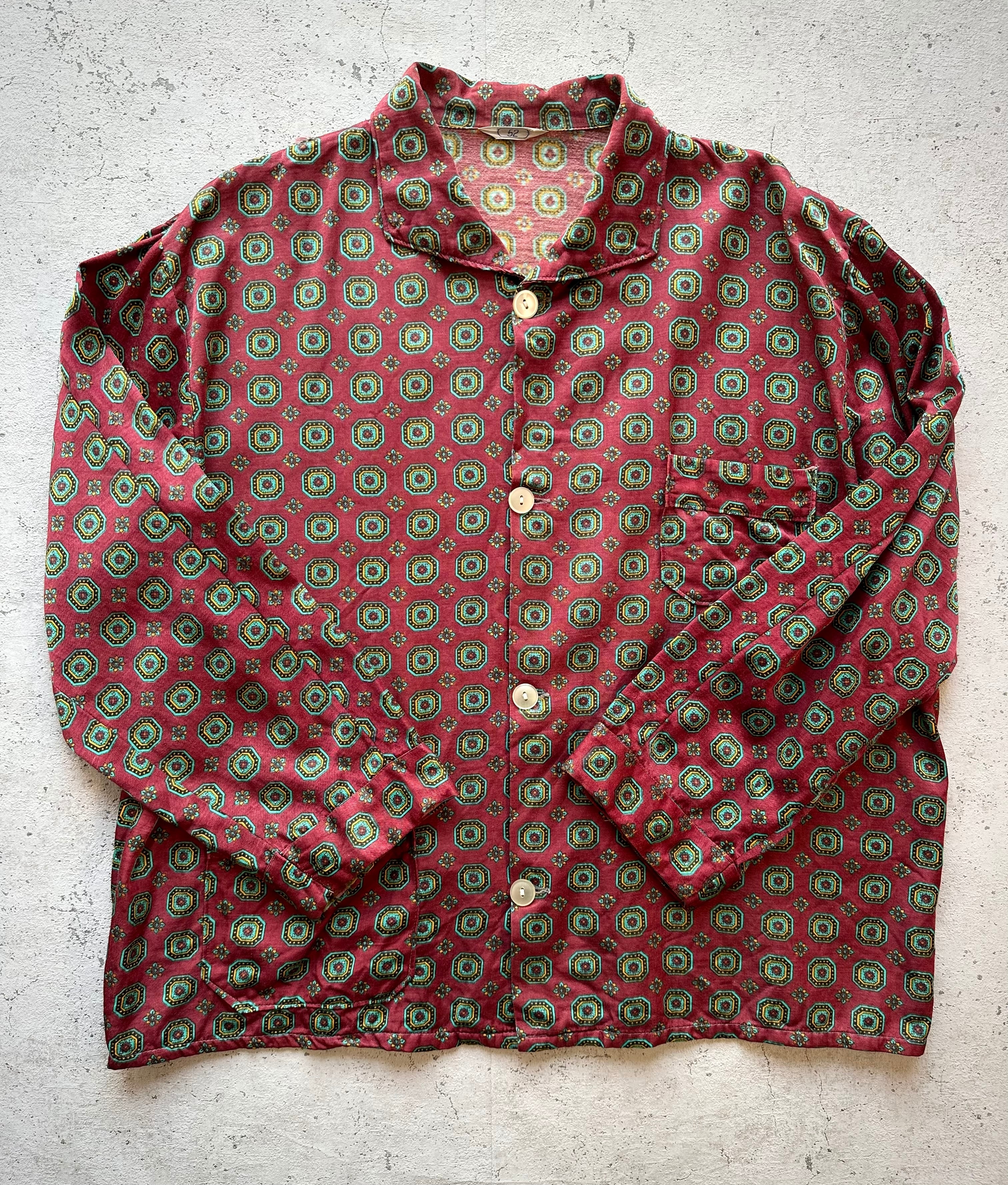 60s-70s “ EURO VINTAGE ” ALL OVER PATTERN BOX SHIRT OLD ORIGINAL 。